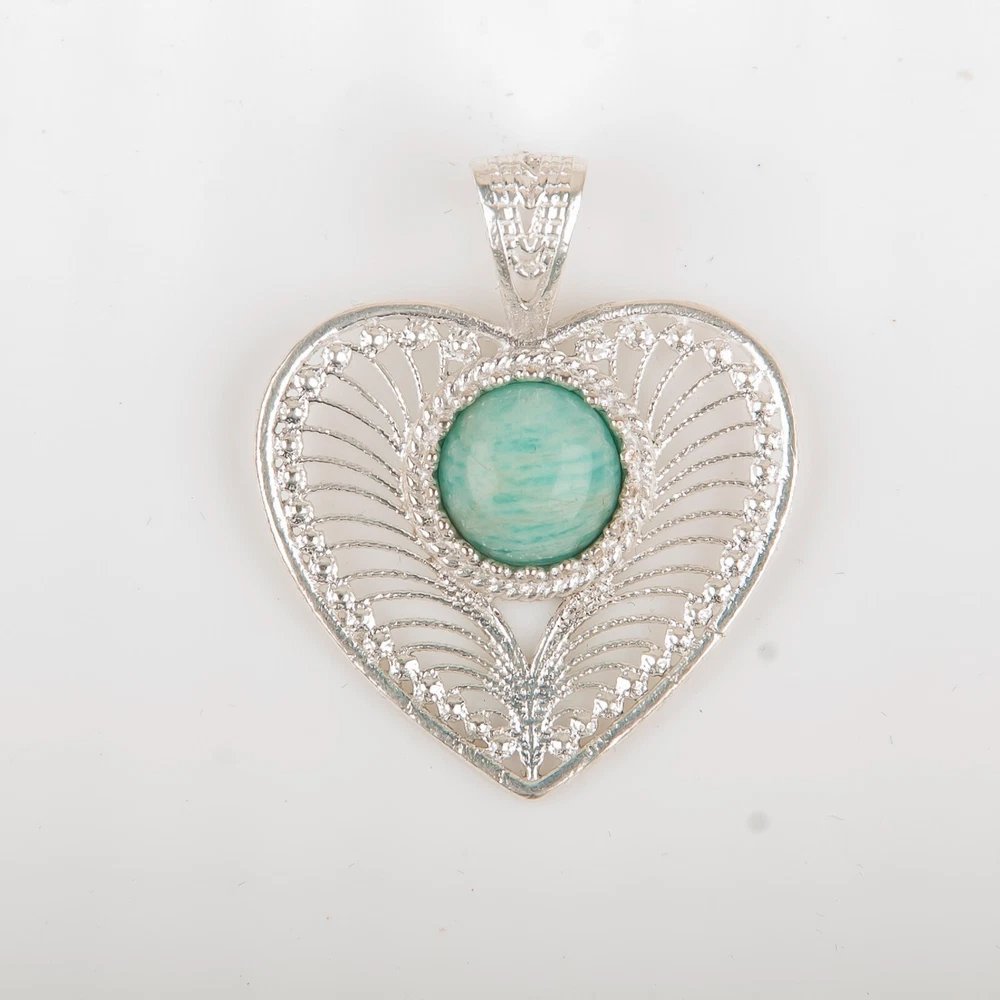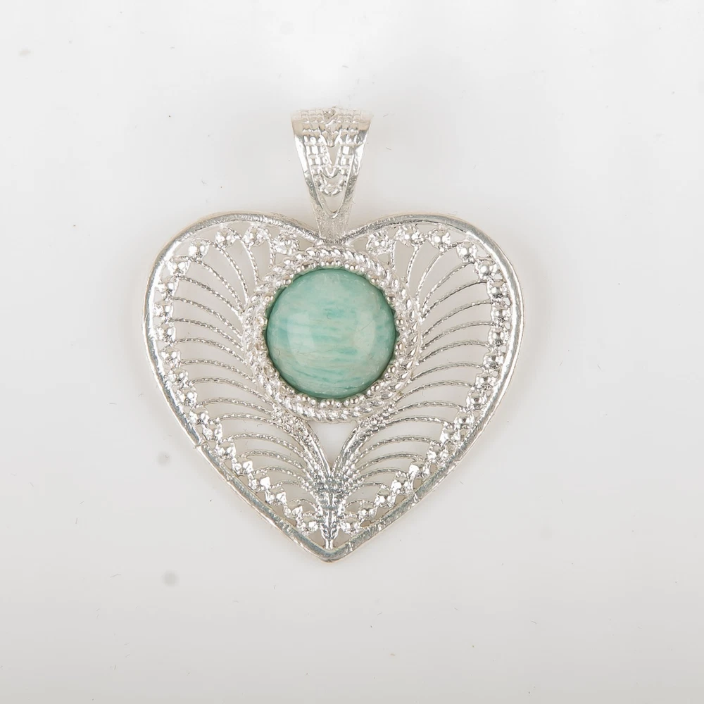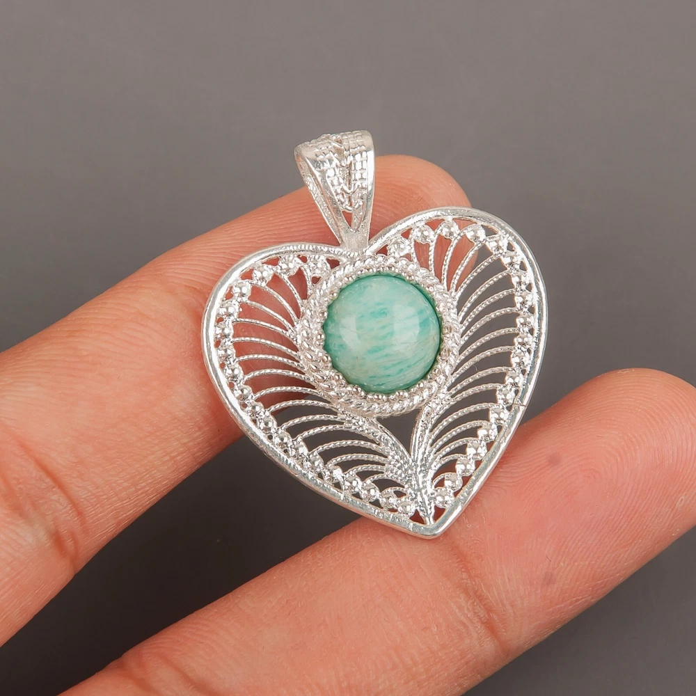 Welcome to Jaipur Silver Gallery Gift For Her 925 Sterling Silver Natural Amazonite Gemstone Jewelry Pendant Love Handmade Pendant, Sterling Silver Pendant, Amazonite Pendant, Handcrafted Pendant SKU : - JSCP-15-19 Gemstone : - Amazonite Stone Shape : - Round Metal : - Sterling Silver Metal Purity : - 925 Pendant Length : 1.4 Inches Pendant Width : Inches _______________________________________________________________________________________ Amazing Properties of Silver ****************************** Tough and Long-lasting: Silver is incredibly strong, built to withstand daily wear and tear as well as tough environmental conditions. Easy to Shape and Design: Silver is like clay for skilled craftsmen, allowing them to create beautiful and intricate designs effortlessly. Great at Conducting Energy: When it comes to heat and electricity, silver is the go-to. It can quickly and efficiently transfer energy, making it ideal for various applications. Keeps Things Clean and Safe: Silver has a natural ability to keep harmful bacteria at bay, making it a reliable choice for promoting cleanliness and well-being. 3 Underrated Benefits Of Silver ****************************** Gorgeous Charm: Silver jewelry shines brightly, enhancing any outfit and fitting everyone's style with ease. Gentle on Skin: Silver is kind to your skin, reducing the chance of allergies and making it a favorite choice for accessories. Healing Vibes: Some believe silver jewelry has a soothing touch, possibly aiding in easing issues like arthritis, anxiety, and the blues. _______________________________________________________________________________________ For Mother's Day Gift For Father's Day Gift For Promise For Valentine' Day For Halloween Party For Christmas Day Gift For New Year Party For Mom For Her _______________________________________________________________________________________ If you need more help or want design tips, just give us a shout! We're lightning-fast in getting back to you. Every single thing we create is made by hand in our special workshop, and we put a whole lot of love and care into every piece. Thank you for stopping by! We're confident you'll have an amazing time shopping with us. We're here to make sure every moment you spend with us is filled with delight and satisfaction. Happy shopping!