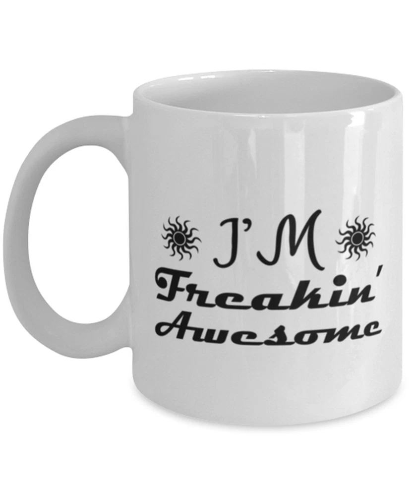 Gift From Family Funny Coffee Mug I'm Freakin Awesome Gift For Dad Father's Day Product Details.. This high quality 11oz. ceramic white mug has a premium hard coat that provides crisp and vibrant color reproduction sure to last for years. Perfect for all hot & cold beverages. The highest quality printing possible is used. It will never fade no matter how many times you wash it. Material: 100% Ceramic. Print both sides. Dishwasher and Microwave Safe. High Gloss + Premium White Finish. Printed in the U.S.A. Personalized & Custom. We support personalized and custom mug to add custom, when placing an order, you can add notes to the "order note" in shipping address section. Also you can contact us directly via message. Shipping Info. Ready to ship in 1 to 2 business days, All products are made-to-order and proudly printed in the United States. Shipped by USPS and DHL, You will receive your order in 5-7 days. Replace & Refund. All products are defective during shipping broken, chipped will be replaced free of charge. You are not satisfied with the product, we will refund 100% money to you. If any other issues arise, please do not hesitate to message, we would be more than happy to assist you.