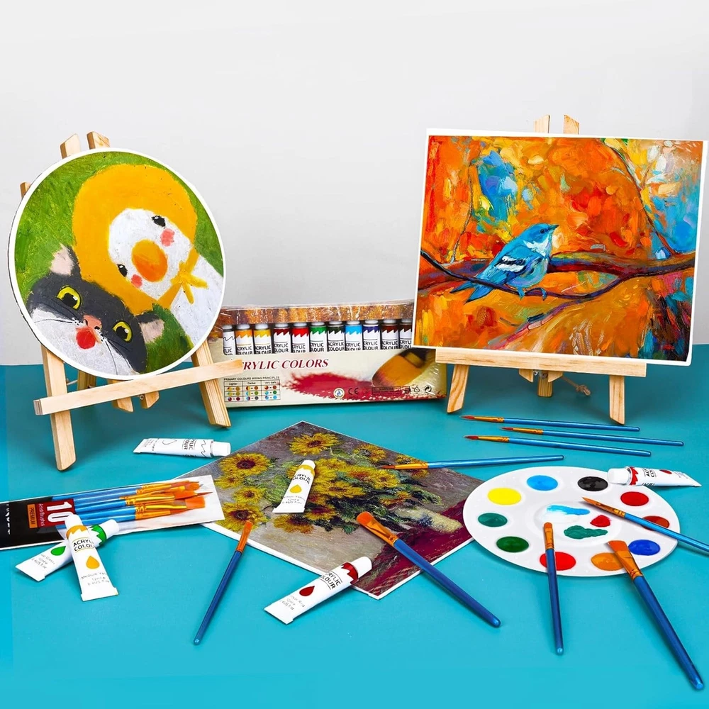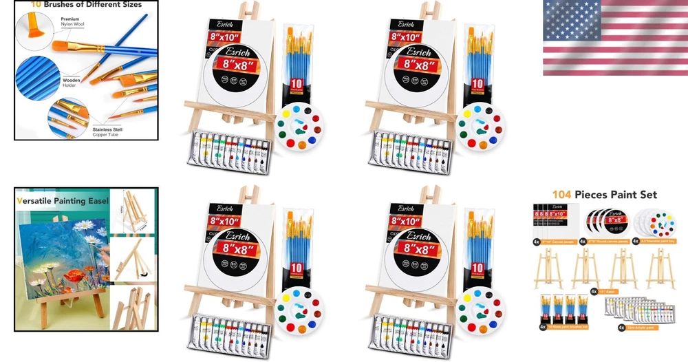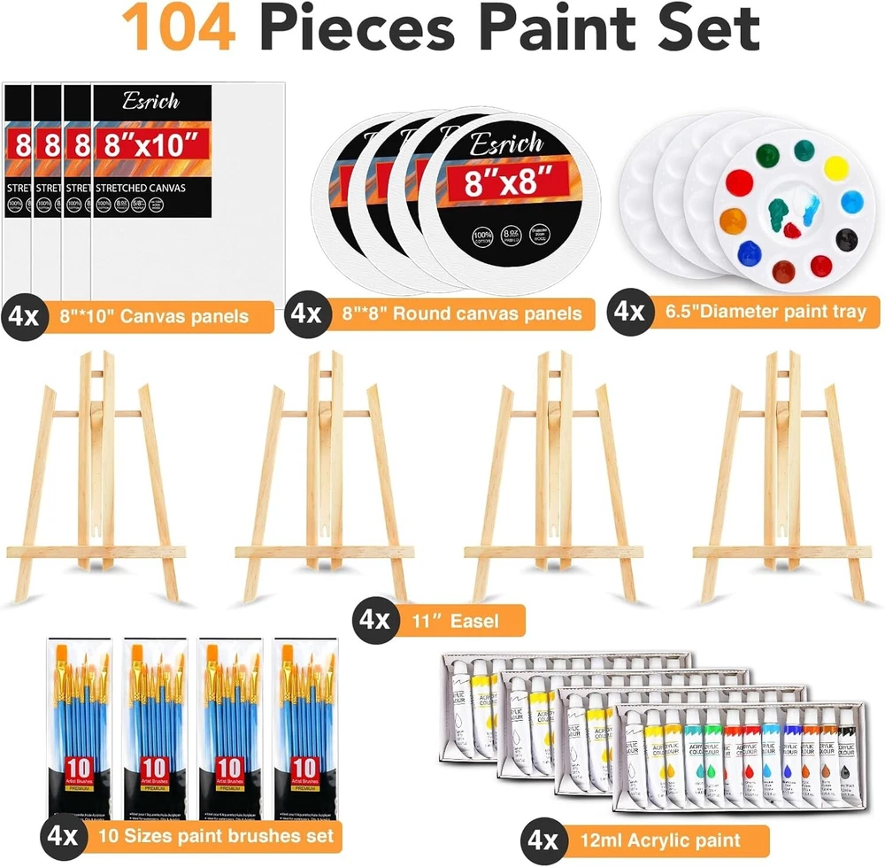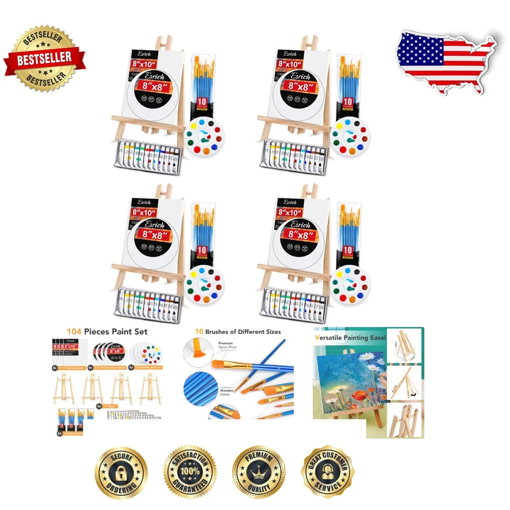 Gift-Ready 104-Piece Acrylic Painting Kit - Ideal for Beginners & Professionals ‹ › ‹ › ‹ › ‹ › ‹ › ‹ › ‹ › ‹ › ‹ › ‹ › Gift-Ready 104-Piece Acrylic Painting Kit Ideal for Beginners & Professionals Includes: 4 Wooden Easels (11 inches) 40 Premium Brushes 48 Tubes of 12 Color Acrylic Paint (12ml, 0.4 oz) 4 Mixing Palettes 4 Canvas (8"x10" and 8"x8" round) Beautiful Gift Box Multi-Function: This professional-grade painting set meets all your artistic needs. The triangular wooden easel, assorted brushes, and painter's palette allow for versatility in your creative expression, perfect for watercolor, oil, gouache, and acrylic painting. Perfect Gift: Generate joy and creativity with the most complete art painting supplies in this thoughtful kit. Ideal for artists, students, teens, kids, and painters of all levels, this kit makes a wonderful gift for family and friends who cherish the world of painting. Cultivation of Interest: This engaging acrylic painting kit encourages aspiring artists to start their artistic journey immediately. Every essential tool is included, allowing you to dive into the world of creativity and imagination, making it a perfect art set for both kids and adults. An educational yet fun project that nurtures your creative talents! Our Service: Your satisfaction is paramount. Should you have any inquiries regarding your purchase, please do not hesitate to reach out. Our dedicated customer service team is here to assist you one-on-one, ensuring all your needs are met with care. Begin your artistic adventure with our exquisite 104-Piece Acrylic Painting Kit today! Shipping Free & Fast Shipping - We offer free shipping to most of the USA with a normal delivery time of 3-7 days. However, due to the current situation, additional delivery time (up to 3 weeks) may be required for some items. Alternative Carriers - We may use alternative carriers (e.g. USPS, FedEx, UPS, etc.) to ensure your package arrives safely and on time. Due to the use of multiple carriers, we are unable to provide a tracking number automatically. Handling Time - Orders are processed and shipped within 1-2 business days of receiving cleared payment. Shipping Restrictions - Shipping to Alaska, Hawaii, Puerto Rico, Guam, and other US territories may incur shipping charges or delivery restrictions. Please contact us before ordering, or your order can be refunded/cancelled. State Restrictions - There may be restrictions based on your state of purchase. For example, certain items may not be shipped to California due to state regulations. Contact for Tracking Updates - If you require tracking updates or have any concerns about the delivery of your order, please feel free to contact us, and we will be happy to assist you. Return 30-Day Hassle-Free Returns - We want you to be completely satisfied with your purchase. If you are not, you can return the item within 30 days of receiving it for a full refund or exchange. Easy Return Process - To start a return, simply contact us and we will provide you with a prepaid return shipping label and detailed instructions. Restocking Fee - There are no restocking fees for returns. However, the buyer is responsible for return shipping costs if the return is not due to a seller's error. Refund Processing Time - Refunds will be processed within 5 business days of receiving the returned item in its original condition. Payment We accept all major credit cards, PayPal, and Apple Pay for your convenience. Your payment information is secure and encrypted to ensure a safe and seamless transaction. Please complete your payment within 3 days of purchase to avoid any delays in shipping. Feedback Your feedback is extremely important to us. We strive to provide the best products and customer service possible. If you are satisfied with your purchase, please take a moment to leave us a positive review. If you have any concerns or issues with your order, please contact us before leaving negative feedback. We are committed to resolving any problems and ensuring your satisfaction. Contact Us If you have any questions or concerns, please feel free to reach out to our customer support team. You can contact us through the eBay messaging system. We are available Monday to Friday, 9:00 am to 5:00 pm EST, and we will do our best to respond to your inquiry within 24 hours. Buy it now and enjoy a pleasant shopping experience! UPC: Not Set Model: Not Set MPN: Not Set Unit Quantity: 104 Brand: Unbranded Type: Acrylic Paint Set Color: Multicolor Country/Region of Manufacture: Not Set Unit Type: Unit Handmade: Not Set