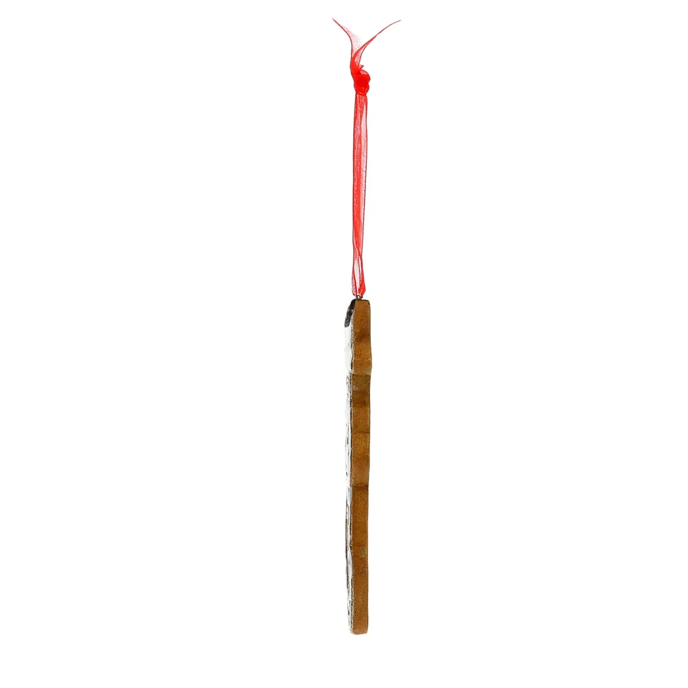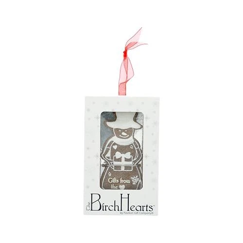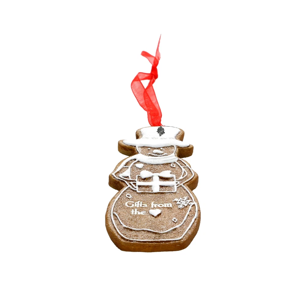 PREMIUM QUALITY: A charming 4" hand-painted gingerbread snowman ornament made from high-quality resin, featuring a raised "icing" texture for a cookie-like finish. The ornament is accented with a high-gloss coat and comes with a red organza ribbon for easy hanging. A signature snowflake charm adds extra festive flair. IN-HOUSE DESIGN: The snowman ornament features the heartwarming sentiment, "Gifts from the Heart," debossed on the front and highlighted with a white raised "icing" detail that mimics the look of a real gingerbread cookie. The snowman holds a beautifully wrapped gift, complete with a white bow, making this ornament a lovely symbol of holiday generosity. The high-gloss finish and snowflake charm give this piece a polished look, perfect for any Christmas tree. PERFECT GIFT: This gingerbread snowman ornament makes a thoughtful and festive gift for friends or family who love to celebrate the spirit of giving during the holidays. Its charming design adds warmth to any Christmas tree or holiday display, making it a timeless keepsake. Packaged in custom packaging, it's ready for gifting to spread holiday cheer. CARE INSTRUCTIONS: Wipe with a soft, dry cloth to maintain the ornament's shine and detail. MORE PRODUCTS: Explore other gingerbread ornaments with various sentiments to complete your holiday collection.