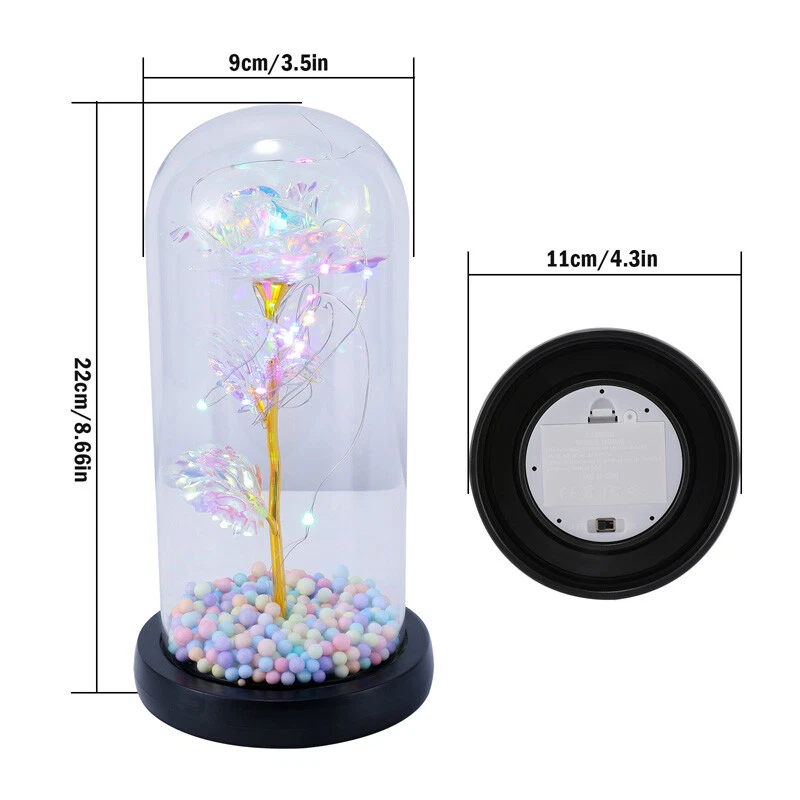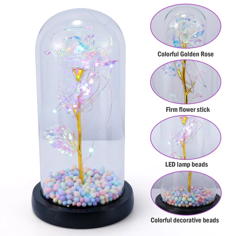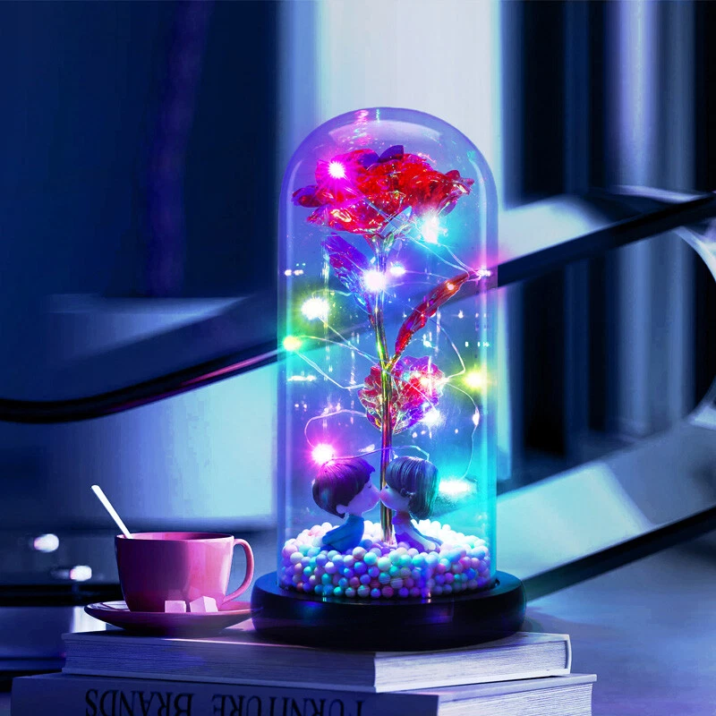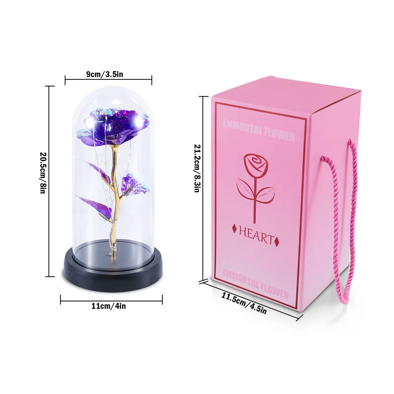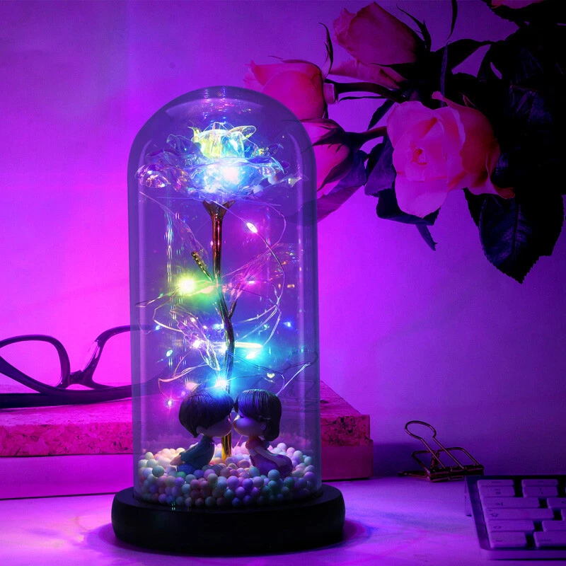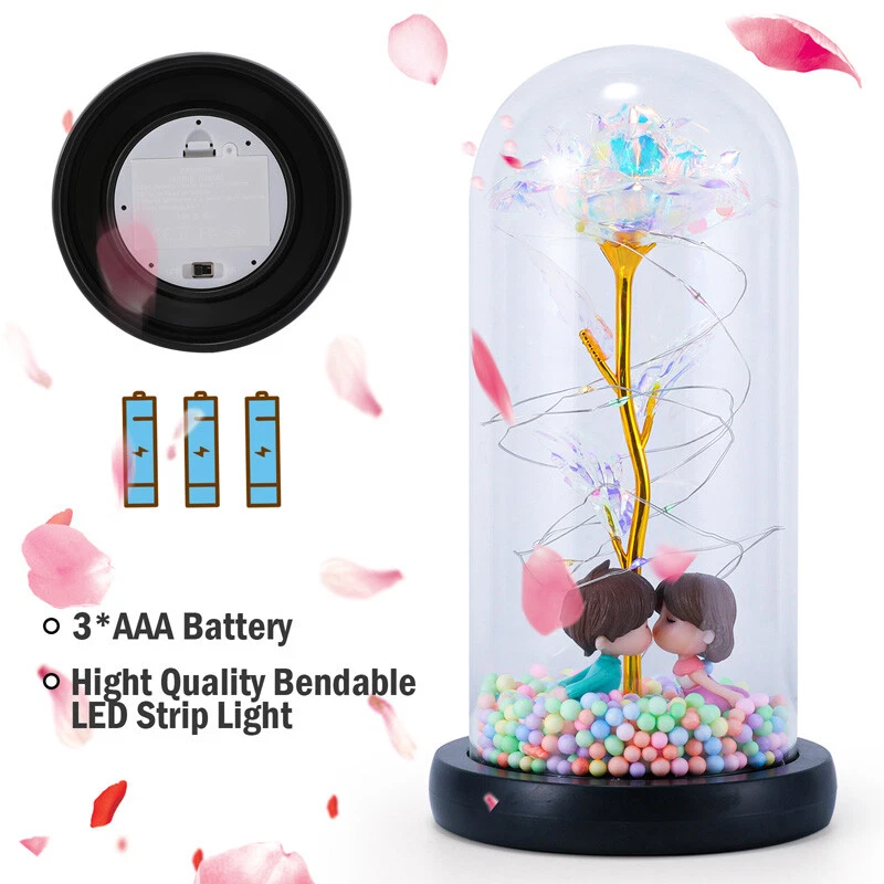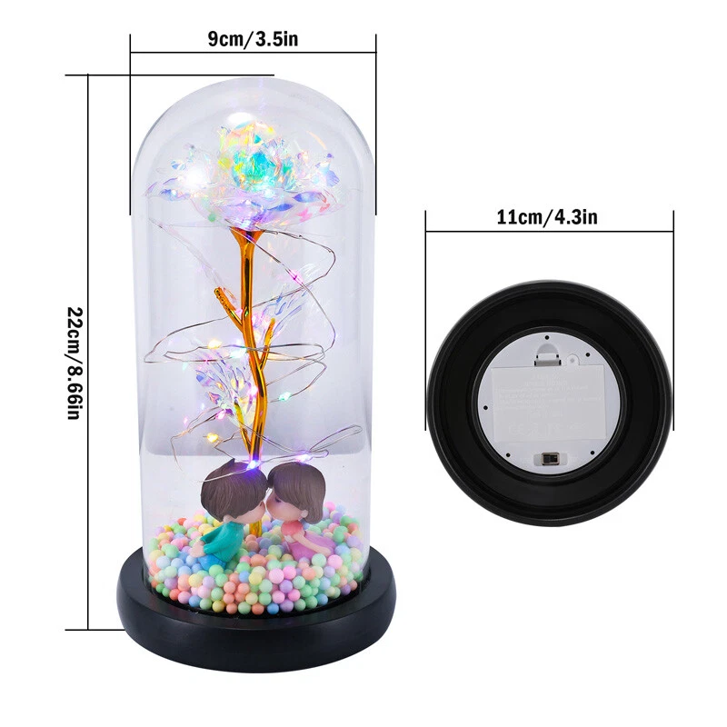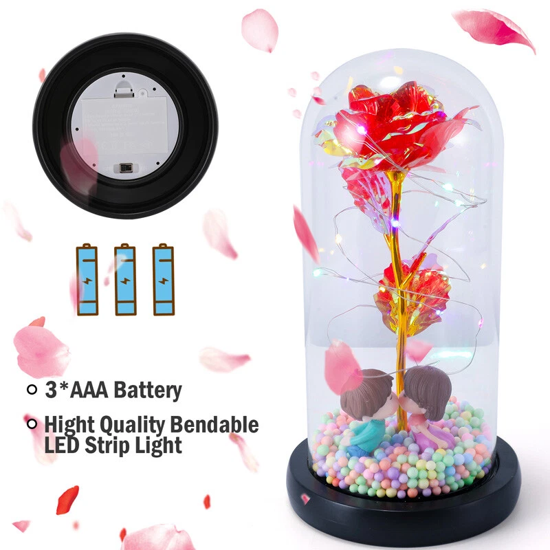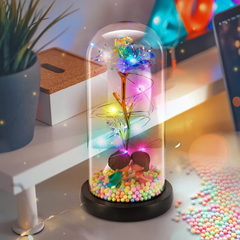 Gifts for Wife Women Wife Gifts for Her Christmas Girlfriend Gifts Birthday Gift 🌹Red Rose Whisper🌹 -- Love, Passion, Beautiful love. 🌹Golden Rose Whisper🌹-- Noble, Beautiful, Apologetic. 🌹Red and Golden Rose Whisper🌹-- Happiness. 🌹Blue Rose Whisper🌹-- Miracles, Pure, impossible. 🌹Purple Rose Whisper🌹-- Deep Love, Mysterious and Noble. 🎁 Valentines Day Gifts For Her, Mom Gifts, gifts for grandma,valentines rose in Glass Dome perfectly and eternally, crystal clear Glass Dome. Colorful artificial flower rose gifts will never wither and die. The blue Rose Flower Gifts is perfect and impeccable,represent love,colorful roses stand for love and warm. Rose flower is as full of infinite hope and beauty. And it will bring her infinite love and beauty. Rose gifts for her. 🎁 Perfect Valentines day gifts for woman who has everything,cute women gifts. Women Gifts For Moms which are Awesome and Totally Thoughtful. Glass dome rose also would look amazing her gifts in your living room or bedroom. Unique rose flower gift for women,girlfriend,wife,mom,grandma,mother-in-law and stepmom,etc. Birthday presents for women. Mom valentines day gifts. 🎁 Light Up Rose Mom Gifts For Womens. Valentines day gifts for mom from daughter. Valentines day gifts for sister,Valentines day gifts for her. Crystal artificial Rose in a glass dome is wrapped around an LED Strip light,Powered by 3 x AAA batteries(include). Led strip light bright warm white lighting. The beautiful rose flower gift can use in daytime and nighttime for home room or create romantic atmosphere,Valentines glass rose is symbol of appreciation,best wishes,love and romantics. #12618-12619-12620-12621 Pink/Purple/Blue/Red LED Rose Flower+Glass Dome: -- Rose Flower: Made of high-quality plastic, which makes the rose and petals look very real, and also covered with a transparent dome, which can protect the rose flower and enjoy the beauty of the rose in 360°. -- Romantic Symbol: This is a beautiful LED light rose, which means enthusiasm and romance, not only eternal love, but also a symbol of good wishes. -- LED Roses: Roses wrapped around the LED light strip, powered by batteries, can be used for home decoration or create a romantic atmosphere during the day and night. -- Wide Application: Not only can be used as a living room or bedroom decoration, but also can be used as a gift for relatives or friends, very suitable for home decoration, holiday gifts, etc. Specification: Light color: warm white Material: plastic Lighting mode: always on Uses: suitable for home decoration, holiday gifts, etc. Battery Type: 1.5V*AAA battery (NOT Included) Product size: 20.5 (height) *11 (bottom diameter) *9cm/8.07*4.3*3.5inch Package includes: 1xRose Flower Lamp 1x Packing Box #12449 Colorful LED Rose Flower+Kiss Doll: -- Rose Flower: This colorful foil gold rose flower is made of high-quality plastic with a stable and smooth surface, the roses and petals displayed look very real, and it is also covered with a transparent dome that protects the rose flower and makes it timeless. -- LED Rose: The rose is wrapped around the colorful LED light strip, powered by 3 AAA batteries (included). When turned on at night, it will light up with colorful constant lights, creating a romantic atmosphere for your home and bedroom at night. -- Romantic Symbol: The built-in kissing toy for little boys and girls is very cute. The rose will bring you infinite love and beauty. It not only symbolizes eternal love, but also a symbol of good wishes. -- Wide Application: Not only can be used as a decoration in the living room or bedroom, but also as a gift for relatives or lovers, very suitable for home decoration, holiday gifts, etc. Specification: Flower color: colorful Light color: multicolor Material: plastic Lighting mode: always on Battery type: 1.5V*AAA battery (NOT Included) Usage: Suitable for home decoration, holiday gifts, etc. Product size: 21.5 (height)*11 (bottom diameter)*9 (thickness) cm/8.46*4.3*3.5inch Package includes: 1x Rose Flower Night Light 1x Packing Box #12450 Red LED Rose Flower+Kiss Doll: -- Rose Flower: This colorful foil gold rose flower is made of high-quality plastic with a stable and smooth surface, the roses and petals displayed look very real, and it is also covered with a transparent dome that protects the rose flower and makes it timeless. -- LED Rose: The rose is wrapped around the colorful LED light strip, powered by 3 AAA batteries (Included ). When turned on at night, it will light up with colorful constant lights, creating a romantic atmosphere for your home and bedroom at night. -- Romantic Symbol: The built-in kissing toy for little boys and girls is very cute. The rose will bring you infinite love and beauty. It not only symbolizes eternal love, but also a symbol of good wishes. -- Wide Application: Not only can be used as a decoration in the living room or bedroom, but also as a gift for relatives or lovers, very suitable for home decoration, holiday gifts, etc. Specification: Flower color: red Light color: multicolor Material: plastic Lighting mode: always on Battery type: 1.5V*AAA battery (NOT Included ) Usage: Suitable for home decoration, holiday gifts, etc. Product size: 21.5 (height)*11 (bottom diameter)*9 (thickness) cm/8.46*4.3*3.5inch Package includes: 1*Rose Flower Night Light 1*Packing Box #12451 Colorful LED Rose Flower+Glass Dome: -- Rose Flower: This colorful foil gold rose flower is made of high-quality plastic with a stable and smooth surface, the roses and petals displayed look very real, and it is also covered with a transparent dome that protects the rose flower and makes it timeless. -- LED Rose: The rose is wrapped around the colorful LED light strip, powered by 3 AAA batteries (Included ). When turned on at night, it will light up with colorful constant lights, creating a romantic atmosphere for your home and bedroom at night. -- Romantic Symbol: The rose will bring you infinite love and beau