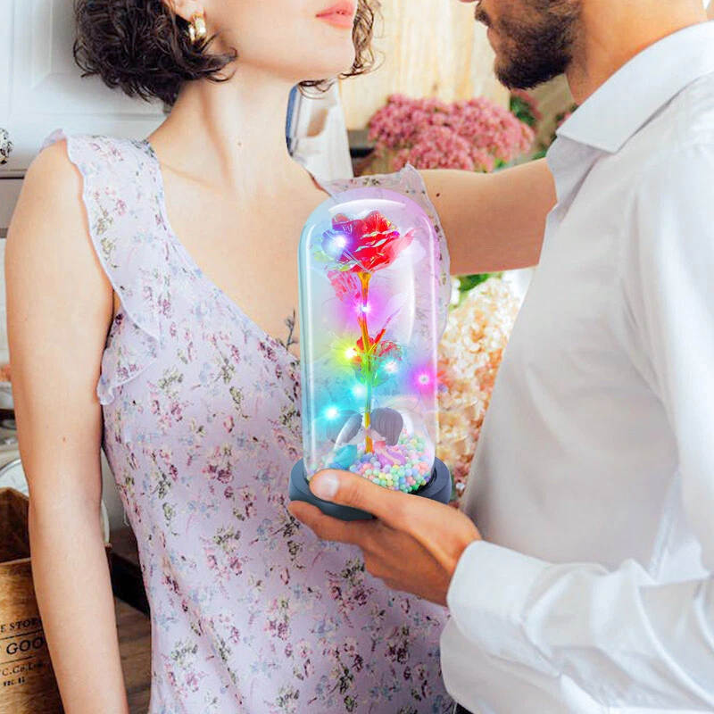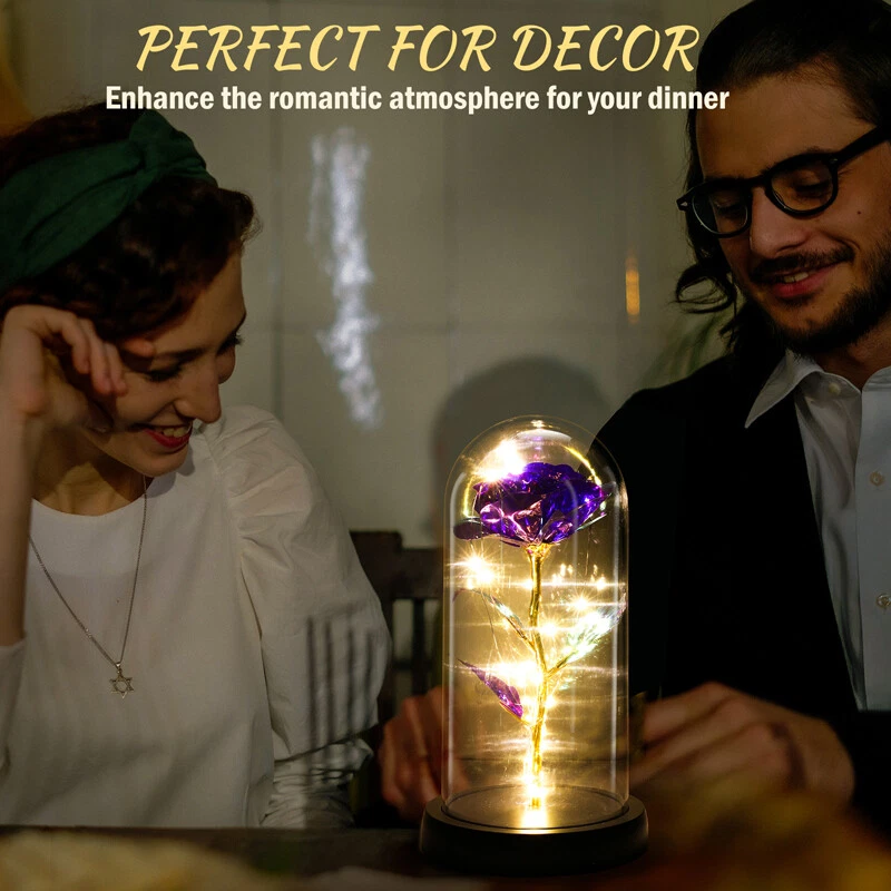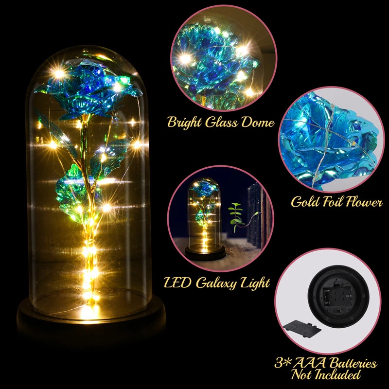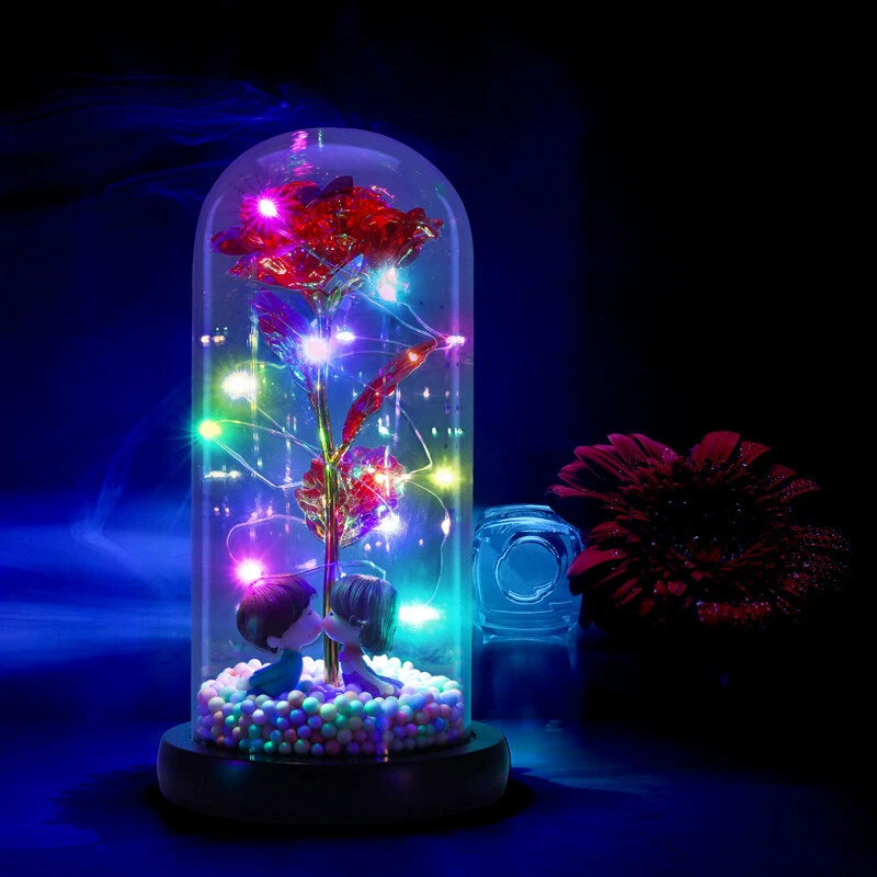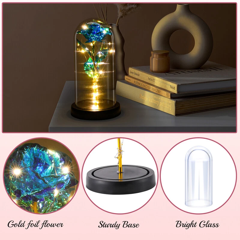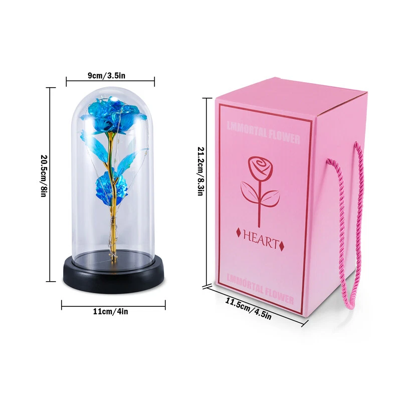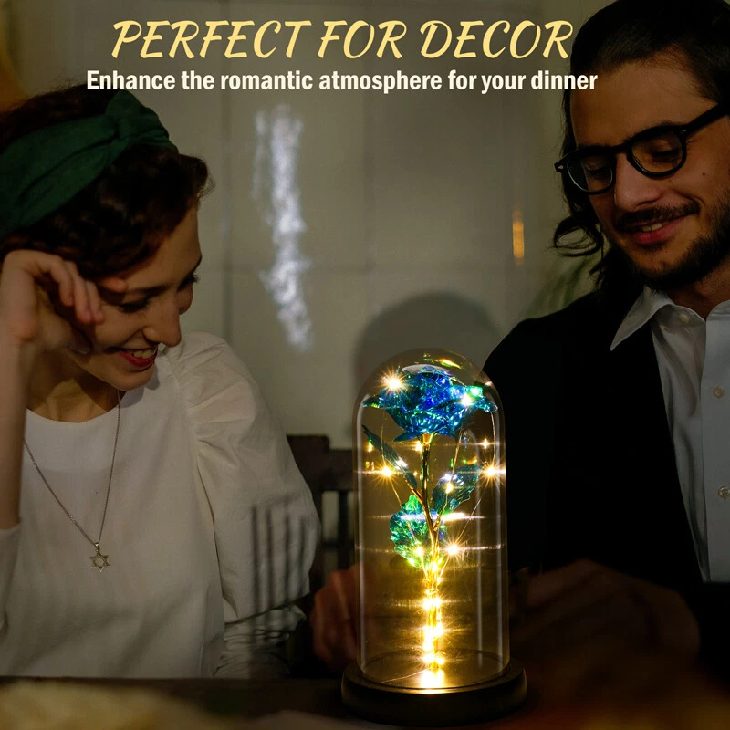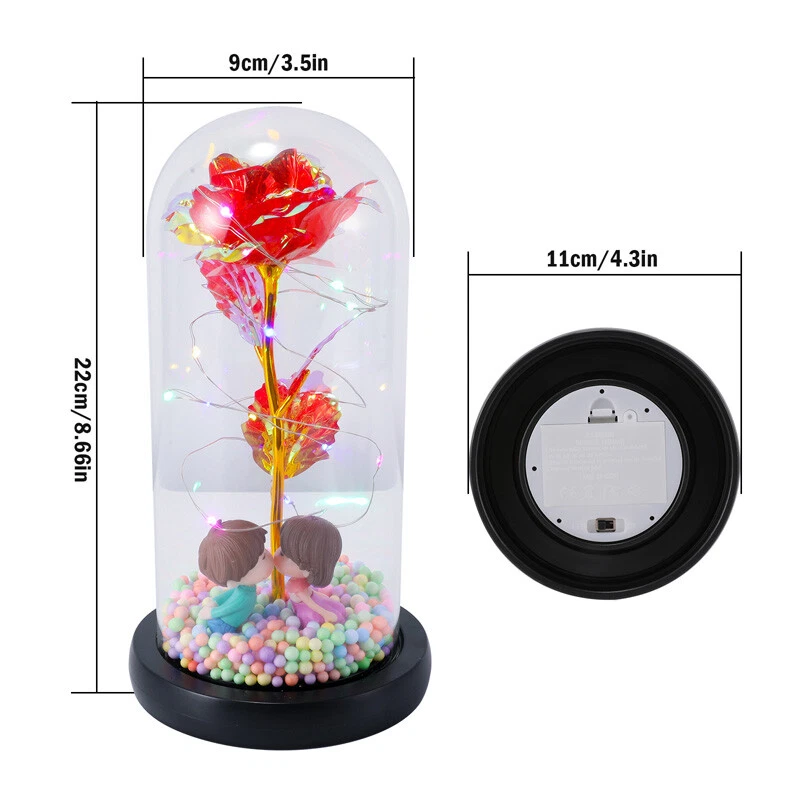Gifts for Wife Women Wife Gifts for Her Christmas Girlfriend Gifts Birthday Gift 🌹Red Rose Whisper🌹 -- Love, Passion, Beautiful love. 🌹Golden Rose Whisper🌹-- Noble, Beautiful, Apologetic. 🌹Red and Golden Rose Whisper🌹-- Happiness. 🌹Blue Rose Whisper🌹-- Miracles, Pure, impossible. 🌹Purple Rose Whisper🌹-- Deep Love, Mysterious and Noble. 🎁 Valentines Day Gifts For Her, Mom Gifts, gifts for grandma,valentines rose in Glass Dome perfectly and eternally, crystal clear Glass Dome. Colorful artificial flower rose gifts will never wither and die. The blue Rose Flower Gifts is perfect and impeccable,represent love,colorful roses stand for love and warm. Rose flower is as full of infinite hope and beauty. And it will bring her infinite love and beauty. Rose gifts for her. 🎁 Perfect Valentines day gifts for woman who has everything,cute women gifts. Women Gifts For Moms which are Awesome and Totally Thoughtful. Glass dome rose also would look amazing her gifts in your living room or bedroom. Unique rose flower gift for women,girlfriend,wife,mom,grandma,mother-in-law and stepmom,etc. Birthday presents for women. Mom valentines day gifts. 🎁 Light Up Rose Mom Gifts For Womens. Valentines day gifts for mom from daughter. Valentines day gifts for sister,Valentines day gifts for her. Crystal artificial Rose in a glass dome is wrapped around an LED Strip light,Powered by 3 x AAA batteries(include). Led strip light bright warm white lighting. The beautiful rose flower gift can use in daytime and nighttime for home room or create romantic atmosphere,Valentines glass rose is symbol of appreciation,best wishes,love and romantics. #12618-12619-12620-12621 Pink/Purple/Blue/Red LED Rose Flower+Glass Dome: -- Rose Flower: Made of high-quality plastic, which makes the rose and petals look very real, and also covered with a transparent dome, which can protect the rose flower and enjoy the beauty of the rose in 360°. -- Romantic Symbol: This is a beautiful LED light rose, which means enthusiasm and romance, not only eternal love, but also a symbol of good wishes. -- LED Roses: Roses wrapped around the LED light strip, powered by batteries, can be used for home decoration or create a romantic atmosphere during the day and night. -- Wide Application: Not only can be used as a living room or bedroom decoration, but also can be used as a gift for relatives or friends, very suitable for home decoration, holiday gifts, etc. Specification: Light color: warm white Material: plastic Lighting mode: always on Uses: suitable for home decoration, holiday gifts, etc. Battery Type: 1.5V*AAA battery (NOT Included) Product size: 20.5 (height) *11 (bottom diameter) *9cm/8.07*4.3*3.5inch Package includes: 1xRose Flower Lamp 1x Packing Box #12449 Colorful LED Rose Flower+Kiss Doll: -- Rose Flower: This colorful foil gold rose flower is made of high-quality plastic with a stable and smooth surface, the roses and petals displayed look very real, and it is also covered with a transparent dome that protects the rose flower and makes it timeless. -- LED Rose: The rose is wrapped around the colorful LED light strip, powered by 3 AAA batteries (included). When turned on at night, it will light up with colorful constant lights, creating a romantic atmosphere for your home and bedroom at night. -- Romantic Symbol: The built-in kissing toy for little boys and girls is very cute. The rose will bring you infinite love and beauty. It not only symbolizes eternal love, but also a symbol of good wishes. -- Wide Application: Not only can be used as a decoration in the living room or bedroom, but also as a gift for relatives or lovers, very suitable for home decoration, holiday gifts, etc. Specification: Flower color: colorful Light color: multicolor Material: plastic Lighting mode: always on Battery type: 1.5V*AAA battery (NOT Included) Usage: Suitable for home decoration, holiday gifts, etc. Product size: 21.5 (height)*11 (bottom diameter)*9 (thickness) cm/8.46*4.3*3.5inch Package includes: 1x Rose Flower Night Light 1x Packing Box #12450 Red LED Rose Flower+Kiss Doll: -- Rose Flower: This colorful foil gold rose flower is made of high-quality plastic with a stable and smooth surface, the roses and petals displayed look very real, and it is also covered with a transparent dome that protects the rose flower and makes it timeless. -- LED Rose: The rose is wrapped around the colorful LED light strip, powered by 3 AAA batteries (Included ). When turned on at night, it will light up with colorful constant lights, creating a romantic atmosphere for your home and bedroom at night. -- Romantic Symbol: The built-in kissing toy for little boys and girls is very cute. The rose will bring you infinite love and beauty. It not only symbolizes eternal love, but also a symbol of good wishes. -- Wide Application: Not only can be used as a decoration in the living room or bedroom, but also as a gift for relatives or lovers, very suitable for home decoration, holiday gifts, etc. Specification: Flower color: red Light color: multicolor Material: plastic Lighting mode: always on Battery type: 1.5V*AAA battery (NOT Included ) Usage: Suitable for home decoration, holiday gifts, etc. Product size: 21.5 (height)*11 (bottom diameter)*9 (thickness) cm/8.46*4.3*3.5inch Package includes: 1*Rose Flower Night Light 1*Packing Box #12451 Colorful LED Rose Flower+Glass Dome: -- Rose Flower: This colorful foil gold rose flower is made of high-quality plastic with a stable and smooth surface, the roses and petals displayed look very real, and it is also covered with a transparent dome that protects the rose flower and makes it timeless. -- LED Rose: The rose is wrapped around the colorful LED light strip, powered by 3 AAA batteries (Included ). When turned on at night, it will light up with colorful constant lights, creating a romantic atmosphere for your home and bedroom at night. -- Romantic Symbol: The rose will bring you infinite love and beau