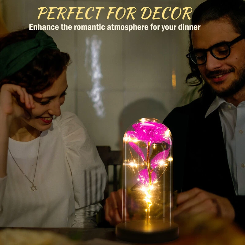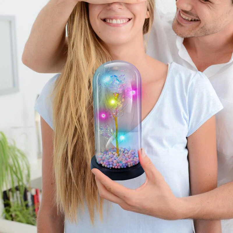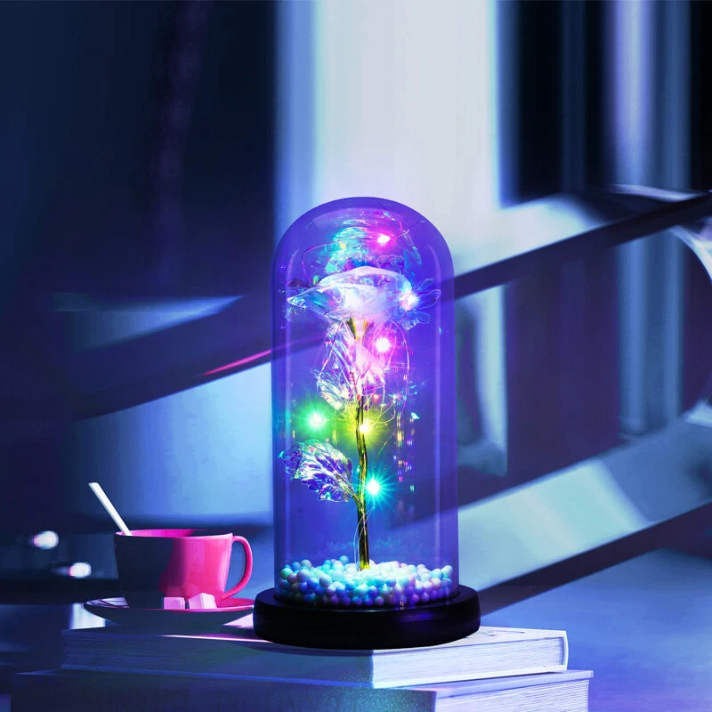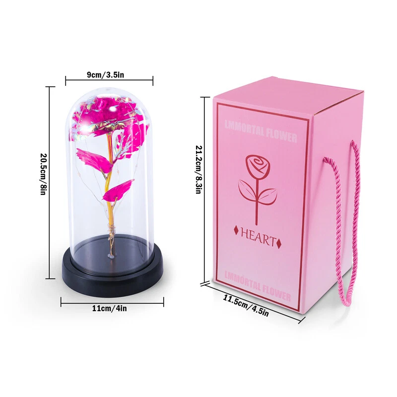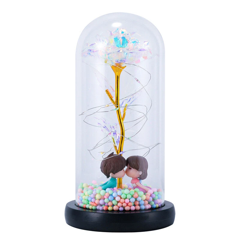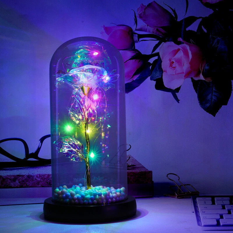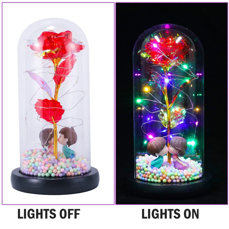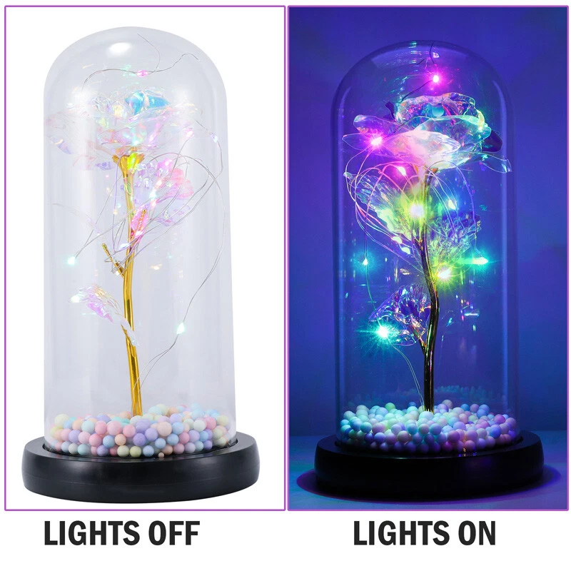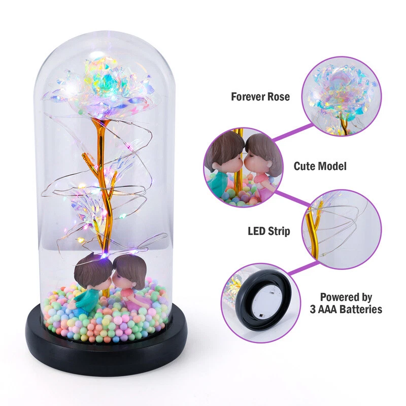 Gifts for Wife Women Wife Gifts for Her Christmas Girlfriend Gifts Birthday Gift 🌹Red Rose Whisper🌹 -- Love, Passion, Beautiful love. 🌹Golden Rose Whisper🌹-- Noble, Beautiful, Apologetic. 🌹Red and Golden Rose Whisper🌹-- Happiness. 🌹Blue Rose Whisper🌹-- Miracles, Pure, impossible. 🌹Purple Rose Whisper🌹-- Deep Love, Mysterious and Noble. 🎁 Valentines Day Gifts For Her, Mom Gifts, gifts for grandma,valentines rose in Glass Dome perfectly and eternally, crystal clear Glass Dome. Colorful artificial flower rose gifts will never wither and die. The blue Rose Flower Gifts is perfect and impeccable,represent love,colorful roses stand for love and warm. Rose flower is as full of infinite hope and beauty. And it will bring her infinite love and beauty. Rose gifts for her. 🎁 Perfect Valentines day gifts for woman who has everything,cute women gifts. Women Gifts For Moms which are Awesome and Totally Thoughtful. Glass dome rose also would look amazing her gifts in your living room or bedroom. Unique rose flower gift for women,girlfriend,wife,mom,grandma,mother-in-law and stepmom,etc. Birthday presents for women. Mom valentines day gifts. 🎁 Light Up Rose Mom Gifts For Womens. Valentines day gifts for mom from daughter. Valentines day gifts for sister,Valentines day gifts for her. Crystal artificial Rose in a glass dome is wrapped around an LED Strip light,Powered by 3 x AAA batteries(include). Led strip light bright warm white lighting. The beautiful rose flower gift can use in daytime and nighttime for home room or create romantic atmosphere,Valentines glass rose is symbol of appreciation,best wishes,love and romantics. #12618-12619-12620-12621 Pink/Purple/Blue/Red LED Rose Flower+Glass Dome: -- Rose Flower: Made of high-quality plastic, which makes the rose and petals look very real, and also covered with a transparent dome, which can protect the rose flower and enjoy the beauty of the rose in 360°. -- Romantic Symbol: This is a beautiful LED light rose, which means enthusiasm and romance, not only eternal love, but also a symbol of good wishes. -- LED Roses: Roses wrapped around the LED light strip, powered by batteries, can be used for home decoration or create a romantic atmosphere during the day and night. -- Wide Application: Not only can be used as a living room or bedroom decoration, but also can be used as a gift for relatives or friends, very suitable for home decoration, holiday gifts, etc. Specification: Light color: warm white Material: plastic Lighting mode: always on Uses: suitable for home decoration, holiday gifts, etc. Battery Type: 1.5V*AAA battery (NOT Included) Product size: 20.5 (height) *11 (bottom diameter) *9cm/8.07*4.3*3.5inch Package includes: 1xRose Flower Lamp 1x Packing Box #12449 Colorful LED Rose Flower+Kiss Doll: -- Rose Flower: This colorful foil gold rose flower is made of high-quality plastic with a stable and smooth surface, the roses and petals displayed look very real, and it is also covered with a transparent dome that protects the rose flower and makes it timeless. -- LED Rose: The rose is wrapped around the colorful LED light strip, powered by 3 AAA batteries (included). When turned on at night, it will light up with colorful constant lights, creating a romantic atmosphere for your home and bedroom at night. -- Romantic Symbol: The built-in kissing toy for little boys and girls is very cute. The rose will bring you infinite love and beauty. It not only symbolizes eternal love, but also a symbol of good wishes. -- Wide Application: Not only can be used as a decoration in the living room or bedroom, but also as a gift for relatives or lovers, very suitable for home decoration, holiday gifts, etc. Specification: Flower color: colorful Light color: multicolor Material: plastic Lighting mode: always on Battery type: 1.5V*AAA battery (NOT Included) Usage: Suitable for home decoration, holiday gifts, etc. Product size: 21.5 (height)*11 (bottom diameter)*9 (thickness) cm/8.46*4.3*3.5inch Package includes: 1x Rose Flower Night Light 1x Packing Box #12450 Red LED Rose Flower+Kiss Doll: -- Rose Flower: This colorful foil gold rose flower is made of high-quality plastic with a stable and smooth surface, the roses and petals displayed look very real, and it is also covered with a transparent dome that protects the rose flower and makes it timeless. -- LED Rose: The rose is wrapped around the colorful LED light strip, powered by 3 AAA batteries (Included ). When turned on at night, it will light up with colorful constant lights, creating a romantic atmosphere for your home and bedroom at night. -- Romantic Symbol: The built-in kissing toy for little boys and girls is very cute. The rose will bring you infinite love and beauty. It not only symbolizes eternal love, but also a symbol of good wishes. -- Wide Application: Not only can be used as a decoration in the living room or bedroom, but also as a gift for relatives or lovers, very suitable for home decoration, holiday gifts, etc. Specification: Flower color: red Light color: multicolor Material: plastic Lighting mode: always on Battery type: 1.5V*AAA battery (NOT Included ) Usage: Suitable for home decoration, holiday gifts, etc. Product size: 21.5 (height)*11 (bottom diameter)*9 (thickness) cm/8.46*4.3*3.5inch Package includes: 1*Rose Flower Night Light 1*Packing Box #12451 Colorful LED Rose Flower+Glass Dome: -- Rose Flower: This colorful foil gold rose flower is made of high-quality plastic with a stable and smooth surface, the roses and petals displayed look very real, and it is also covered with a transparent dome that protects the rose flower and makes it timeless. -- LED Rose: The rose is wrapped around the colorful LED light strip, powered by 3 AAA batteries (Included ). When turned on at night, it will light up with colorful constant lights, creating a romantic atmosphere for your home and bedroom at night. -- Romantic Symbol: The rose will bring you infinite love and beau