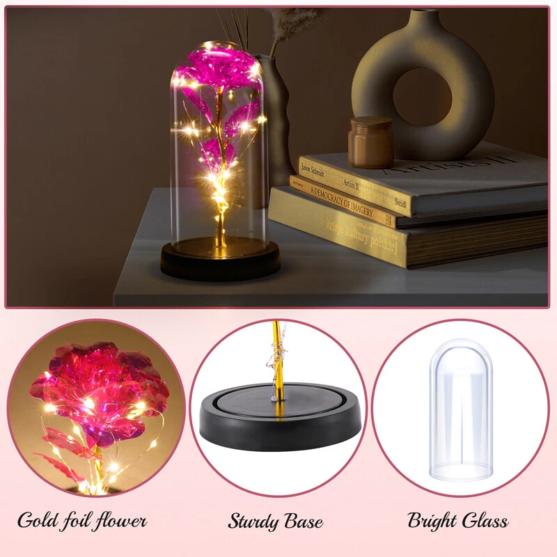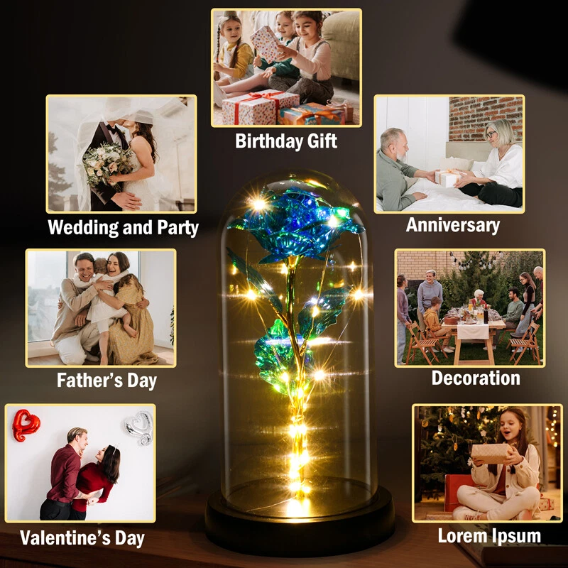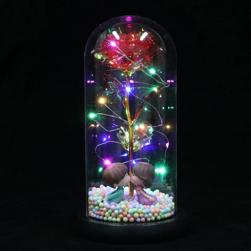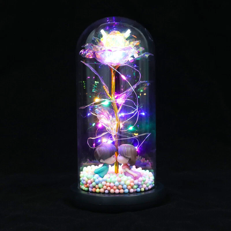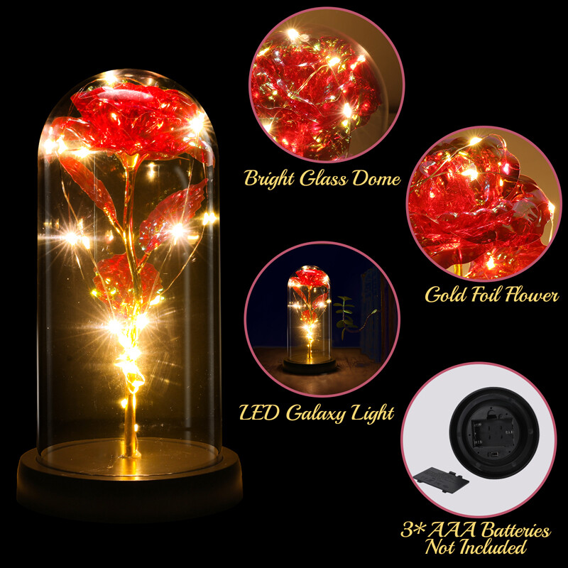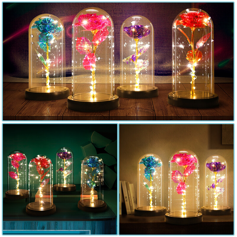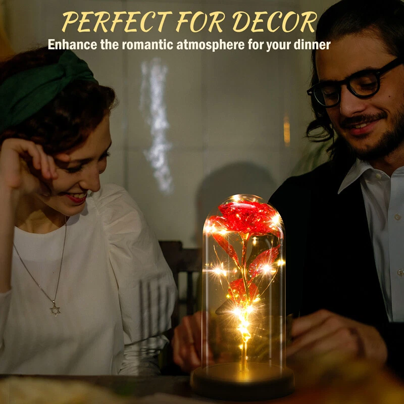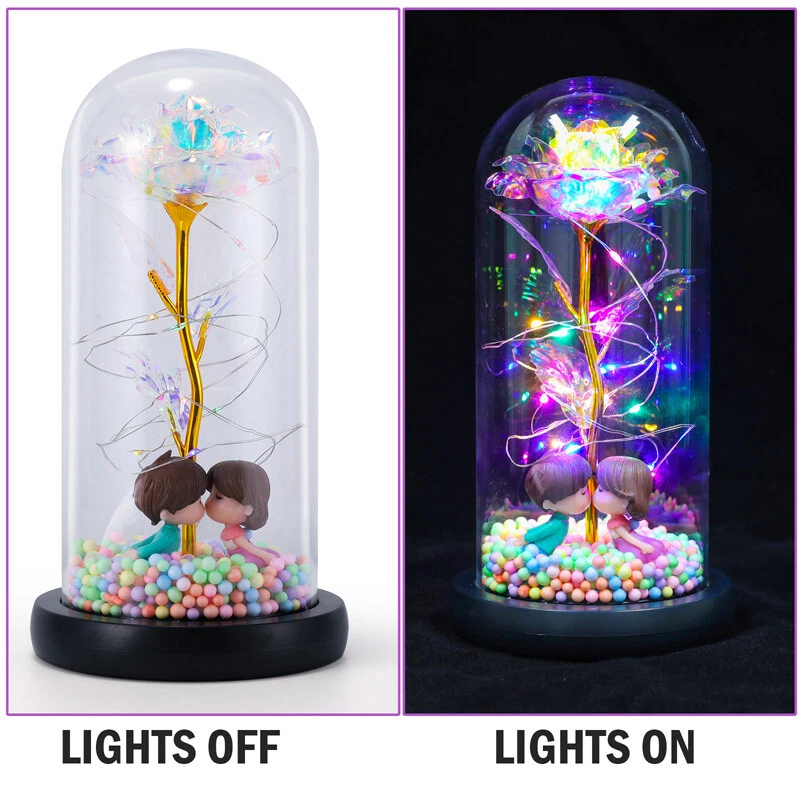 Gifts for Wife Women Wife Gifts for Her Christmas Girlfriend Gifts Birthday Gift 🌹Red Rose Whisper🌹 -- Love, Passion, Beautiful love. 🌹Golden Rose Whisper🌹-- Noble, Beautiful, Apologetic. 🌹Red and Golden Rose Whisper🌹-- Happiness. 🌹Blue Rose Whisper🌹-- Miracles, Pure, impossible. 🌹Purple Rose Whisper🌹-- Deep Love, Mysterious and Noble. 🎁 Valentines Day Gifts For Her, Mom Gifts, gifts for grandma,valentines rose in Glass Dome perfectly and eternally, crystal clear Glass Dome. Colorful artificial flower rose gifts will never wither and die. The blue Rose Flower Gifts is perfect and impeccable,represent love,colorful roses stand for love and warm. Rose flower is as full of infinite hope and beauty. And it will bring her infinite love and beauty. Rose gifts for her. 🎁 Perfect Valentines day gifts for woman who has everything,cute women gifts. Women Gifts For Moms which are Awesome and Totally Thoughtful. Glass dome rose also would look amazing her gifts in your living room or bedroom. Unique rose flower gift for women,girlfriend,wife,mom,grandma,mother-in-law and stepmom,etc. Birthday presents for women. Mom valentines day gifts. 🎁 Light Up Rose Mom Gifts For Womens. Valentines day gifts for mom from daughter. Valentines day gifts for sister,Valentines day gifts for her. Crystal artificial Rose in a glass dome is wrapped around an LED Strip light,Powered by 3 x AAA batteries(include). Led strip light bright warm white lighting. The beautiful rose flower gift can use in daytime and nighttime for home room or create romantic atmosphere,Valentines glass rose is symbol of appreciation,best wishes,love and romantics. #12618-12619-12620-12621 Pink/Purple/Blue/Red LED Rose Flower+Glass Dome: -- Rose Flower: Made of high-quality plastic, which makes the rose and petals look very real, and also covered with a transparent dome, which can protect the rose flower and enjoy the beauty of the rose in 360°. -- Romantic Symbol: This is a beautiful LED light rose, which means enthusiasm and romance, not only eternal love, but also a symbol of good wishes. -- LED Roses: Roses wrapped around the LED light strip, powered by batteries, can be used for home decoration or create a romantic atmosphere during the day and night. -- Wide Application: Not only can be used as a living room or bedroom decoration, but also can be used as a gift for relatives or friends, very suitable for home decoration, holiday gifts, etc. Specification: Light color: warm white Material: plastic Lighting mode: always on Uses: suitable for home decoration, holiday gifts, etc. Battery Type: 1.5V*AAA battery (NOT Included) Product size: 20.5 (height) *11 (bottom diameter) *9cm/8.07*4.3*3.5inch Package includes: 1xRose Flower Lamp 1x Packing Box #12449 Colorful LED Rose Flower+Kiss Doll: -- Rose Flower: This colorful foil gold rose flower is made of high-quality plastic with a stable and smooth surface, the roses and petals displayed look very real, and it is also covered with a transparent dome that protects the rose flower and makes it timeless. -- LED Rose: The rose is wrapped around the colorful LED light strip, powered by 3 AAA batteries (included). When turned on at night, it will light up with colorful constant lights, creating a romantic atmosphere for your home and bedroom at night. -- Romantic Symbol: The built-in kissing toy for little boys and girls is very cute. The rose will bring you infinite love and beauty. It not only symbolizes eternal love, but also a symbol of good wishes. -- Wide Application: Not only can be used as a decoration in the living room or bedroom, but also as a gift for relatives or lovers, very suitable for home decoration, holiday gifts, etc. Specification: Flower color: colorful Light color: multicolor Material: plastic Lighting mode: always on Battery type: 1.5V*AAA battery (NOT Included) Usage: Suitable for home decoration, holiday gifts, etc. Product size: 21.5 (height)*11 (bottom diameter)*9 (thickness) cm/8.46*4.3*3.5inch Package includes: 1x Rose Flower Night Light 1x Packing Box #12450 Red LED Rose Flower+Kiss Doll: -- Rose Flower: This colorful foil gold rose flower is made of high-quality plastic with a stable and smooth surface, the roses and petals displayed look very real, and it is also covered with a transparent dome that protects the rose flower and makes it timeless. -- LED Rose: The rose is wrapped around the colorful LED light strip, powered by 3 AAA batteries (Included ). When turned on at night, it will light up with colorful constant lights, creating a romantic atmosphere for your home and bedroom at night. -- Romantic Symbol: The built-in kissing toy for little boys and girls is very cute. The rose will bring you infinite love and beauty. It not only symbolizes eternal love, but also a symbol of good wishes. -- Wide Application: Not only can be used as a decoration in the living room or bedroom, but also as a gift for relatives or lovers, very suitable for home decoration, holiday gifts, etc. Specification: Flower color: red Light color: multicolor Material: plastic Lighting mode: always on Battery type: 1.5V*AAA battery (NOT Included ) Usage: Suitable for home decoration, holiday gifts, etc. Product size: 21.5 (height)*11 (bottom diameter)*9 (thickness) cm/8.46*4.3*3.5inch Package includes: 1*Rose Flower Night Light 1*Packing Box #12451 Colorful LED Rose Flower+Glass Dome: -- Rose Flower: This colorful foil gold rose flower is made of high-quality plastic with a stable and smooth surface, the roses and petals displayed look very real, and it is also covered with a transparent dome that protects the rose flower and makes it timeless. -- LED Rose: The rose is wrapped around the colorful LED light strip, powered by 3 AAA batteries (Included ). When turned on at night, it will light up with colorful constant lights, creating a romantic atmosphere for your home and bedroom at night. -- Romantic Symbol: The rose will bring you infinite love and beau