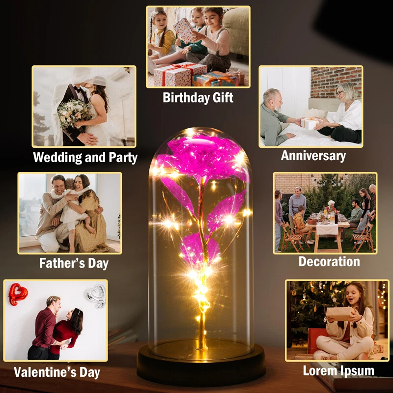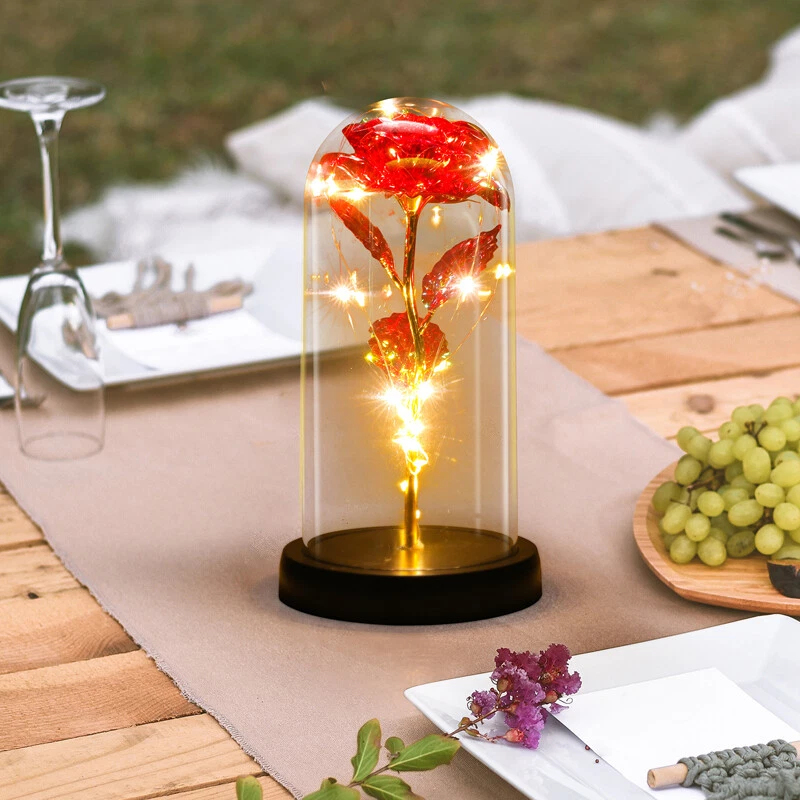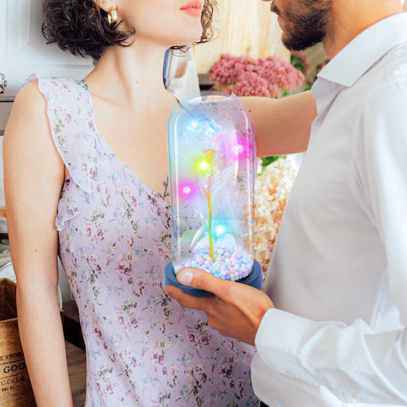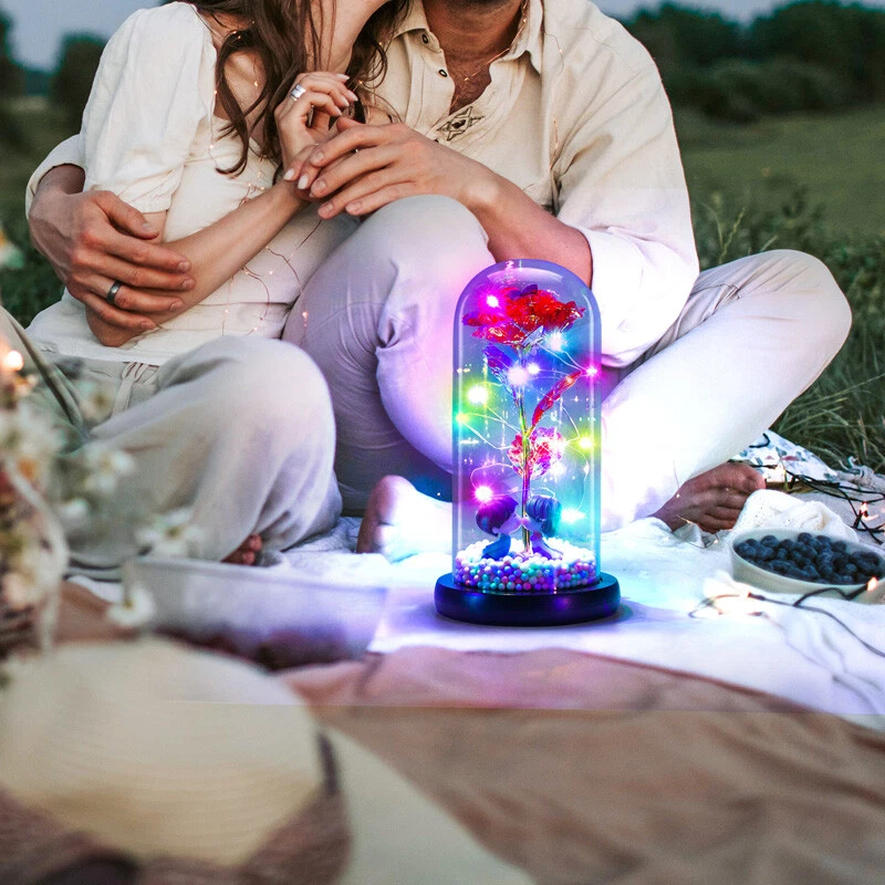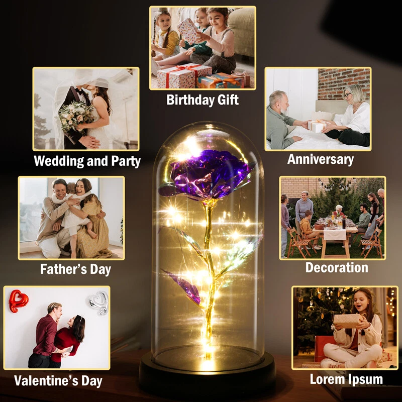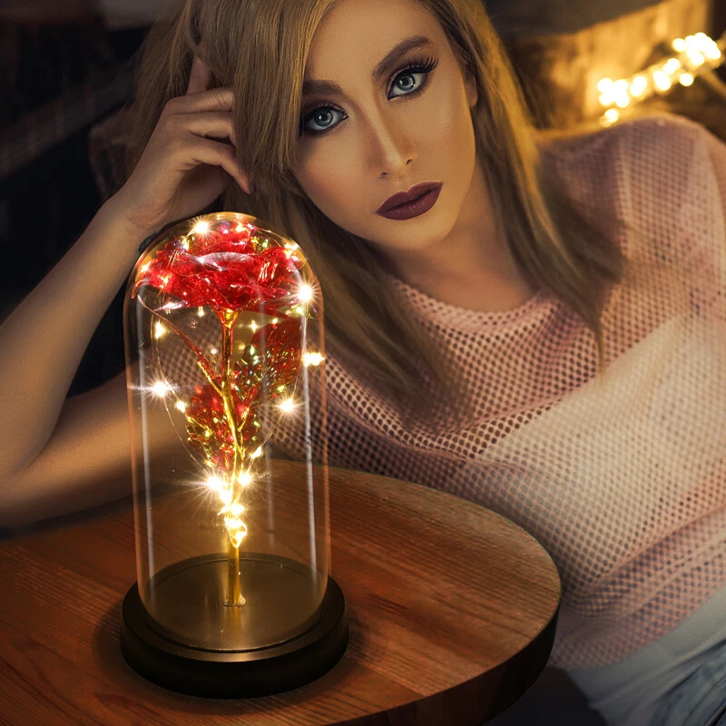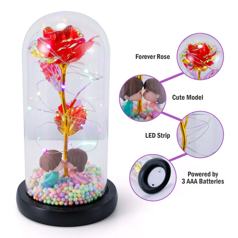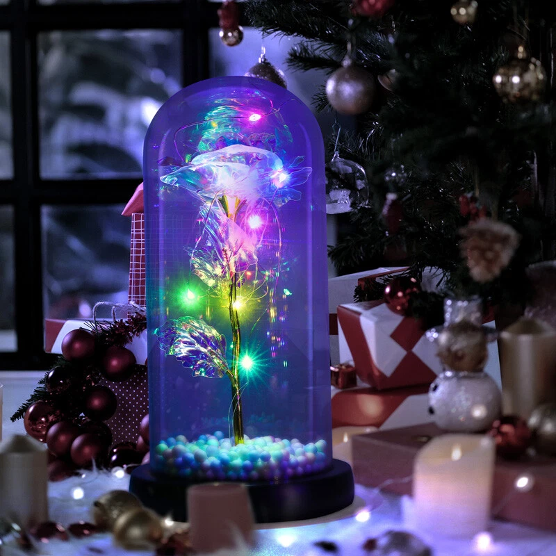 Gifts for Wife Women Wife Gifts for Her Christmas Girlfriend Gifts Birthday Gift 🌹Red Rose Whisper🌹 -- Love, Passion, Beautiful love. 🌹Golden Rose Whisper🌹-- Noble, Beautiful, Apologetic. 🌹Red and Golden Rose Whisper🌹-- Happiness. 🌹Blue Rose Whisper🌹-- Miracles, Pure, impossible. 🌹Purple Rose Whisper🌹-- Deep Love, Mysterious and Noble. 🎁 Valentines Day Gifts For Her, Mom Gifts, gifts for grandma,valentines rose in Glass Dome perfectly and eternally, crystal clear Glass Dome. Colorful artificial flower rose gifts will never wither and die. The blue Rose Flower Gifts is perfect and impeccable,represent love,colorful roses stand for love and warm. Rose flower is as full of infinite hope and beauty. And it will bring her infinite love and beauty. Rose gifts for her. 🎁 Perfect Valentines day gifts for woman who has everything,cute women gifts. Women Gifts For Moms which are Awesome and Totally Thoughtful. Glass dome rose also would look amazing her gifts in your living room or bedroom. Unique rose flower gift for women,girlfriend,wife,mom,grandma,mother-in-law and stepmom,etc. Birthday presents for women. Mom valentines day gifts. 🎁 Light Up Rose Mom Gifts For Womens. Valentines day gifts for mom from daughter. Valentines day gifts for sister,Valentines day gifts for her. Crystal artificial Rose in a glass dome is wrapped around an LED Strip light,Powered by 3 x AAA batteries(include). Led strip light bright warm white lighting. The beautiful rose flower gift can use in daytime and nighttime for home room or create romantic atmosphere,Valentines glass rose is symbol of appreciation,best wishes,love and romantics. #12618-12619-12620-12621 Pink/Purple/Blue/Red LED Rose Flower+Glass Dome: -- Rose Flower: Made of high-quality plastic, which makes the rose and petals look very real, and also covered with a transparent dome, which can protect the rose flower and enjoy the beauty of the rose in 360°. -- Romantic Symbol: This is a beautiful LED light rose, which means enthusiasm and romance, not only eternal love, but also a symbol of good wishes. -- LED Roses: Roses wrapped around the LED light strip, powered by batteries, can be used for home decoration or create a romantic atmosphere during the day and night. -- Wide Application: Not only can be used as a living room or bedroom decoration, but also can be used as a gift for relatives or friends, very suitable for home decoration, holiday gifts, etc. Specification: Light color: warm white Material: plastic Lighting mode: always on Uses: suitable for home decoration, holiday gifts, etc. Battery Type: 1.5V*AAA battery (NOT Included) Product size: 20.5 (height) *11 (bottom diameter) *9cm/8.07*4.3*3.5inch Package includes: 1xRose Flower Lamp 1x Packing Box #12449 Colorful LED Rose Flower+Kiss Doll: -- Rose Flower: This colorful foil gold rose flower is made of high-quality plastic with a stable and smooth surface, the roses and petals displayed look very real, and it is also covered with a transparent dome that protects the rose flower and makes it timeless. -- LED Rose: The rose is wrapped around the colorful LED light strip, powered by 3 AAA batteries (included). When turned on at night, it will light up with colorful constant lights, creating a romantic atmosphere for your home and bedroom at night. -- Romantic Symbol: The built-in kissing toy for little boys and girls is very cute. The rose will bring you infinite love and beauty. It not only symbolizes eternal love, but also a symbol of good wishes. -- Wide Application: Not only can be used as a decoration in the living room or bedroom, but also as a gift for relatives or lovers, very suitable for home decoration, holiday gifts, etc. Specification: Flower color: colorful Light color: multicolor Material: plastic Lighting mode: always on Battery type: 1.5V*AAA battery (NOT Included) Usage: Suitable for home decoration, holiday gifts, etc. Product size: 21.5 (height)*11 (bottom diameter)*9 (thickness) cm/8.46*4.3*3.5inch Package includes: 1x Rose Flower Night Light 1x Packing Box #12450 Red LED Rose Flower+Kiss Doll: -- Rose Flower: This colorful foil gold rose flower is made of high-quality plastic with a stable and smooth surface, the roses and petals displayed look very real, and it is also covered with a transparent dome that protects the rose flower and makes it timeless. -- LED Rose: The rose is wrapped around the colorful LED light strip, powered by 3 AAA batteries (Included ). When turned on at night, it will light up with colorful constant lights, creating a romantic atmosphere for your home and bedroom at night. -- Romantic Symbol: The built-in kissing toy for little boys and girls is very cute. The rose will bring you infinite love and beauty. It not only symbolizes eternal love, but also a symbol of good wishes. -- Wide Application: Not only can be used as a decoration in the living room or bedroom, but also as a gift for relatives or lovers, very suitable for home decoration, holiday gifts, etc. Specification: Flower color: red Light color: multicolor Material: plastic Lighting mode: always on Battery type: 1.5V*AAA battery (NOT Included ) Usage: Suitable for home decoration, holiday gifts, etc. Product size: 21.5 (height)*11 (bottom diameter)*9 (thickness) cm/8.46*4.3*3.5inch Package includes: 1*Rose Flower Night Light 1*Packing Box #12451 Colorful LED Rose Flower+Glass Dome: -- Rose Flower: This colorful foil gold rose flower is made of high-quality plastic with a stable and smooth surface, the roses and petals displayed look very real, and it is also covered with a transparent dome that protects the rose flower and makes it timeless. -- LED Rose: The rose is wrapped around the colorful LED light strip, powered by 3 AAA batteries (Included ). When turned on at night, it will light up with colorful constant lights, creating a romantic atmosphere for your home and bedroom at night. -- Romantic Symbol: The rose will bring you infinite love and beau