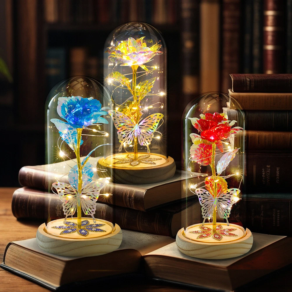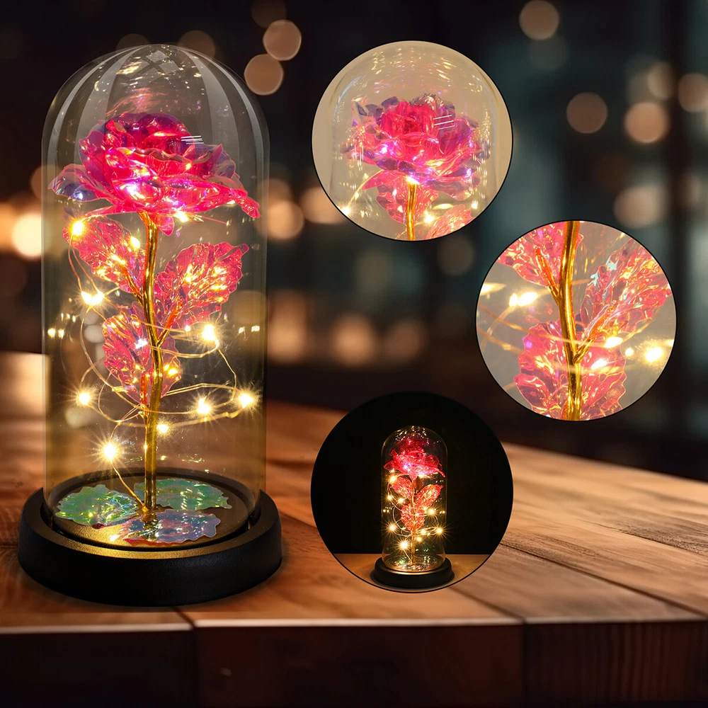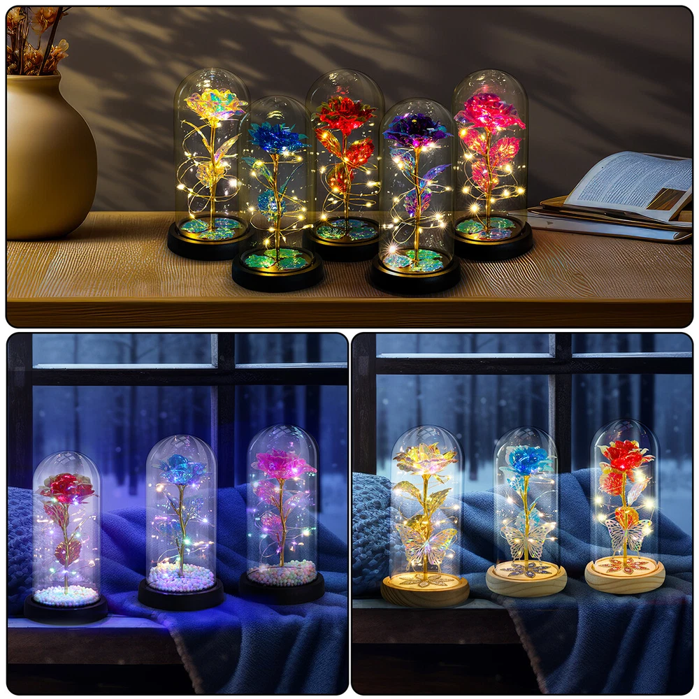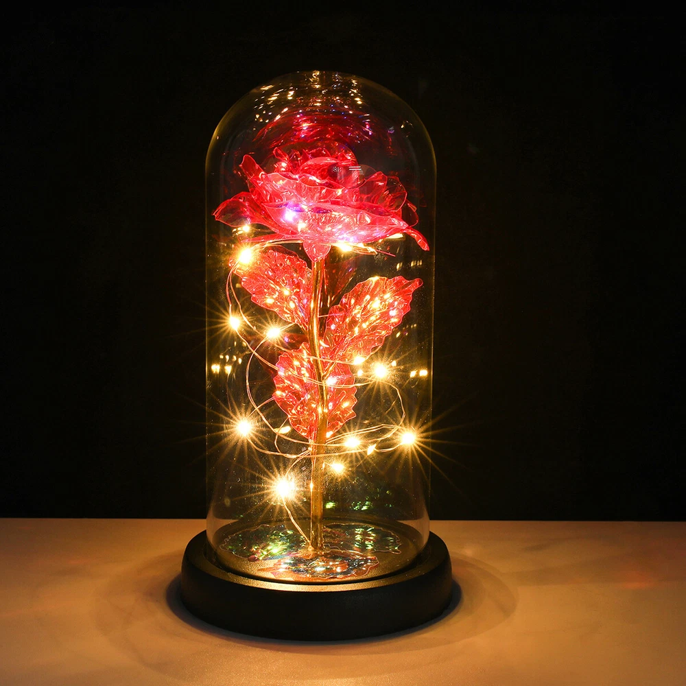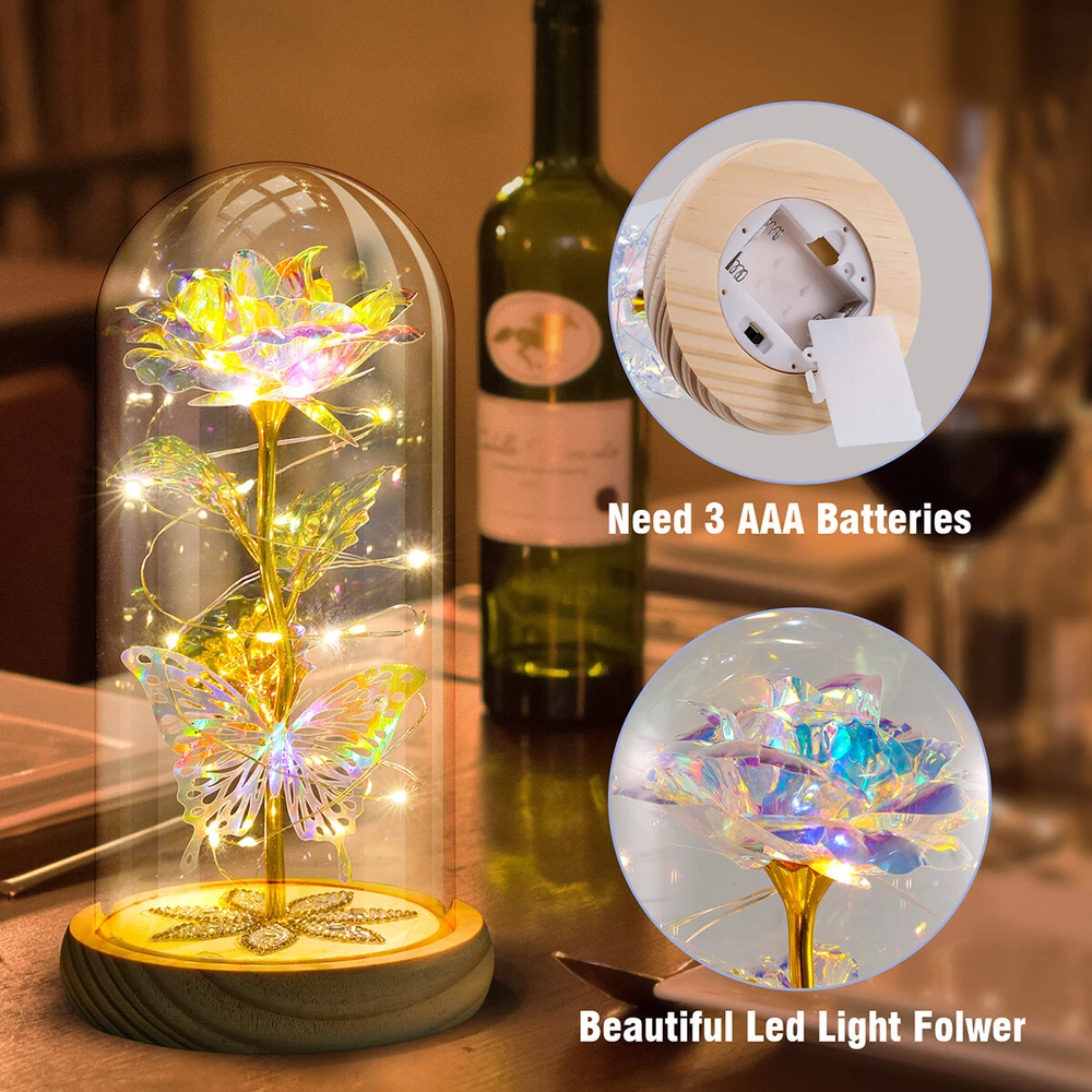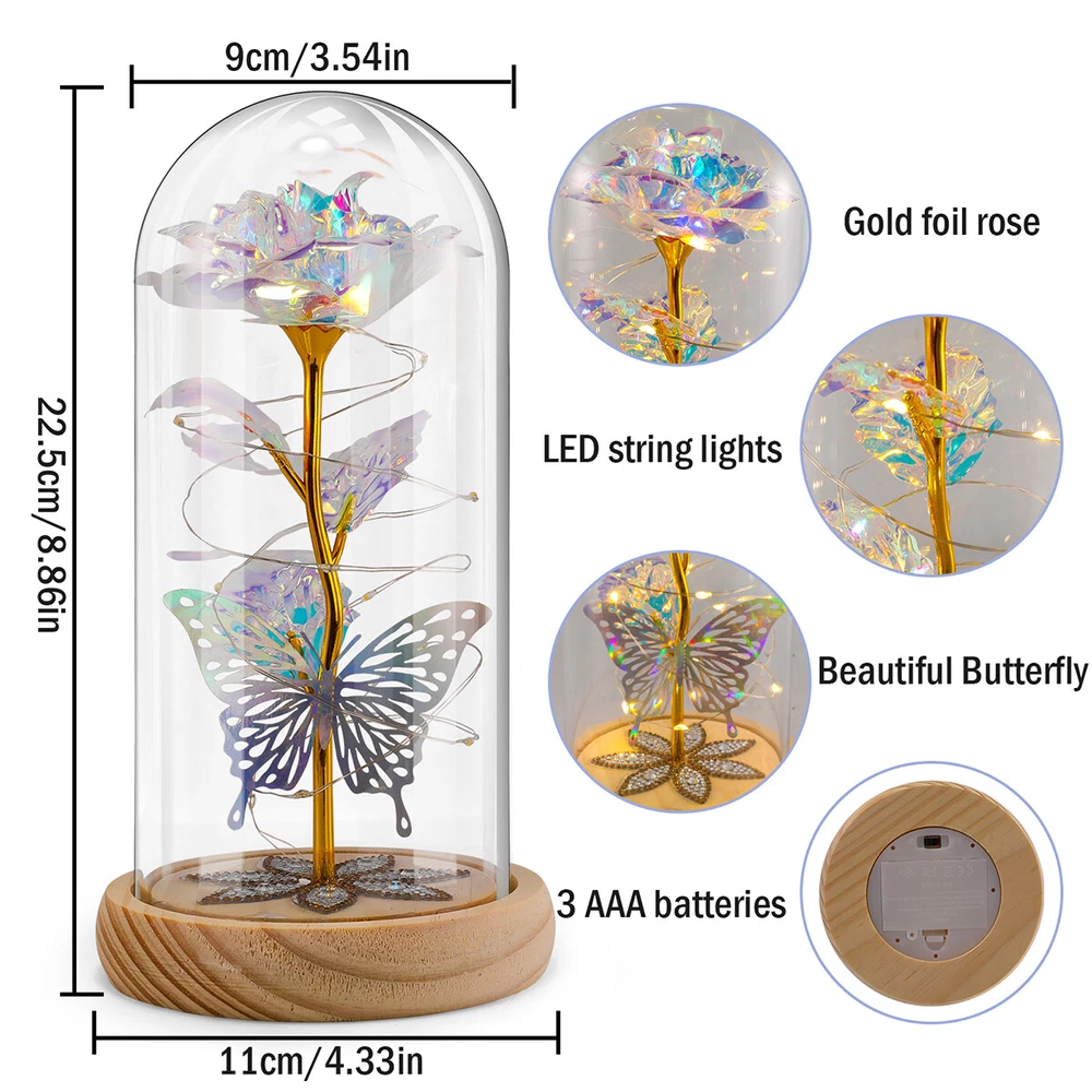 Gifts for Wife Women Wife Gifts for Her Christmas Girlfriend Gifts Birthday Gift 🌹Red Rose Whisper🌹 -- Love, Passion, Beautiful love. 🌹Golden Rose Whisper🌹-- Noble, Beautiful, Apologetic. 🌹Red and Golden Rose Whisper🌹-- Happiness. 🌹Blue Rose Whisper🌹-- Miracles, Pure, impossible. 🌹Purple Rose Whisper🌹-- Deep Love, Mysterious and Noble. 🎁 Valentines Day Gifts For Her, Mom Gifts, gifts for grandma,valentines rose in Glass Dome perfectly and eternally, crystal clear Glass Dome. Colorful artificial flower rose gifts will never wither and die. The blue Rose Flower Gifts is perfect and impeccable,represent love,colorful roses stand for love and warm. Rose flower is as full of infinite hope and beauty. And it will bring her infinite love and beauty. Rose gifts for her. 🎁 Perfect Valentines day gifts for woman who has everything,cute women gifts. Women Gifts For Moms which are Awesome and Totally Thoughtful. Glass dome rose also would look amazing her gifts in your living room or bedroom. Unique rose flower gift for women,girlfriend,wife,mom,grandma,mother-in-law and stepmom,etc. Birthday presents for women. Mom valentines day gifts. 🎁 Light Up Rose Mom Gifts For Womens. Valentines day gifts for mom from daughter. Valentines day gifts for sister,Valentines day gifts for her. Crystal artificial Rose in a glass dome is wrapped around an LED Strip light,Powered by 3 x AAA batteries(include). Led strip light bright warm white lighting. The beautiful rose flower gift can use in daytime and nighttime for home room or create romantic atmosphere,Valentines glass rose is symbol of appreciation,best wishes,love and romantics. #12618-12619-12620-12621 Pink/Purple/Blue/Red LED Rose Flower+Glass Dome: -- Rose Flower: Made of high-quality plastic, which makes the rose and petals look very real, and also covered with a transparent dome, which can protect the rose flower and enjoy the beauty of the rose in 360°. -- Romantic Symbol: This is a beautiful LED light rose, which means enthusiasm and romance, not only eternal love, but also a symbol of good wishes. -- LED Roses: Roses wrapped around the LED light strip, powered by batteries, can be used for home decoration or create a romantic atmosphere during the day and night. -- Wide Application: Not only can be used as a living room or bedroom decoration, but also can be used as a gift for relatives or friends, very suitable for home decoration, holiday gifts, etc. Specification: Light color: warm white Material: plastic Lighting mode: always on Uses: suitable for home decoration, holiday gifts, etc. Battery Type: 1.5V*AAA battery (NOT Included) Product size: 20.5 (height) *11 (bottom diameter) *9cm/8.07*4.3*3.5inch Package includes: 1xRose Flower Lamp 1x Packing Box #12449 Colorful LED Rose Flower+Kiss Doll: -- Rose Flower: This colorful foil gold rose flower is made of high-quality plastic with a stable and smooth surface, the roses and petals displayed look very real, and it is also covered with a transparent dome that protects the rose flower and makes it timeless. -- LED Rose: The rose is wrapped around the colorful LED light strip, powered by 3 AAA batteries (included). When turned on at night, it will light up with colorful constant lights, creating a romantic atmosphere for your home and bedroom at night. -- Romantic Symbol: The built-in kissing toy for little boys and girls is very cute. The rose will bring you infinite love and beauty. It not only symbolizes eternal love, but also a symbol of good wishes. -- Wide Application: Not only can be used as a decoration in the living room or bedroom, but also as a gift for relatives or lovers, very suitable for home decoration, holiday gifts, etc. Specification: Flower color: colorful Light color: multicolor Material: plastic Lighting mode: always on Battery type: 1.5V*AAA battery (NOT Included) Usage: Suitable for home decoration, holiday gifts, etc. Product size: 21.5 (height)*11 (bottom diameter)*9 (thickness) cm/8.46*4.3*3.5inch Package includes: 1x Rose Flower Night Light 1x Packing Box #12450 Red LED Rose Flower+Kiss Doll: -- Rose Flower: This colorful foil gold rose flower is made of high-quality plastic with a stable and smooth surface, the roses and petals displayed look very real, and it is also covered with a transparent dome that protects the rose flower and makes it timeless. -- LED Rose: The rose is wrapped around the colorful LED light strip, powered by 3 AAA batteries (Included ). When turned on at night, it will light up with colorful constant lights, creating a romantic atmosphere for your home and bedroom at night. -- Romantic Symbol: The built-in kissing toy for little boys and girls is very cute. The rose will bring you infinite love and beauty. It not only symbolizes eternal love, but also a symbol of good wishes. -- Wide Application: Not only can be used as a decoration in the living room or bedroom, but also as a gift for relatives or lovers, very suitable for home decoration, holiday gifts, etc. Specification: Flower color: red Light color: multicolor Material: plastic Lighting mode: always on Battery type: 1.5V*AAA battery (NOT Included ) Usage: Suitable for home decoration, holiday gifts, etc. Product size: 21.5 (height)*11 (bottom diameter)*9 (thickness) cm/8.46*4.3*3.5inch Package includes: 1*Rose Flower Night Light 1*Packing Box #12451 Colorful LED Rose Flower+Glass Dome: -- Rose Flower: This colorful foil gold rose flower is made of high-quality plastic with a stable and smooth surface, the roses and petals displayed look very real, and it is also covered with a transparent dome that protects the rose flower and makes it timeless. -- LED Rose: The rose is wrapped around the colorful LED light strip, powered by 3 AAA batteries (Included ). When turned on at night, it will light up with colorful constant lights, creating a romantic atmosphere for your home and bedroom at night. -- Romantic Symbol: The rose will bring you infinite love and beau