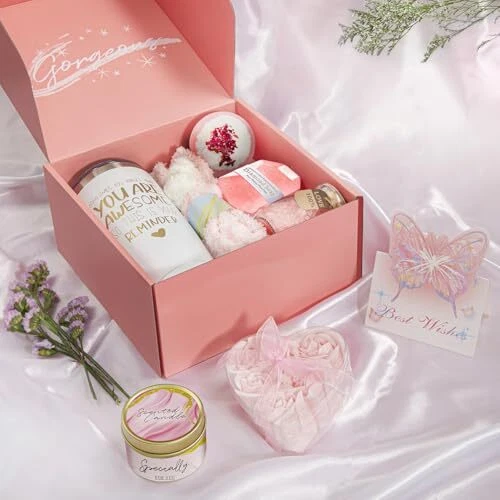 Return Policy Fast Delivery Trusted seller Gifts for Women, Birthday Gifts for Women, Happy Birthday Gifts Basket for Women, Rose Relaxing Spa Gifts Basket for Best Friends Female Women Sister Mom Wife Her Girlfriend Coworker Bestie Hanukkah Product Description ?UNIQUE BIRTHDAY GIFTS BOXES FOR YOUNG WOMEN: Happy birthday gift basket is specially designed and curated with thought & care to warm and spoil the special ladies female in your life. This unique gift box is filled with love, care and wishes, is sure to surprise her, women, bestie, BFF, wife, best friends, sister, boss, coworker and brighten her day! Perfect gift ideas as 21st birthday gifts, 30th birthday gifts, 40th birthday gifts and 50th birthday gifts, 60th birthday gifts for women female, white elephant gifts for adults, Hanukkah gifts for women. ?PRACTICAL 9PCS BEST FRIEND GIFTS FOR WOMEN: SOPUATSRE happy birthday gifts basket is a perfect & meaningful friendship gifts for best friends, mom, daughter, girlfriend, coworkers, teacher, nurse, etc to make her feel loved and pampered. The relaxing spa gifts for women contains all heart-warming designed thoughtful gifts, including 20oz insulated tumbler, 3.5oz rose scented candle, soft fuzzy socks, bath salt, handmade soap, rose bath bomb, butterfly greeting card and elegant gift box. ?20 OZ INSULATED VACUUM TUMBLER: We over-engineered this double-wall insulated tumbler with an 18/8 food-grade sturdy stainless steel body, with drink lid can preserve beverage TEMP up to 24h for cold & 12h for hot, great for iced coffee, water, beer, or favorite drink. This rambler is BPA-free, dishwasher safe. "YOU ARE AWESOME", positive quote printing brings her smile & happy mood every day, express your love and care, making it an ideal birthday gifts for her stress relief gifts for women. ?RELAXING STREE RELIEF GIFTS: The 3.5oz rose scented candle, made of pure plant essential oil & 100% natural soy blend wax, non-toxic, will make her feel soothing and is great for sleep-promoting, can burn smokelessly & evenly for up to 20 hours. Comes with a diamond handmade soap, a rose bath salt, a rose bath bomb, all release fresh & long-lasting rose fragrance, will bring her a luxurious & sublime bubble bath while enjoying her beverage, help soothe her mind and relax. ?GIFTS FOR WOMEN: Surprise her with the thoughtful gifts, she will definitely love this romantic & beauty birthday gifts set, it's got everything a woman could want. Such a heart-warming unique birthday gifts for women friendship! Send this unique spa birthday gifts for her to let her enjoy a fantastic birthday and convey your blessings & love! Perfect for any occasions on her Birthday, Mother's Day, Anniversary Day, Valentines Day, Thanksgiving, Retirement, New Year or Christmas gifts for her. It's the luxury gifts for women in your life. Shipping Returns Payment Shipping Shipping is FREE to all addresses other than APO/PO boxes in the lower 48 states. All our stock ships from US-based warehouses. Shipped via USPS or UPS (depending on location and package weight) Unless stated otherwise, all orders will ship within 24-72 hours of your payment being processed. Check our feedback to see the great reviews of FAST shipping we offer. Returns Seller does not accept returns Payment We currently accept payment via eBay managed payments only. Once payment is cleared, we will dispatch your shipment within 1-3 business days. Please refer to the "Shipping" tab for more information regarding shipping speed to your destination.