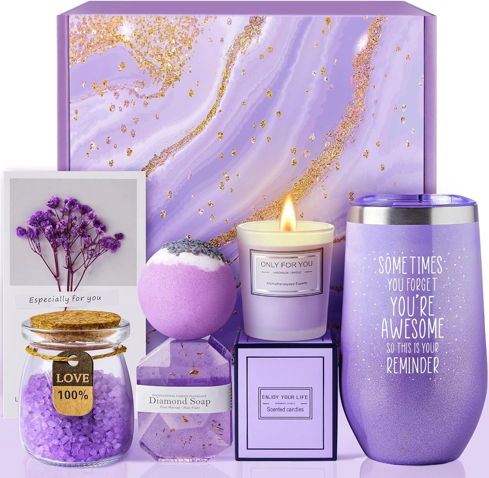 Store New Arrivals Add to Favorite View Feedback Contact Fast deliveries to the customer's home Quality customer service John Make the customers happy! Gifts for Women, Mom, Wife, Girlfriend, Sister, Her - Happy Birthday, Christmas, Valentine'S Day, Mothers Day Gifts - Lavender Spa Gift Basket Set Description Elegant Gifts for Women for Any Occasion - LE CADEAU presents the Lavender Gift Basket for Women, a carefully curated collection of relaxation and tranquility, perfect gifts for birthdays, Christmas, Mother's Day, Valentine's Day, and anniversaries. A perfect curation of lavender-inspired goodies symbolizing care and thoughtfulness, ensuring unforgettable moments for the women you love. Relaxing Gifts for Her - The 6-piece Sister Gift Basket is a practical and thoughtful choice, featuring a 20oz wine tumbler, stainless steel straw, scented candle, bath salt, bath bomb, soap, and a heartfelt greeting card with dry flowers. Indulge her senses with this elegant lavender-themed gift set, designed to bring relaxation, tranquility, and happiness to her day. Personalized Gifts for Women Who Have Everything - Stand out with this lavender care package that adds a touch of elegance, diverging from traditional pink-themed gift boxes. A surefire way to make her smile on her birthday! The quote "YOU ARE AWESOME" on the wine tumbler adds a personal touch, making it a perfect gift for best friends, sisters, moms, daughters, coworkers, or girlfriends. Perfect Christmas Surprise - the beautifully crafted gift set perfect for birthdays, Christmas, Mother's Day, Valentine's Day, and anniversaries. The gift includes a lovely purple lavender greeting card, allowing you to customize your heartfelt message for the recipient, Express your love and appreciation to the important women in your life - whether it's your best friend, sister, mom, wife, nurse, teacher, coworker, or boss female. Product Description LE CADEAU Lavender Gift Basket for Women - Relaxation, Tranquility, and Joy | Perfect Birthday & Christmas Gifts for Her Elegant Purple Lavender Theme: Stand out with this lavender care package that adds a touch of elegance, diverging from traditional pink-themed gift boxes Stress Relief and Self-Care Pamper her with a 20oz insulated stainless steel tumbler, lavender-scented candle, handmade soap bars, a luxurious bath bomb and bath salt - all aimed at providing a relaxing spa-like experience. Relaxation and Tranquility Indulge her senses with this elegant lavender-themed gift set, designed to bring relaxation, tranquility, and happiness to her day. Thoughtful and Unique Gift A perfect curation of lavender-inspired goodies symbolizing care and thoughtfulness, making it an ideal gift for the special women in your life. Versatile Occasion Gifting Express your care and affection on various occasions including Christmas, birthdays, Mother's Day, Valentine's Day, and more. Also suitable for get well soon wishes, post-surgery recovery, and thinking of you gestures. Perfect gifts for best friend, sister, girlfriend, wife, mom, or daughter... Target Use Body Part Whole Body Color Lavender Item Form Tablet Material Features durable, rust-resistant, maintains temperature Product Benefits Provides relaxation, stress relief, and spa-like self-care experience Item Weight 20 Ounces Container Type Bottle Special Ingredients Lavender Scent Name Lavender Skin Type All Scent Lavender ABOUT US We offer the best prices around on high quality products. Our E-store includes media such as books, movies, music and games while offering electronics, toys, sporting apparel, clothing, tools, general home, garden items and more. SHIPPING We are always working hard to ensure your package arrives as soon as possible. Please understand that some factors like weather, high postal traffic, and the performance of shipping companies are outside of our control. We offer free shipping to the lower 48 states and ship within 2 business days of payment, usually sooner. We do not accept P.O. Boxes. Please provide a physical address. For shipping outside of the continental USA, we only use eBay's Global Shipping Program. The item is shipped to KY and then sent to the rest of the world. International customers are responsible for all duties and taxes. Continue to 'check out' to calculate costs for shipping the item to your country. Messages regarding eBay's Global Shipping Program MUST be directed at eBay EXCLUSIVELY. RETURNS We offer a 30-Day Return Policy on items in which you are not completely satisfied with. You have the option of a full-refund or an exchange of the item. No returns are available on items shipped outside of the USA PAYMENT We accept PayPal. CONTACT US This page content is yet to come Please ad us to your favorite seller and visit again later Thank You CUSTOMER SATISFACTION We try our very best to make sure every customer is completely satisfied. If there's a problem, message us! We're happy to help. WE ACCEPT