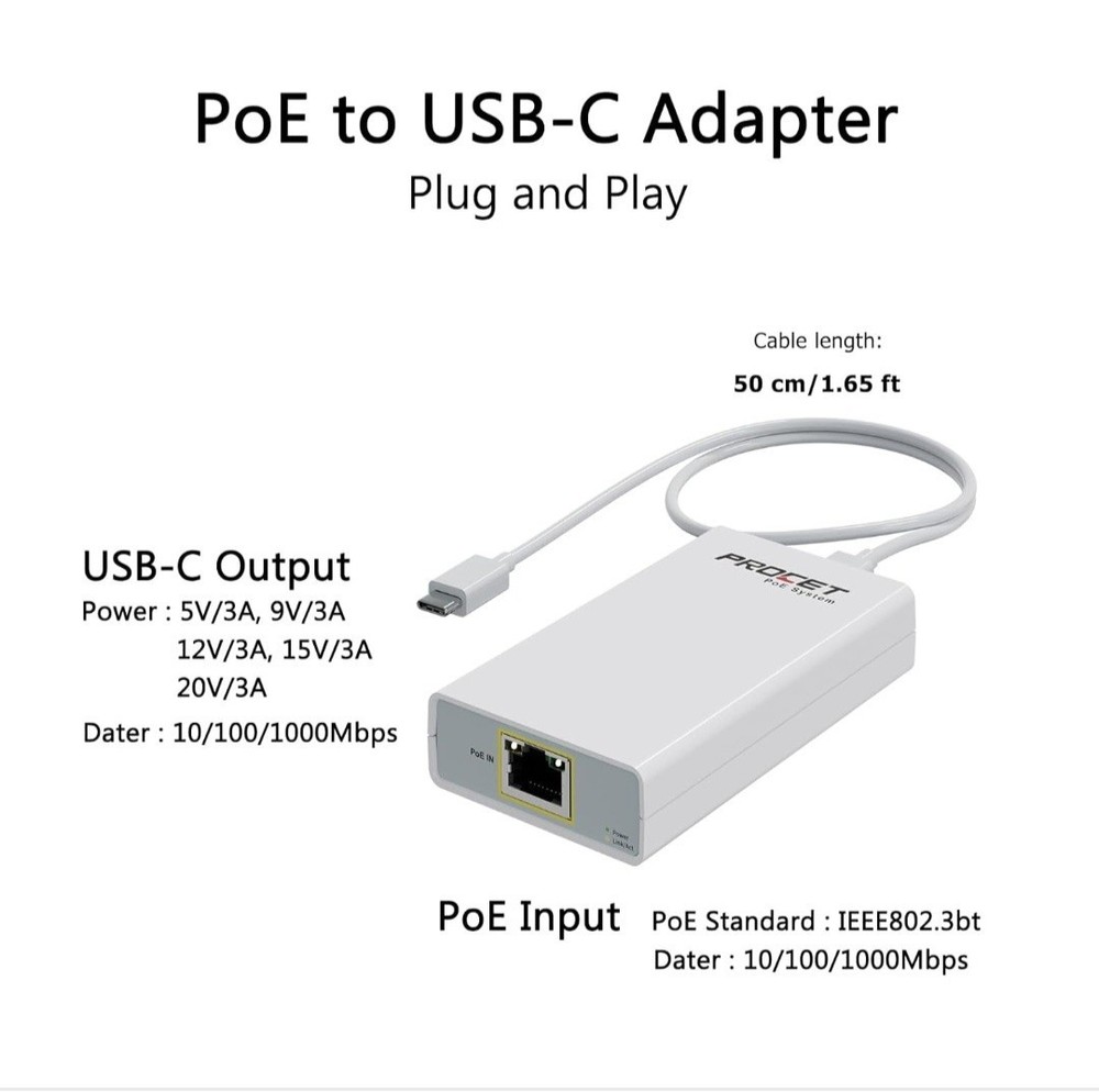 Brand new in the box. We are including a "copy and paste" below of the details/specifications from their listing from this specific item. Please note we found this information online. We are selling this item on consignment, which means we only have one on hand, and no other colors are available. We are not a licensed reseller or warehouse. ----------------------------------------------- 【PoE to USB-C】Convert IEEE802.3bt standard PoE to USB-C output that deliver 5V/3A, 9V/3A, 12V/3A, 15V/3A, and 20V/3A power and Ethernet data. one adapter save problem of power supply and Internet access. Note: Only internet access but no charging when connection non-PoE ethernet. 【Plug and Play】Smart Plug and Play design, avoid complex configuration operation. simply connect the device and work immediately. Supports up to 1000Mbps Ethernet, which can provide ultra-fast Internet network speed. 【Multiple Device Support】Support Windows, Android, iOS and other system. Suitable for Smart phone, Tablet, and other devices. 【Gigabit Ethernet Network】Supports fast Internet transmission of up to 1000Mbps Ethernet LAN wired network. No longer buffer and disconnect like WiFi or LTE. You can connect the network cable to your iPhone/iPad for wired network access, providing ultra-high-speed Internet access speed, allowing you to watch videos, play games or live broadcast connections more smoothly and get a smoother Internet experience. 【Best Service】This poe to lightning adapter is small and portable. Generally, you can carry it with you when you are on a business trip or at work without taking up too much space.