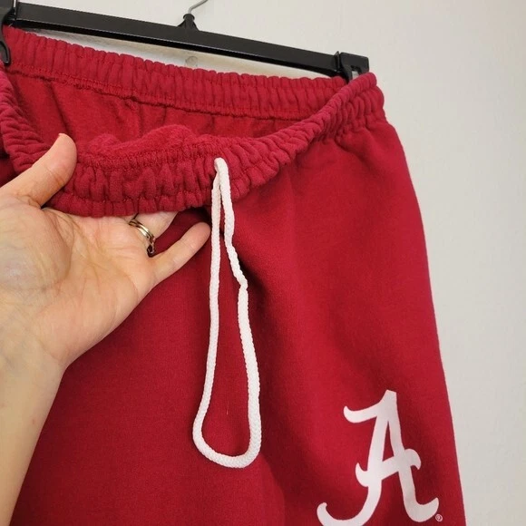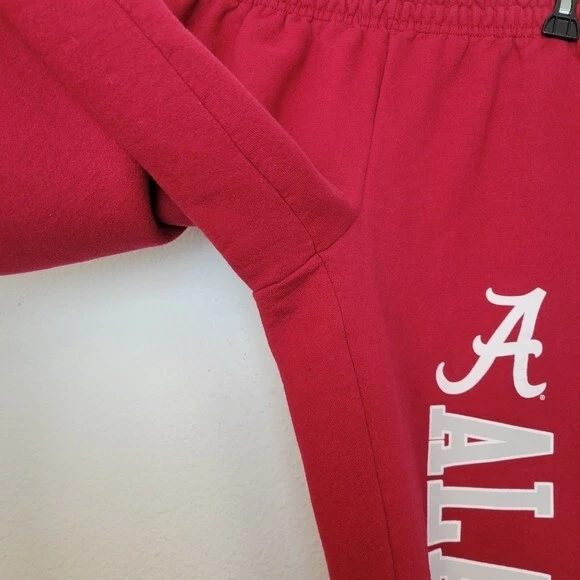 Gildan Dryblend Men's Sz M University Of Alabama Red Heavy Sweatpants Pockets. Ships With USPS Ground Advantage Mail -Heavy fleece lined Gildan sweatpants featuring the University Of Alabama Crimson Tide -Size Medium -Pull on styling, elastic waistband with adjustable inner drawstring -Side pockets -Warm fleece lining -Straight leg with logo graphic on the left leg -Dryblend material is made with a mix of preshrunk 50% Cotton 50% Polyester, holding up well after multiple washes -Measurements are approximately 13 in across with stretch 10.5 in rise 38 in long 31 in inseam -Preloved in great condition! -------------------------------------- Thanks for looking, feel free to reach out with any questions! I offer FAST shipping when payment is received. Have a a GREAT DAY! mandajane223