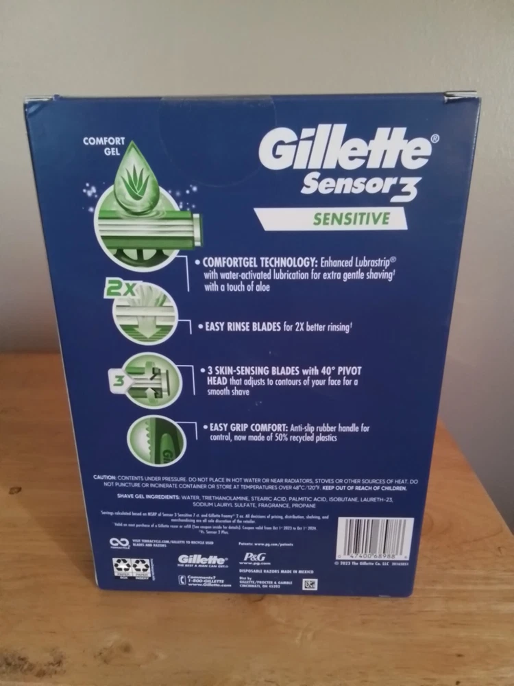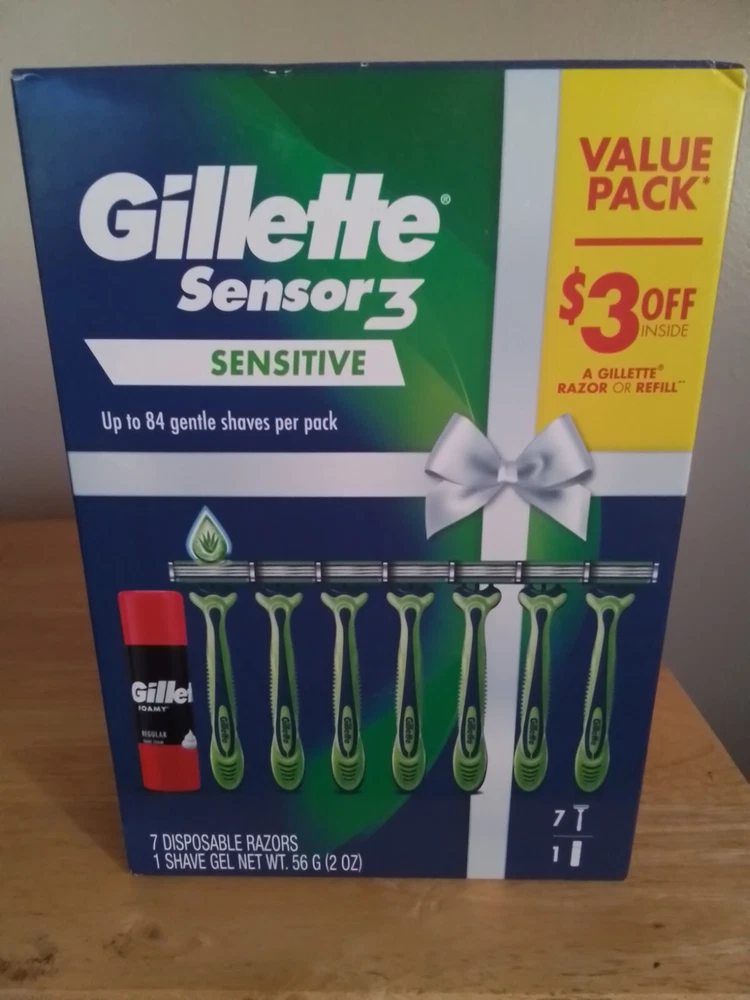 Gilette Sensor 3 Sensitive Gift Pack 7 Disposable 3 Blade Razors & Shave Foam