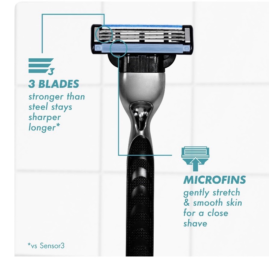 Gillette Mach 3 Men’s Razor Blade Refill Cartridges, 4 Count. Our Gillette Mach3 razor blades give you the reliable Gillette shave with comfort and precision. Each razor blade refill is engineered to last up to 15 comfortable shaves, so you can get the most of every shave. The Gillette Mach3 razors for men have stronger-than-steel blades stay sharper longer (vs. Sensor3). Along with durability, these Gillette razors feature a lubrication strip that glides to help protect your skin from redness, while soft microfins gently stretch and smooth skin, preparing hairs to be cut for the optimal shaving experience. A Lubrastrip is a thin strip that sits at the top of the razor, releasing lubricants while you shave, to produce a great glide. When you are no longer getting an optimal shave, the Lubrastrip fades to white, indicating that it might be time to change the blade. Mach3 features three DuraComfort blades and an Open Blade Architecture for easy rinsing to keep your razor clean and performing its best. Not sure if these blades will fit your existing handle? All Gillette Mach3 razor blades fit all Mach3 razor handles. For best results, use with your favorite Gillette shave gel, cream or foam.