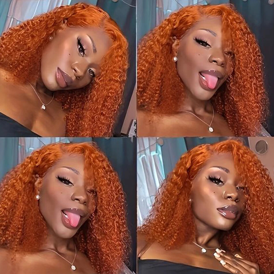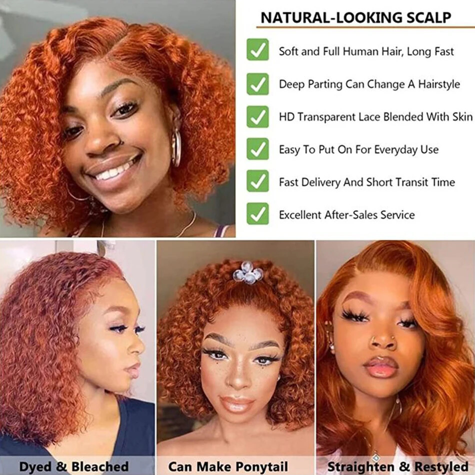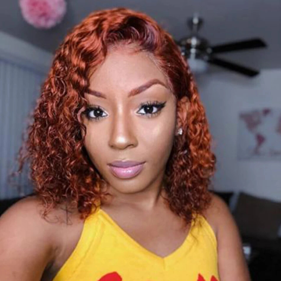 Ginger Orange 13x4 Glueless Curly Bob Brazilian Human Hair Wig Pre Plucked Lace Front
