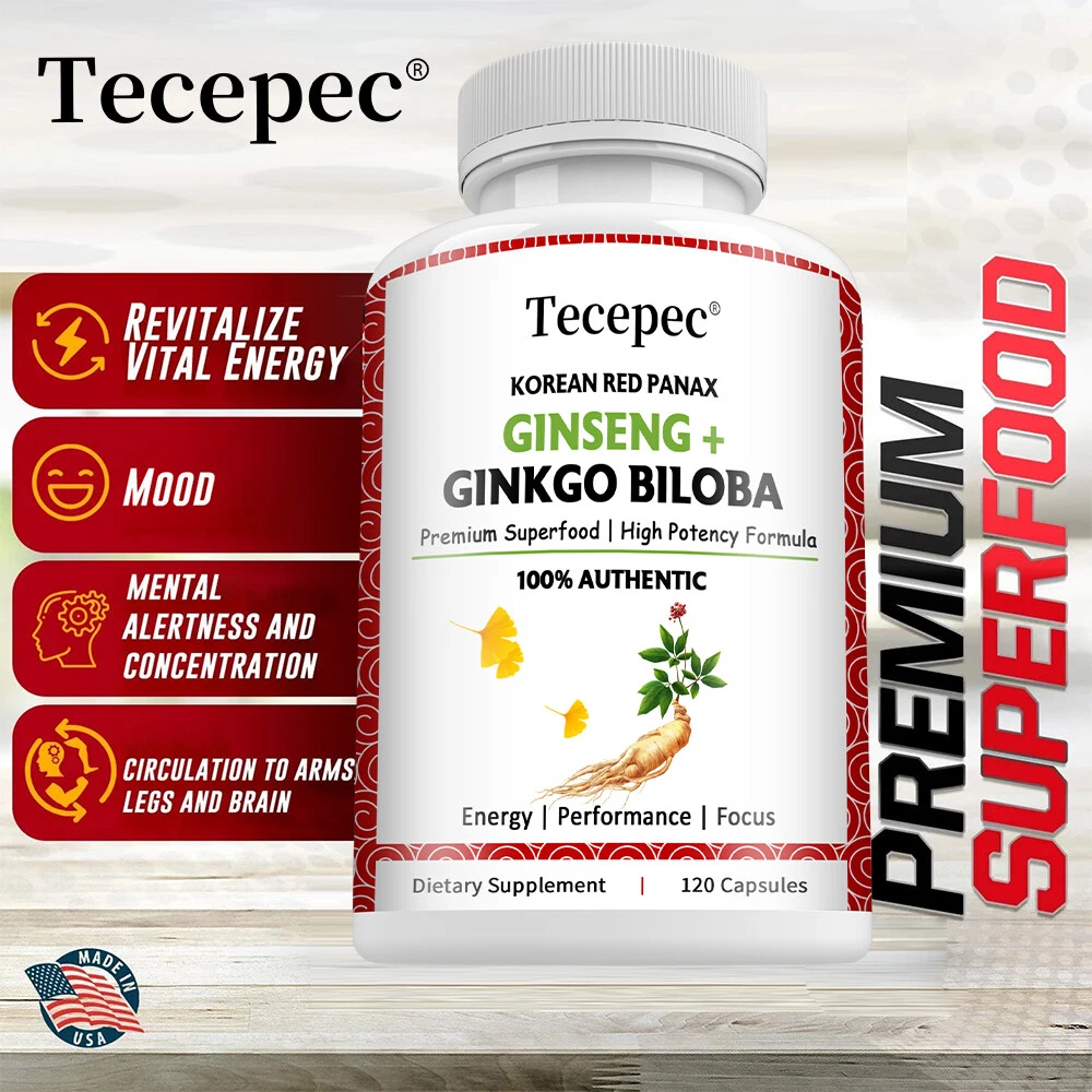 Expiration Date: 10/2026 Features: All Natural, Dairy-Free, Easy to Swallow, Organic Ingredients: Ginkgo (Ginkgo biloba), Red Panax Ginseng Brand: Tecepec Production Date: 10/2024 Flavor: Unflavored Shelf Life: 2 years Department: Unisex Country/Region of Manufacture: Unknown Type: Supplement Type of Diet: Vegan Supply: 1 Month and Longer Number of Pills: 120 Active Ingredients: Ginkgo (Ginkgo biloba), Red Panax Ginseng Formulation: Capsule Item Weight: 1.45/2.09/3.6oz Dosage: 1200mg Main Purpose: Energy Support, Mental Focus