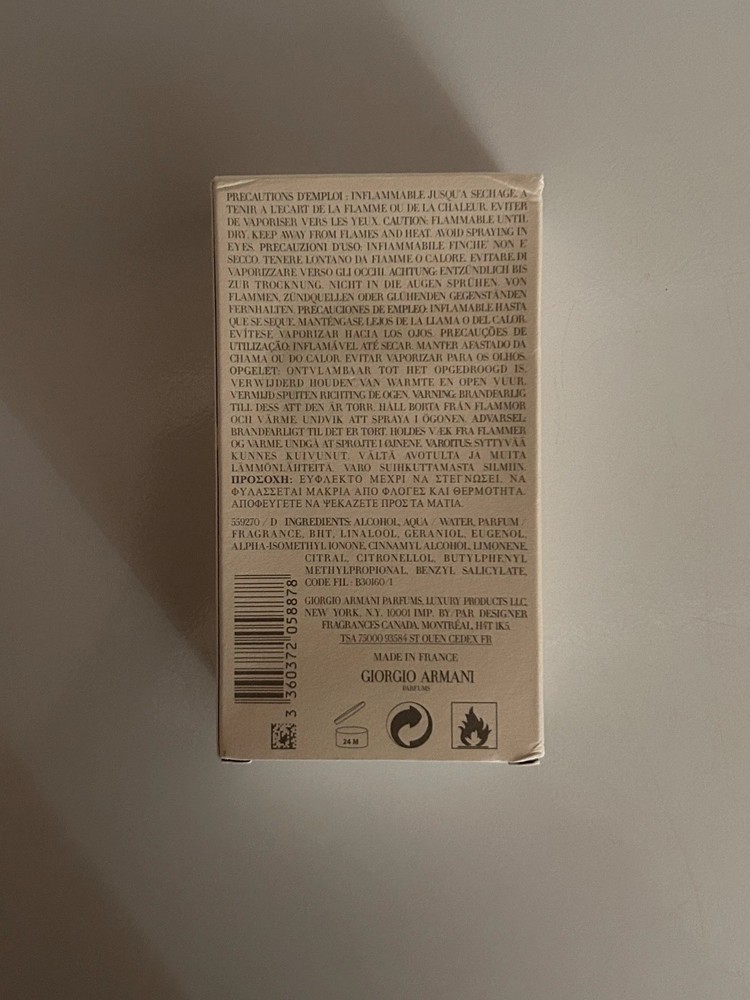 Country of Origin:FranceFormulation:SprayFragrance Name:Acqua Di GioBrand:Giorgio ArmaniVolume:3.4 fl ozType:Eau de ToiletteMPN:GA205887Features:Long LastingScent:CitrusSize Type:Regular Size