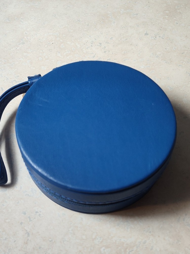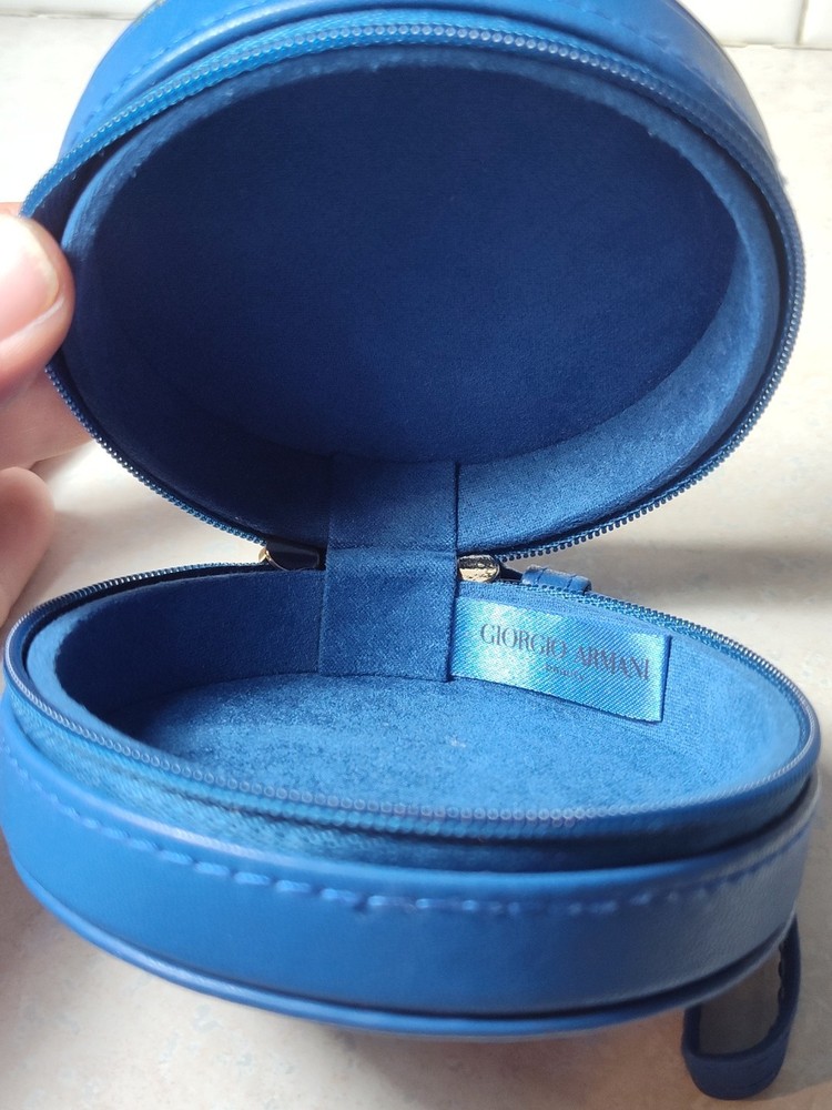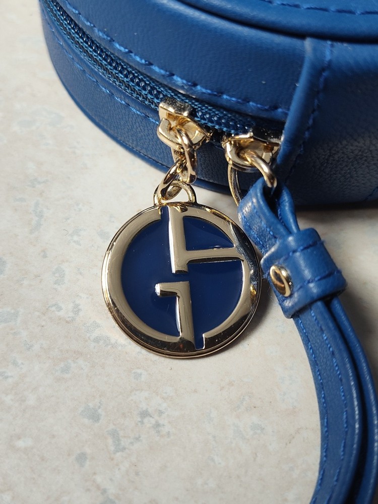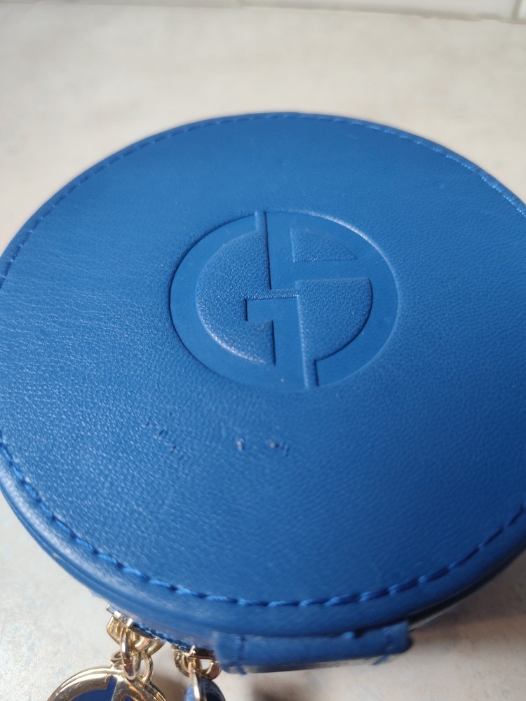 Giorgio Armani Beauty Bag small makeup hard purse pouch blue faux leather fob.