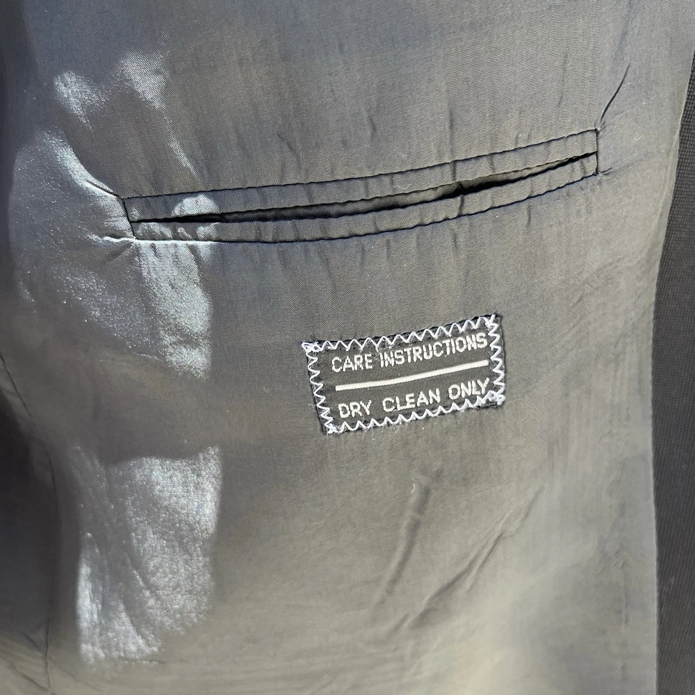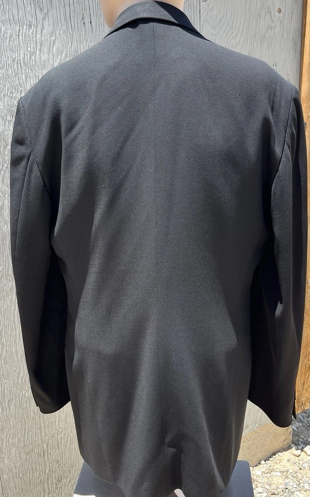 Garment Care: Dry Clean Only Size: 44 Pattern: Solid Type: Blazer Season: Winter, Summer, Spring, Fall Chest Size: 44 Color: Black Material: Wool Fit: Regular Size Type: Regular Occasion: Formal Brand: Giorgio Armani Country/Region of Manufacture: Italy Style: Tuxedo Department: Men