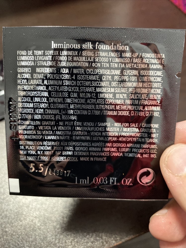 Giorgio Armani Luminous Silk Foundation Sample 0.03 Fl Oz 1 mL 5.5 Lot Of 5.