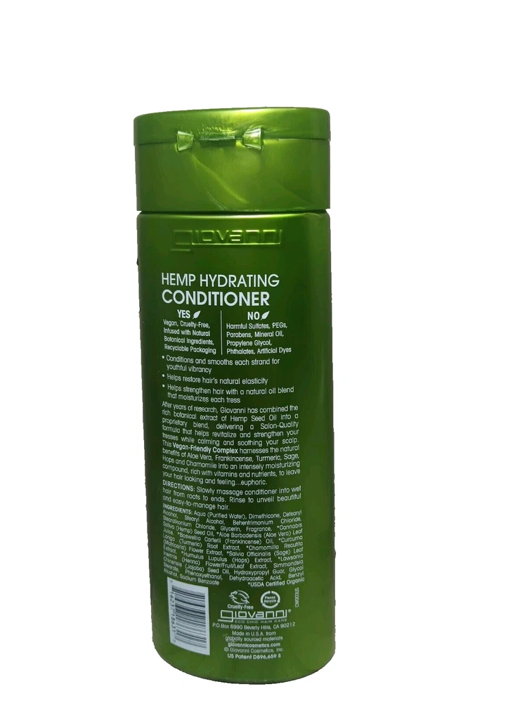 Giovanni Hemp Hydrating Conditioner Vegan-Cruelty Free-Color Safe-Salon Quality Natural and botanical ingredients USDA Certified Organic Free Same Day Shipping! #(951)