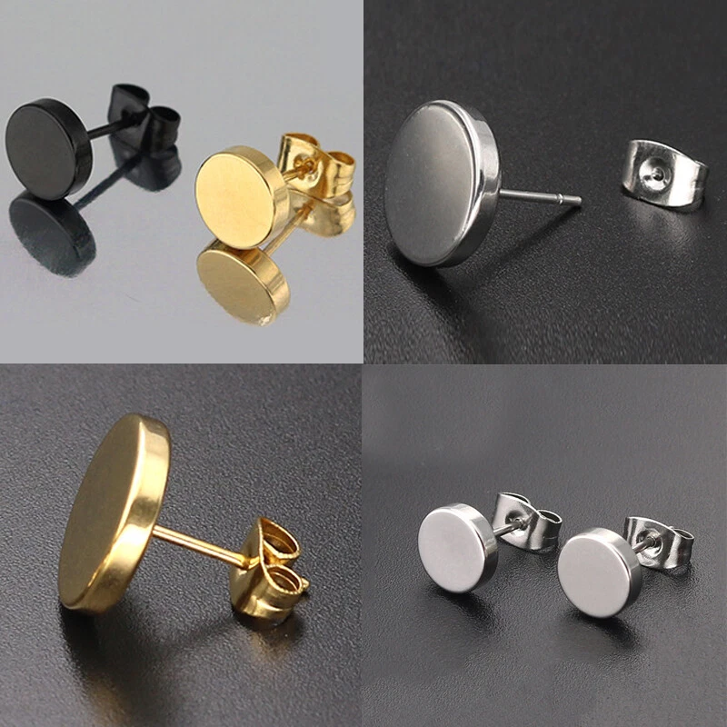 Girl Fashion Punk Round T itanium Stainless Steel Gold Stud Earrings Hot Jewelry Description 100% Brand New and High Quality. Material:Alloy Pattern: Round Color: Black, Gold, Silver, Rose Gold Size: 4,5,6,8,10,12mm Style:Vintage Occasion: Party,Wedding,Birthday,Anniversary,Engagement,Christmas Package Content:1 piece, not 1 pair Note: 1.Please allow1-3 cm differences due to manual measurement, thanks. 2.Please understand because of the light irradiation or computer display difference, so Ican't guarantee photos and real color is 100% the same.