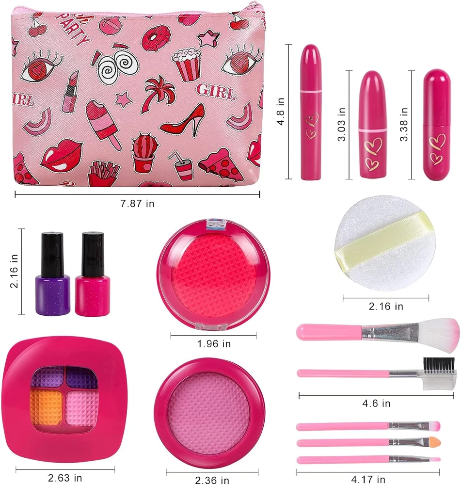 Store New Arrivals Add to Favorite View Feedback Contact Girl Gifts Pretend Play Makeup Toys Beauty Set for Toddler Little Girls Age 3 4 5 6-8 Kids Your Princess Niece Granddaughter Birthday Valentine'S Day Christmas (Fake Cosmetic 15Pcs Kits) Description Item model number RGMZ-1 Product Dimensions 8 x 5 x 1.18 inches Country of Origin China Item Weight 7 ounces Manufacturer recommended age 3 years and up Department Girls Manufacturer RONGGE đŠđ§đ§ăPretend Make Up Looks Like MomâsăPretend makeup kit looks like real makeup cases but filled with colorful EVA foam, which comes with lipstick, lip gloss, blusher, eyeshadow, powder, makeup brushes. Without applying to skin, this toy makeup is perfect for baby girls who wants to be just like mom. Save Moms Expensive Cosmetics and Unleash Kidsâ Creativity. â¤ď¸ăđŻSafe Quality Bring More FunđŻăASTM and CPC certificated Toddlers Makeup Kit. Non-toxic material with eco-friendly foam cosmetic toys with rounded edges to avoid injury and ensure children safe play and no mess to clean up, also donât worry about toddlerâs sensitive skin. đăLearn by imitating and pretendingăGirls love to imitate their moms apply makeup. RONGGE play makeup set for toddlers is designed to inspire imaginary and creative play, allowing your little girls enjoy to âput makeupâ on herself, her dolls or other people. đď¸ăPackage IncludeăThe RONGGE pretend make up toys kits includes 15 total pieces: cosmetic bag with zipper, quad compartment bright eye shadow, bronzer and blush combo, lip gloss, eye catching foundation with mirror, makeup brush set, lipstick, and nail polishes. đăBest Gifts for GirlsăOur fake makeup set is not a real cosmetic that there is a colored soft foam made of kid-safe foam and plastic instead of an actual. The kids make up sets is designed for 3 4 5, 6-8 year old toddler girls. Good choice for birthday, festival and Christmas as a gift for little girl. Let the imagination run wild and enjoy hours of play with a complete pretend make up set, designed especially for your little princess! Product Description RONGGE Girl Toys Makeup Kit for Your Little Princess to Pretend Play to Apply Makeup Children will imitate the behavior of adults. Children see their mothers doing makeup every day. They will pretend that they are also making up, but real cosmetics will damage the skin. You will like our makeup set toy because kids toy makeup have real makeup feelings and are safe. Made of non-toxic materials, it gives you and your children a more secure experience. Why choice RONGGE pretend make up set? If your little girl is obsessed with make up but she was 2. If your little girl is trying to waer your expensive cosmetics and mess everywhere. If you are worry about comestic makeup was not apply to your little girlâs skin. If you are looking for some kind of play makeup kit for your little girl. RONGGE pretend makeup set for little girls will be your idea choice. Package Include The RONGGE pretend make up toys kits includes 15 total pieces: cosmetic bag with zipper, quad compartment bright eye shadow, bronzer and blush combo, lip gloss, eye catching foundation with mirror, makeup brush set, lipstick, and nail polishes. Safe Quality Bring More Fun ASTM and CPC certificated Toddlers Makeup Kit. Non-toxic material with foam cosmetic toys with rounded edges to avoid injury and ensure children safe play and no mess to clean up, also donât worry about toddlerâs sensitive skin. Learn by imitating and pretending Girls love to imitate their moms apply makeup. RONGGE play makeup set for toddlers is designed to inspire imaginary and creative play, allowing your little girls enjoy to âput makeupâ on herself, her dolls or other people. Best Gifts for Girls The kids make up sets is designed for 3 4 5, 6-8 year old toddler girls. Good choice for birthday, festival and Christmas as a gift for little girl. Let the imagination run wild and enjoy hours of play with a complete pretend make up set, designed especially for your little princess! Fake but looks like real With realistic shape and shade, kids play make up kit looks and feels just like real makeup, but it completely fake and mess-free. Meets Safety Standards for Childrenâs Use Encourages imagination and creative play via pretend play makeup set with safety material. Unleash Kidsâ Creativity Ideal for creative and imaginative play to aid in your child's healthy development. ABOUT US We offer the best prices around on high quality products. Our E-store includes media such as books, movies, music and games while offering electronics, toys, sporting apparel, clothing, tools, general home, garden items and more. SHIPPING We are always working hard to ensure your package arrives as soon as possible. Please understand that some factors like weather, high postal traffic, and the performance of shipping companies are outside of our control. We offer free shipping to the lower 48 states and ship within 2 business days of payment, usually sooner. We do not accept P.O. Boxes. Please provide a physical address. RETURNS We offer a 30-Day Return Policy on items which you are not completely satisfied with. You have the option for a full-refund or an exchange of the item. No returns are available on items shipped outside of the USA. PAYMENT We accept PayPal. CONTACT US This page content is yet to come Please ad us to your favorite seller and visit again later Thank You CUSTOMER SATISFACTION We try our very best to make sure every customer is completely satisfied. If there's a problem, message us! We're happy to help.