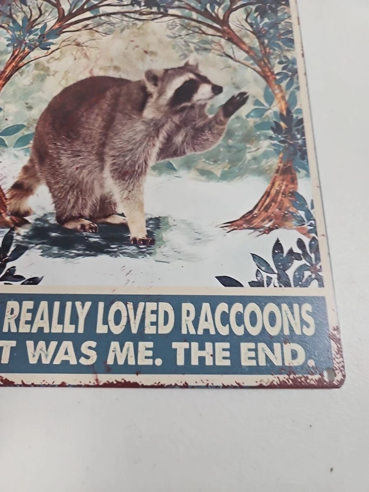 This metal sign is a perfect addition to any room, whether it's your office, garage, or any other room. The sign features a girl who loved raccoons, with a rustic and primitive style that will surely capture the attention of anyone who sees it. The sign is made of high-quality metal, which ensures its durability and longevity. The sign is easy to mount, and it can be hung on the wall or door. It measures 12 inches in height and 8 inches in width, making it the perfect size for any space. The sign is also decorative and indoor-friendly, which makes it a great gift for anyone who loves raccoons or wants to add a touch of rustic charm to their home.