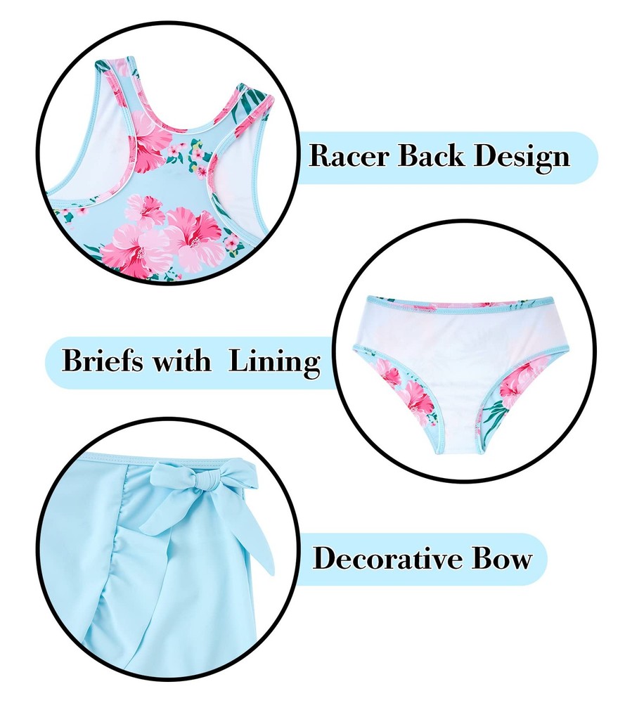 A unique three-piece swimsuit set - a racerback top, a cute bikini bottom, and a cover-up beach skirt. Material: 85% Polyester,15% Spandex, which is lightweight, skin-friendly, breathable bathing suit set. Racerback tank: sports style, which allowing your to exercise conveniently, giving your more room for growth. Cute cover skirt: sweet bow decoration, ruffle design, offering full coverage and comfort. Also you can used as daily wearing. Novelty 3D printing: The unique prints will make you to be the focus of the crowd. Occasions: vacation, beach, sports, swimming, surfing, exercise, outdoor activities, etc. Of course, you can also to wear it in daily life, school, home, party, etc. Sports Swimsuits: Racer back, Briefs, which better for beach or outdoor activities. Cover Up Tankini: The cover skirt which is more likely to provide moderate coverage. Ruffle design makes the swimsuit more lively and lovely. 3 Peice Bathing Suit Set: The three-piece swimsuit can be matched separately or together, the racer back and briefs, or three pieces together. It can also be matched in daily wear. Suitable for: vacation, beach, swimming, surfing, exercise, outdoor activities, daily wear, etc. Washing Tips: Recommended hand wash in cold water and hang dry in shade, NO bleach, No iron.