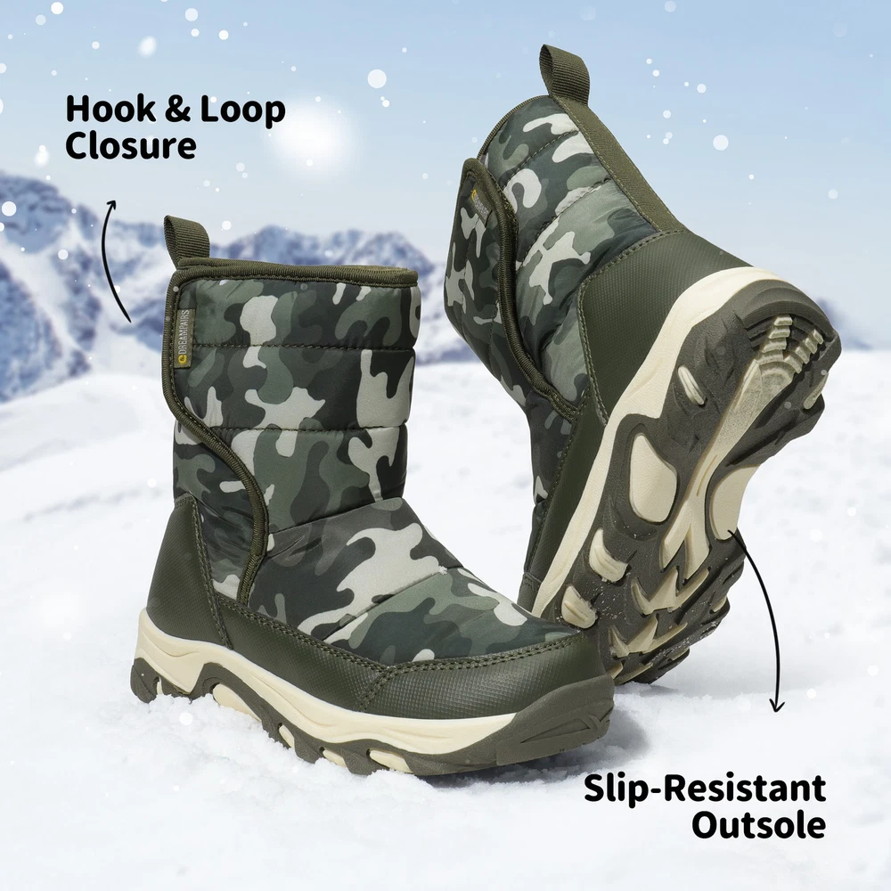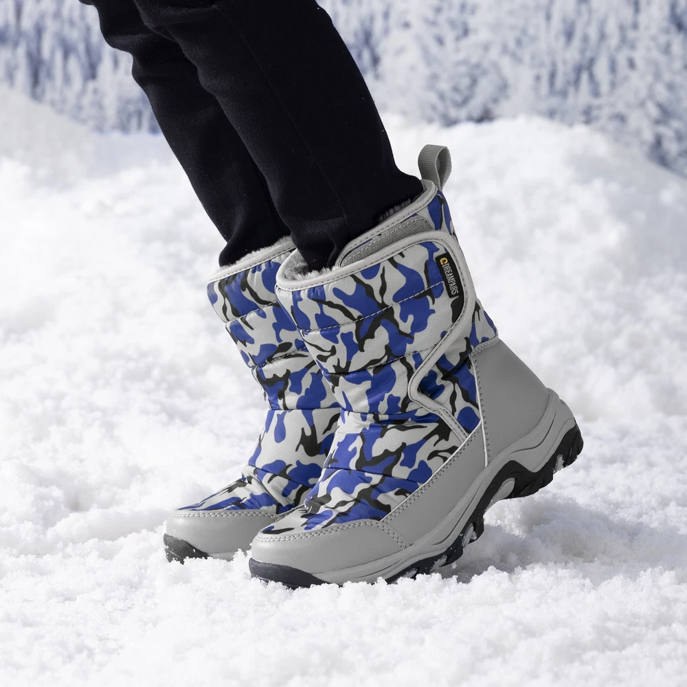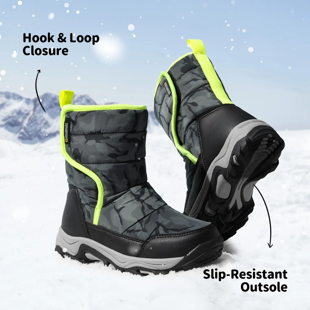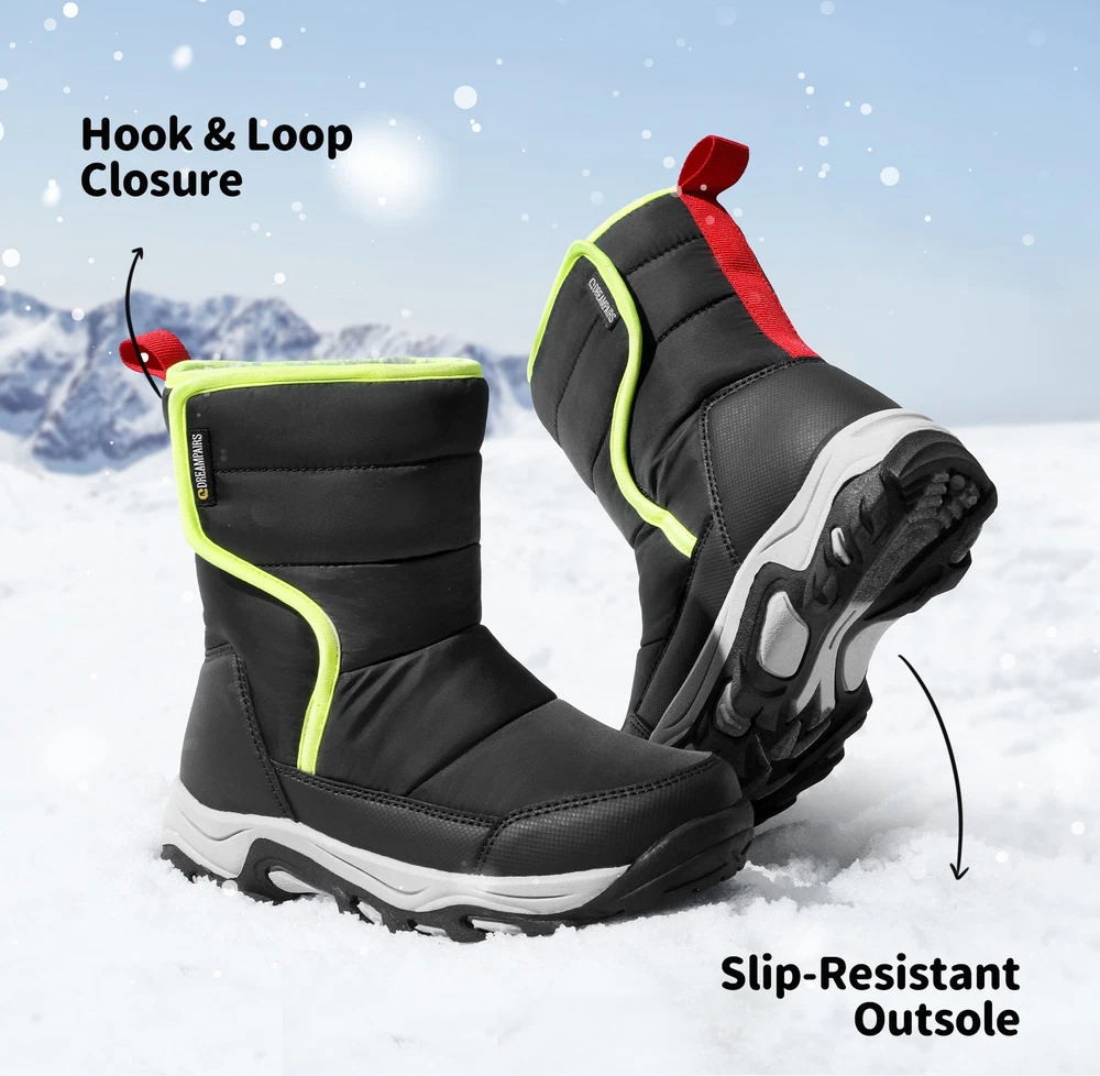 Girls Boys Snow Boots Winter Outdoor Mid Calf Fur Lined Warm Ski Snow Boots US
