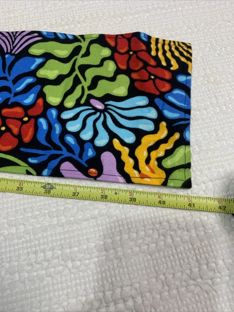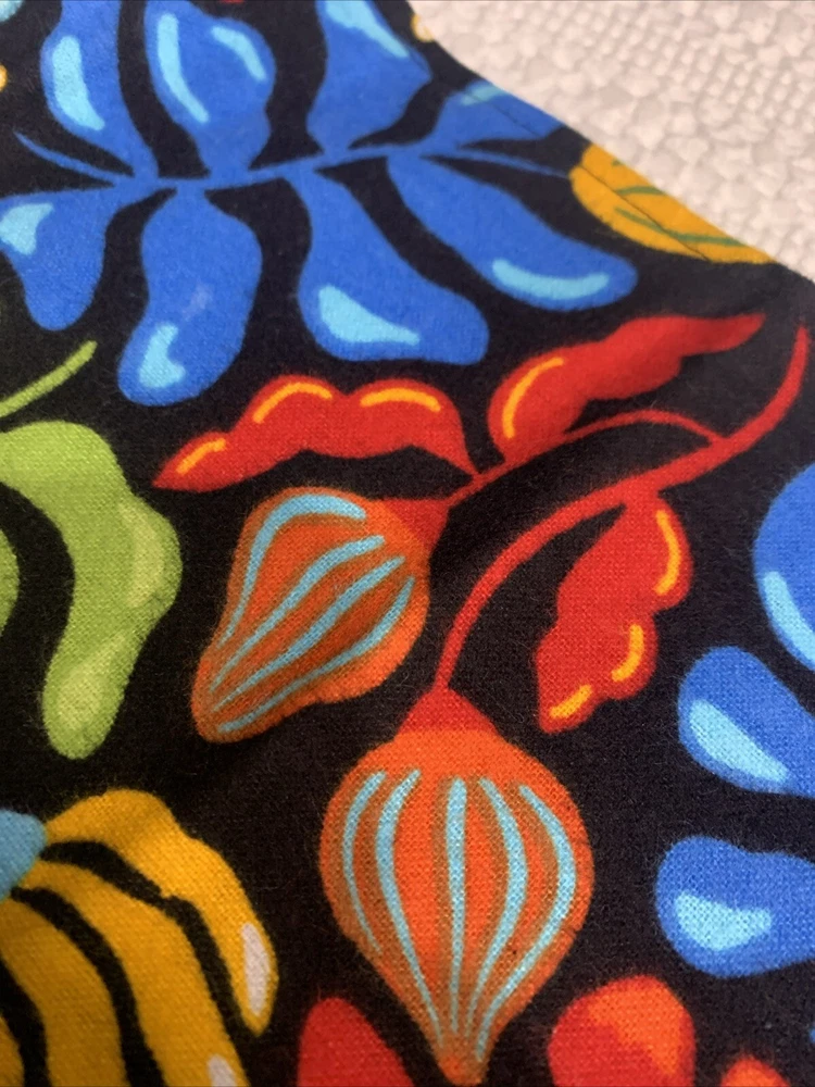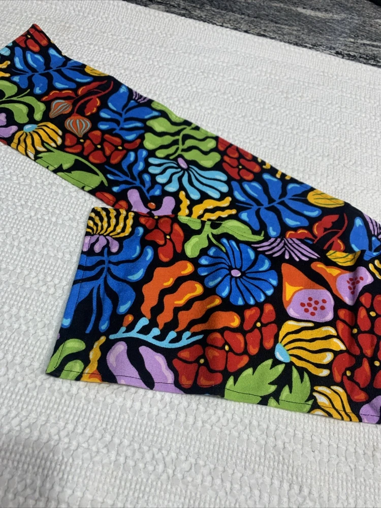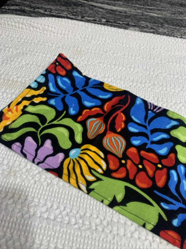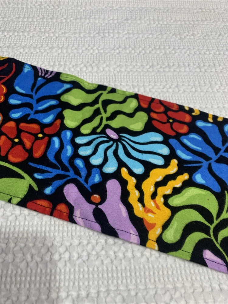 Elevate your little girl's style with this handmade floral flannel scarf. The double layer scarf is made from soft and cozy flannel material, ensuring that your child stays warm and comfortable during the colder months. The bold floral pattern and multicolor design add a touch of playfulness to any outfit, making it perfect for everyday wear or special occasions. This scarf is a great gift for any young fashionista. It's perfect for adding a pop of color and style to any outfit. The scarf is also versatile and can be worn in various ways, making it a must-have accessory for any child's wardrobe. Handmade, new, Giftable. Bold floral.