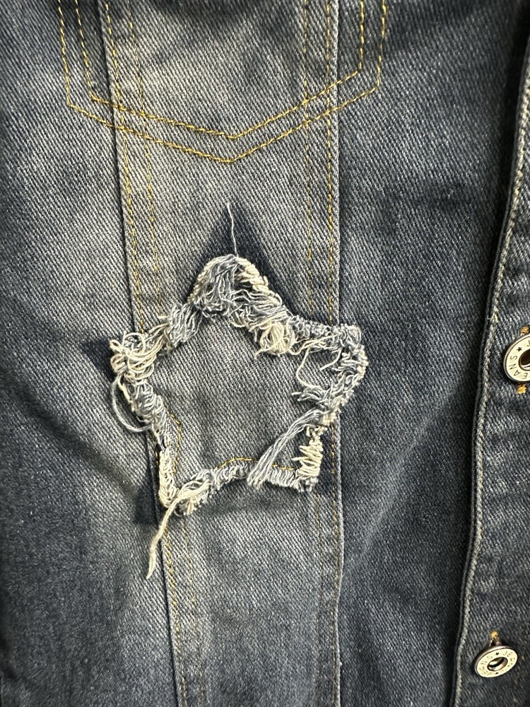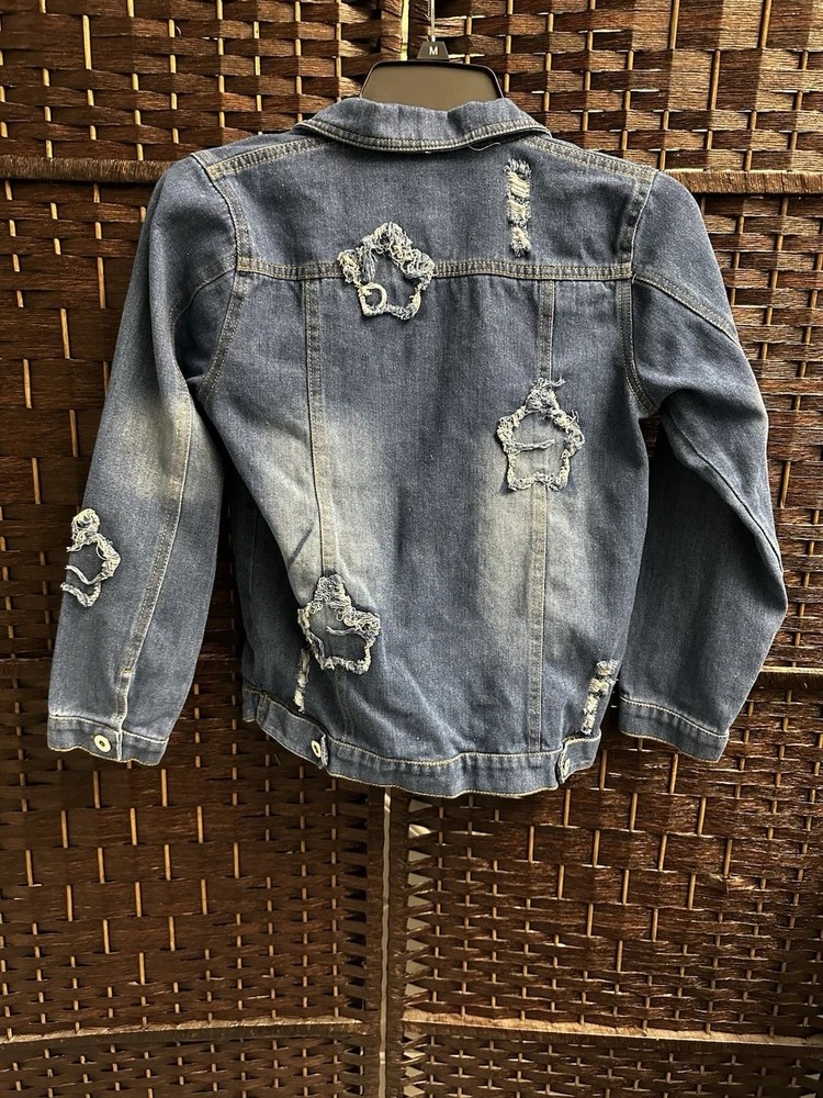 VERY CUTE AND STYLISH STAR GIRLS CHARMDEER BLUE JEAN JACKET WITH THE STARS FRAYED SIZE S/M
