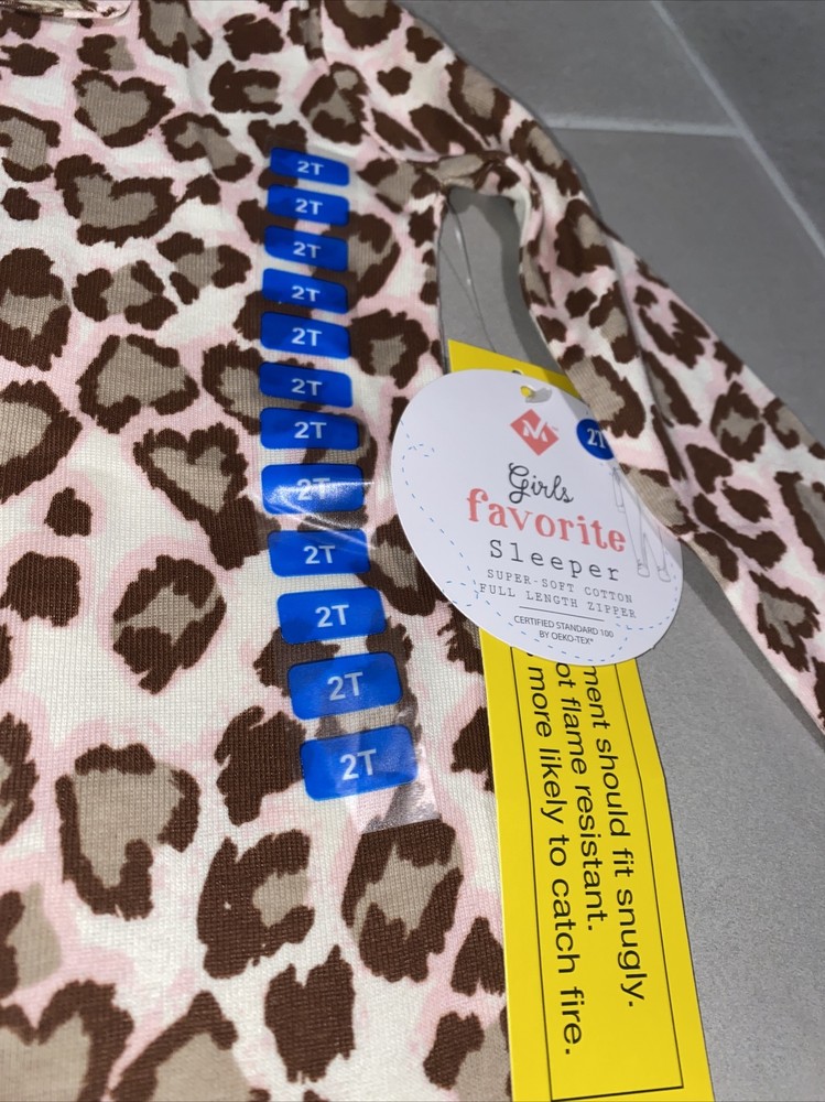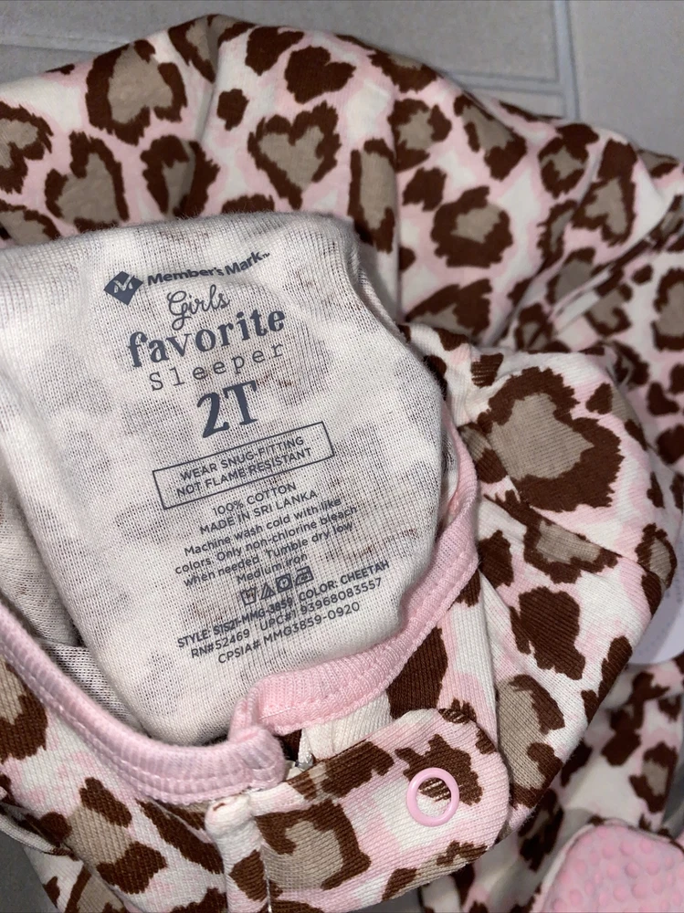 Season: Fall, Spring, Winter Type: Sleeper Number of Pieces: 1 Style: sleeper Color: Brown/pink Character Family: Cheetah Size: 2T Character: Cheetah Brand: Member's Mark Sleeve Length: Long Sleeve gtin13: 0193968083557 Closure: Zip Vintage: No Theme: Cheetah Print Material: 100% Cotton Department: Girls Fabric Type: cotton UPC: 0193968083557 Accents: footed