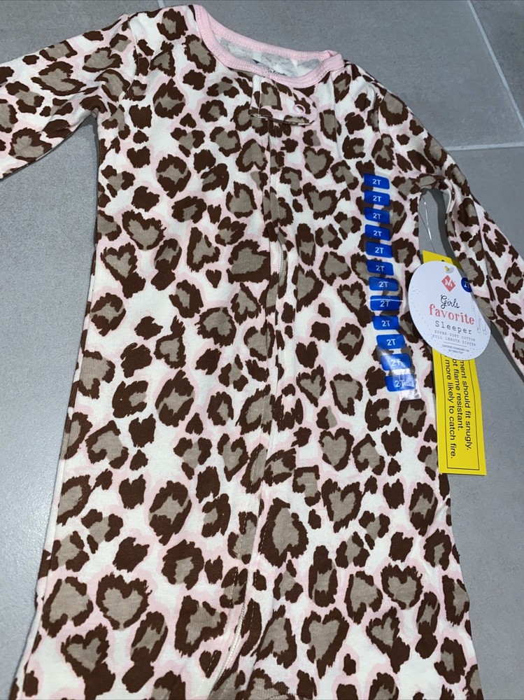 Girls Cheetah Print Cotton Footed Sleeper 2T Full Zip