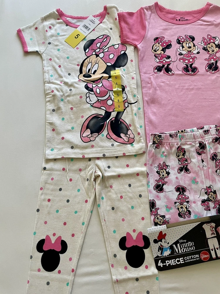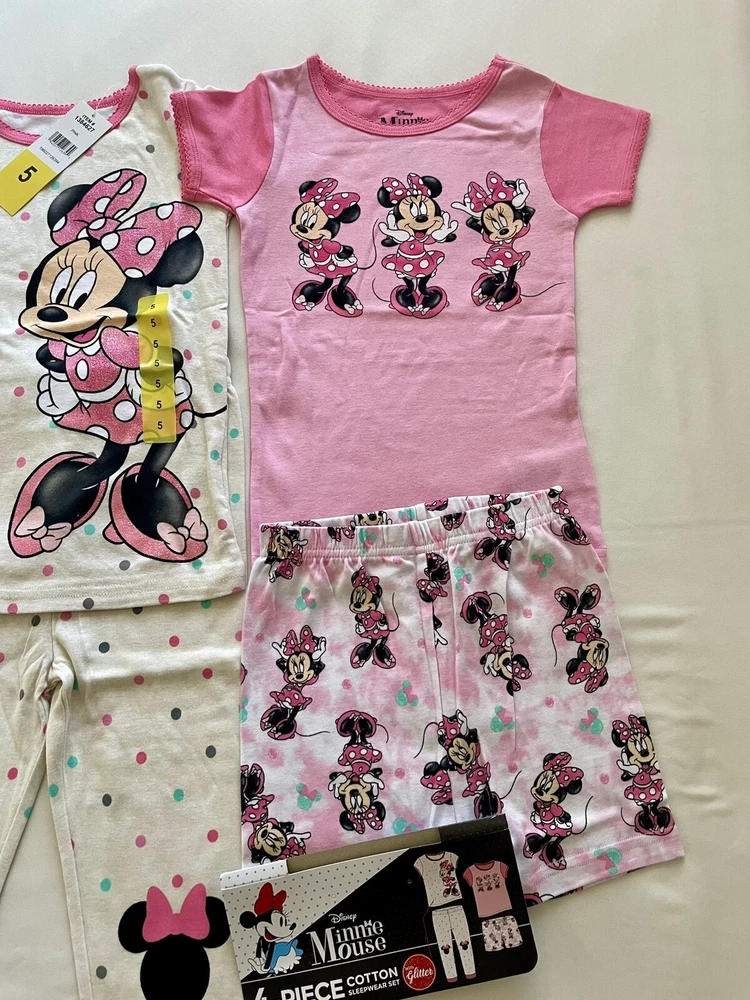 Girl's Disney Minnie Mouse Cotton Sleepwear 4 Piece Pajama Set Size 5. Condition is New with tags. Shipped with USPS Ground Advantage.