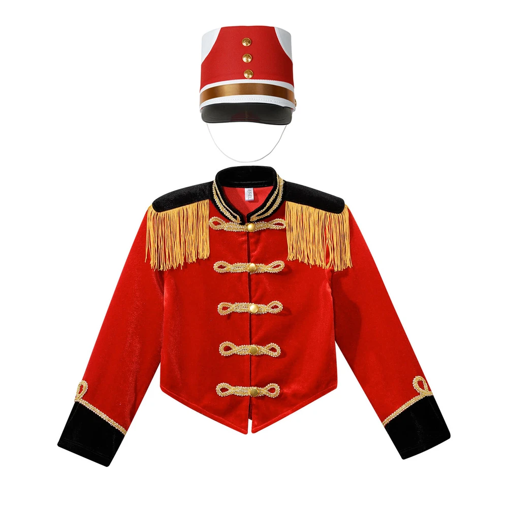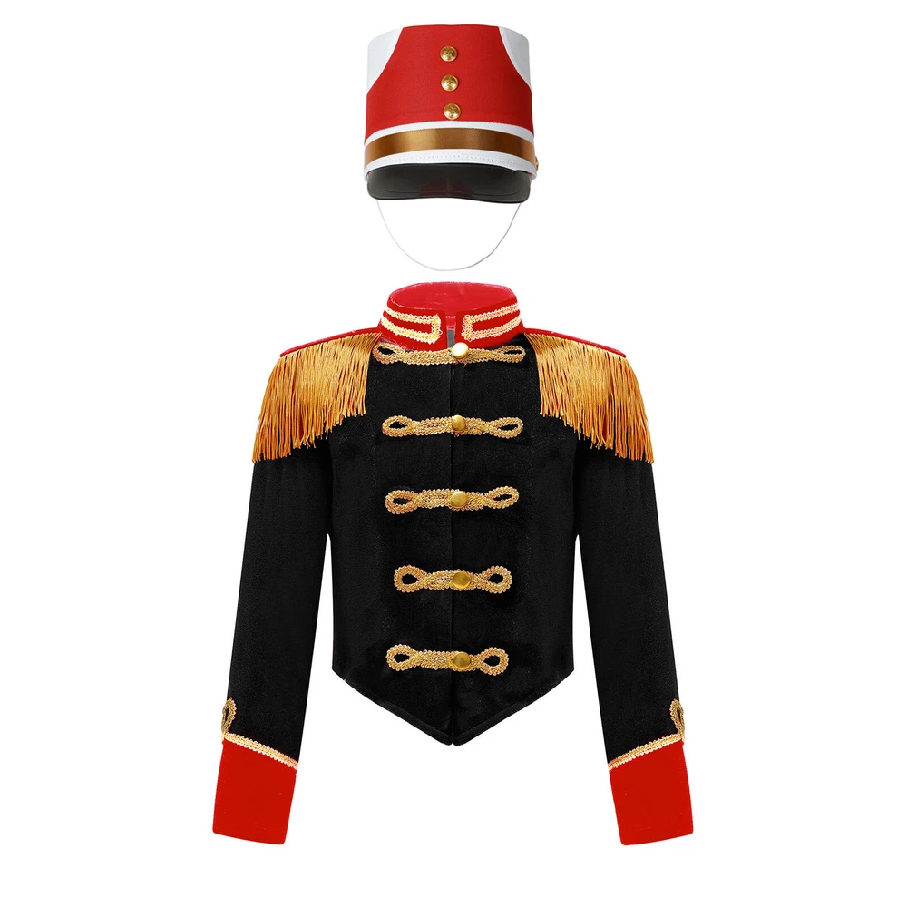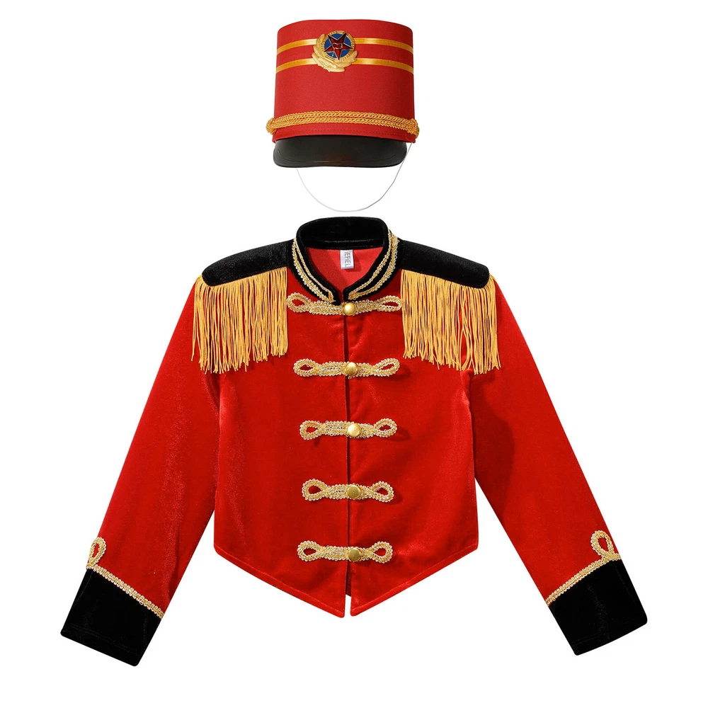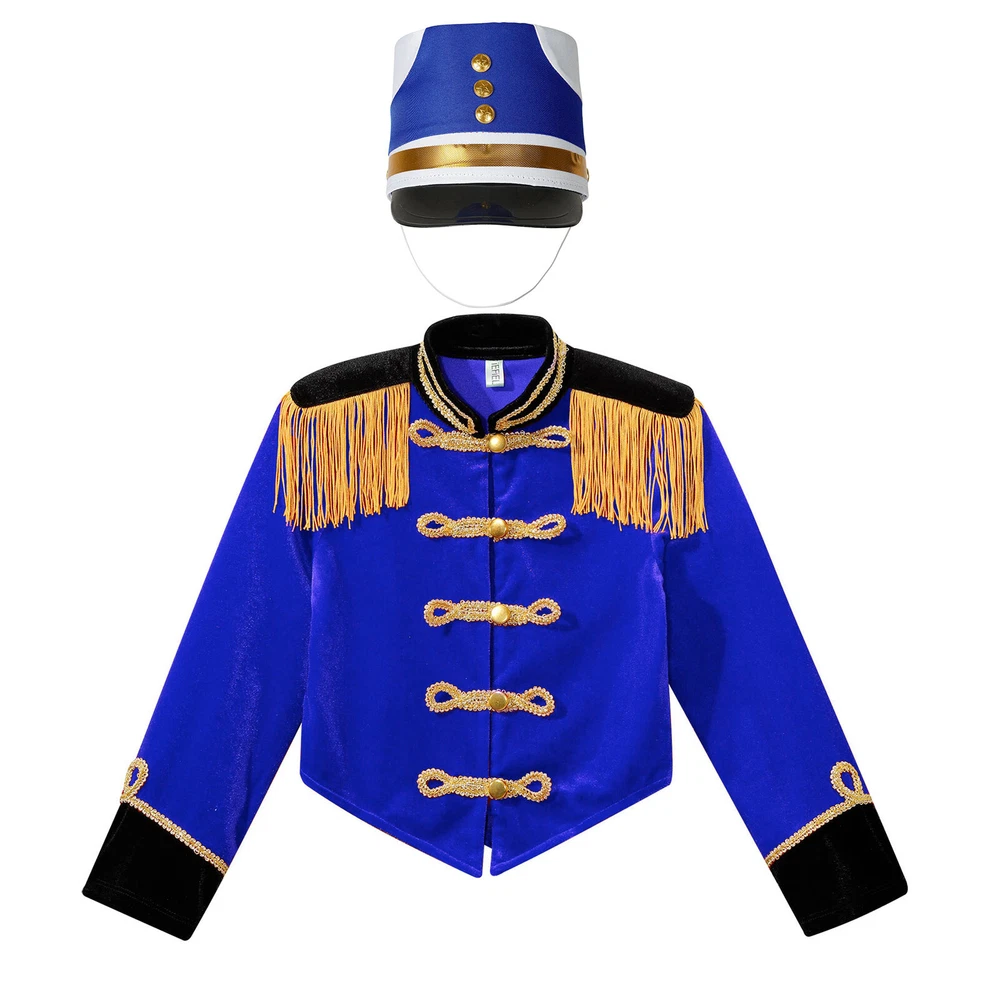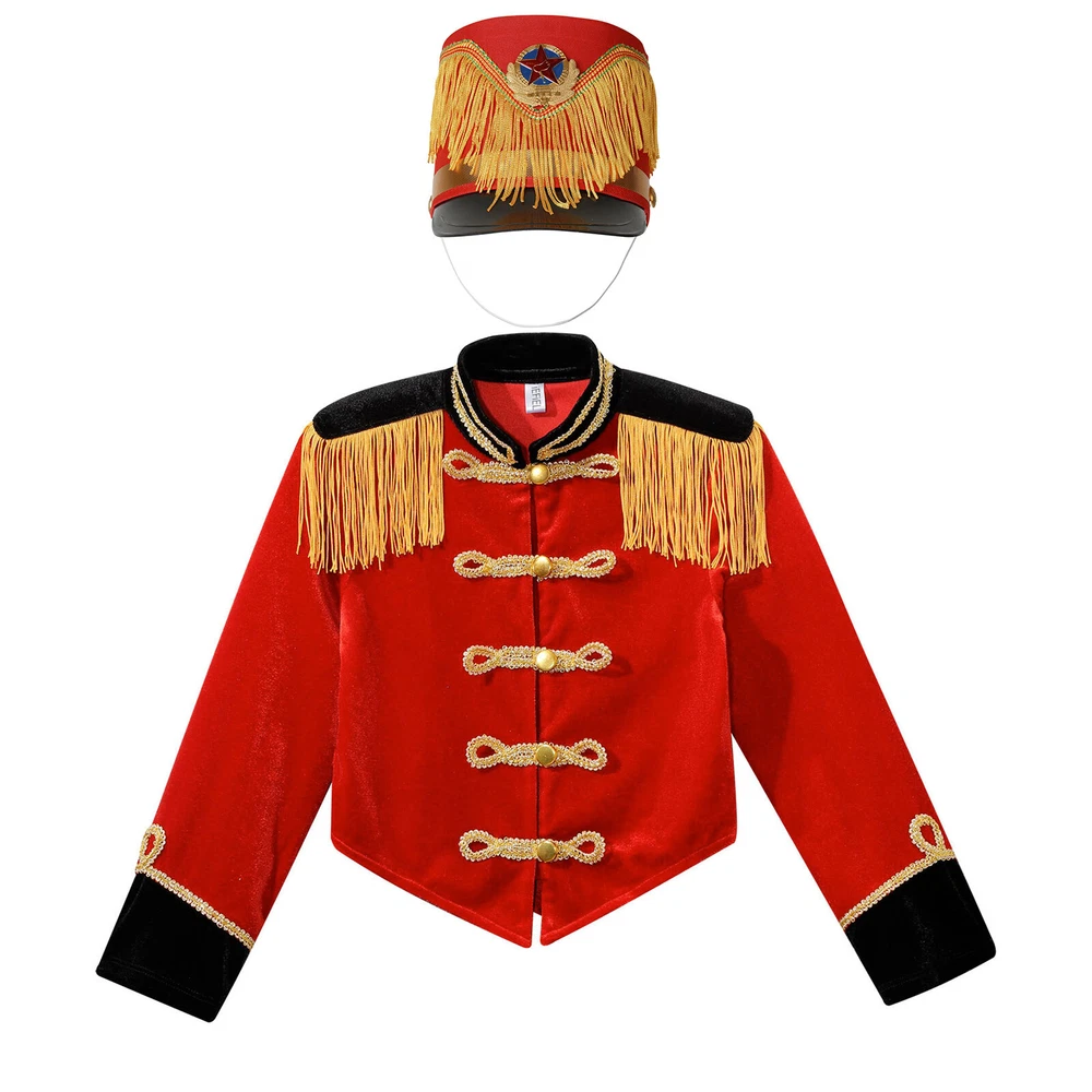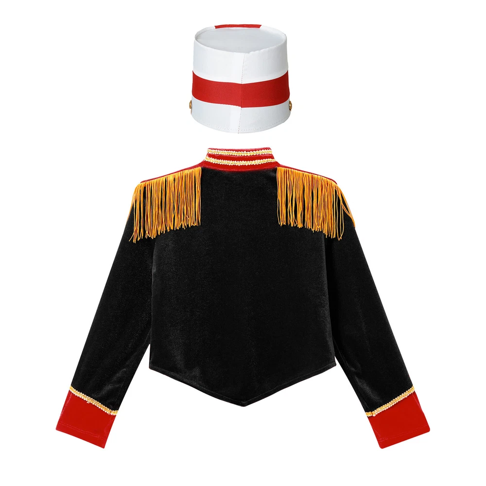 Girls Drum Majorette Marching Band Uniform Christmas Cosplay Costume with Hat