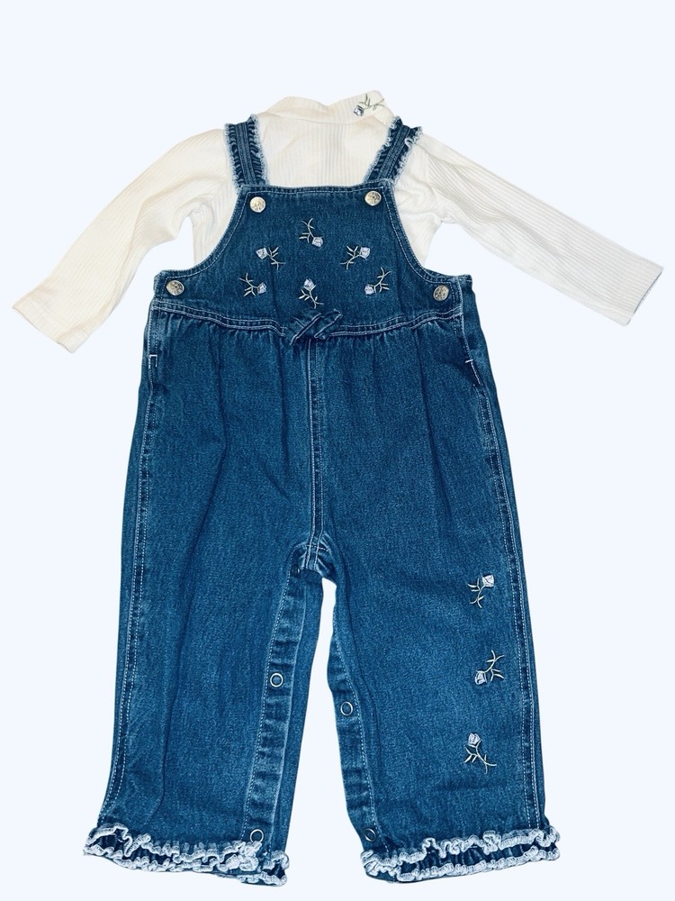 Girls Floral Denim Overalls Vintage BT kids 18 Months Set Of 2 Embroidered. Very good clean condition.