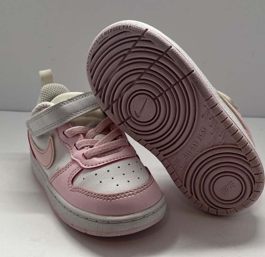 These light pink Nike shoes in size 7C are perfect for active young girls. With a low top style, round toe shape, and flat heel, they offer both comfort and support for all-day wear. The rubber outsole provides durability and traction, making them ideal for various athletic activities. The synthetic upper material and foam insole ensure a breathable and cushioned fit, while the Nike logo adds a touch of style to these practical and stylish sneakers. Whether for summer, fall, or spring, these Nike shoes are sure to be a favorite among young sneaker enthusiasts.