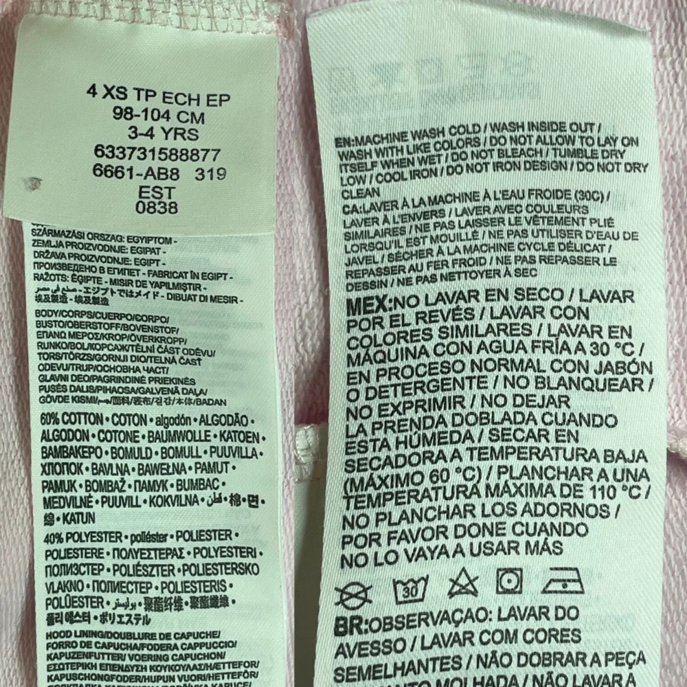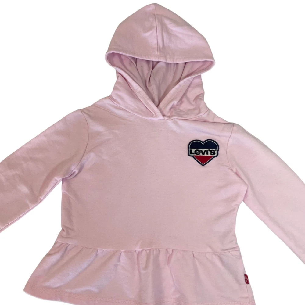 Girl's Levi's Hoodie Long Sleeves, Pull-over, Ruffle Hem, Levi's Logo Patch Material 60% Cotton / 40% Polyester Pink Size 4XS 3-4 Yrs