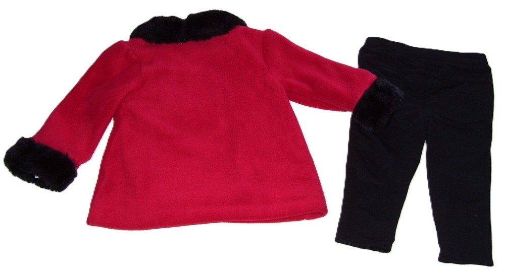 Girls Savannah 2 Pc Red Black Fleece/ Fur Coat and Jeggings Outfit. Size 3-6 Months. New without tags. Smoke and Pet free home. Winning bidder to pay within 3 days listing end. Check out my other listings for more great deals! RETURN POLICY DETAILS Returns are accepted with prior approval ONLY if item is misrepresented in the listing. You must contact me first before returning an item. I do NOT accept returns for buyer choosing the wrong size/item not fitting. There are NO returns/refunds on pageant and special occasion wear.