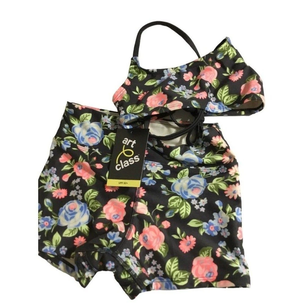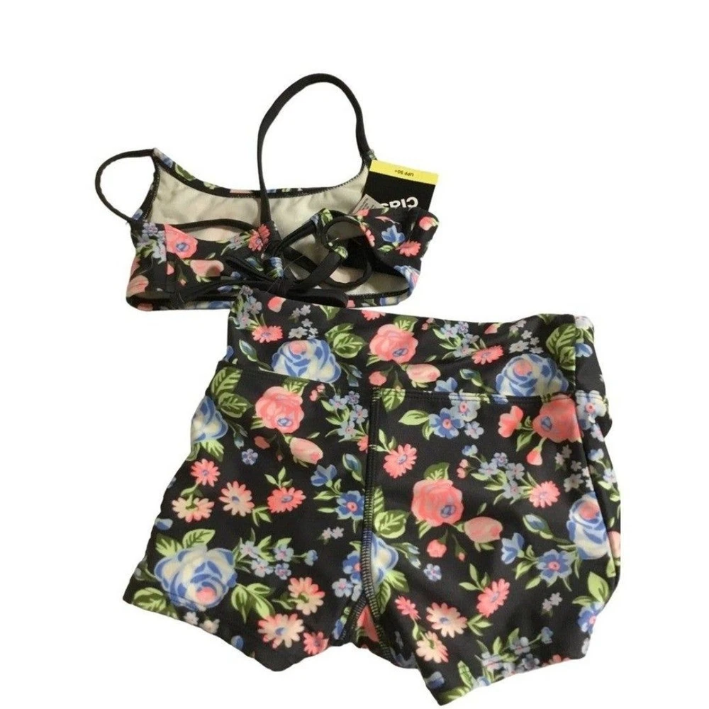Floral-print bikini set Includes bandeau top and boyshorts swim bottom Soft and stretchy fabric UPF 50+ rating Recycled polyester Smoke and pet free home. New with all tags. Size 6/7