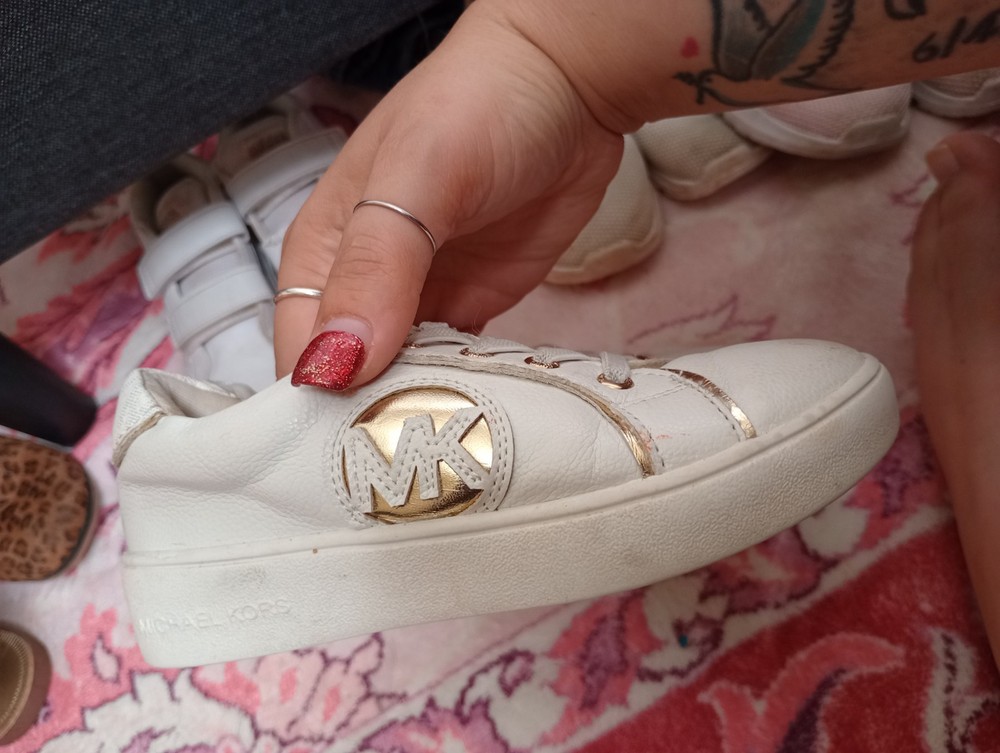 The Girls MK Shoes by Michael Kors are a stylish and comfortable pair of sneakers perfect for casual occasions. With a round toe, flat heel, and moderate cushioning level, these shoes are ideal for everyday wear. The white color and Michael Kors logo accents add a touch of sophistication to these solid sneakers, making them versatile for the summer, fall, and spring seasons. Made with synthetic upper material and rubber outsole, these athletic shoes are designed for walking and provide a trendy and practical option for young girls.
