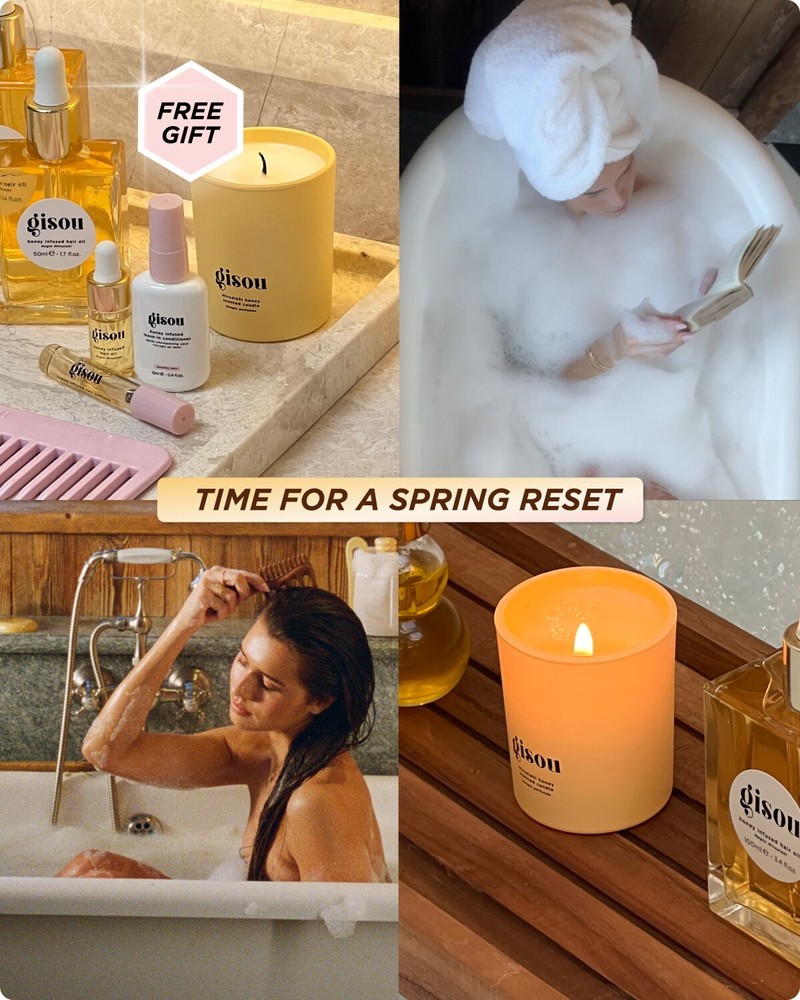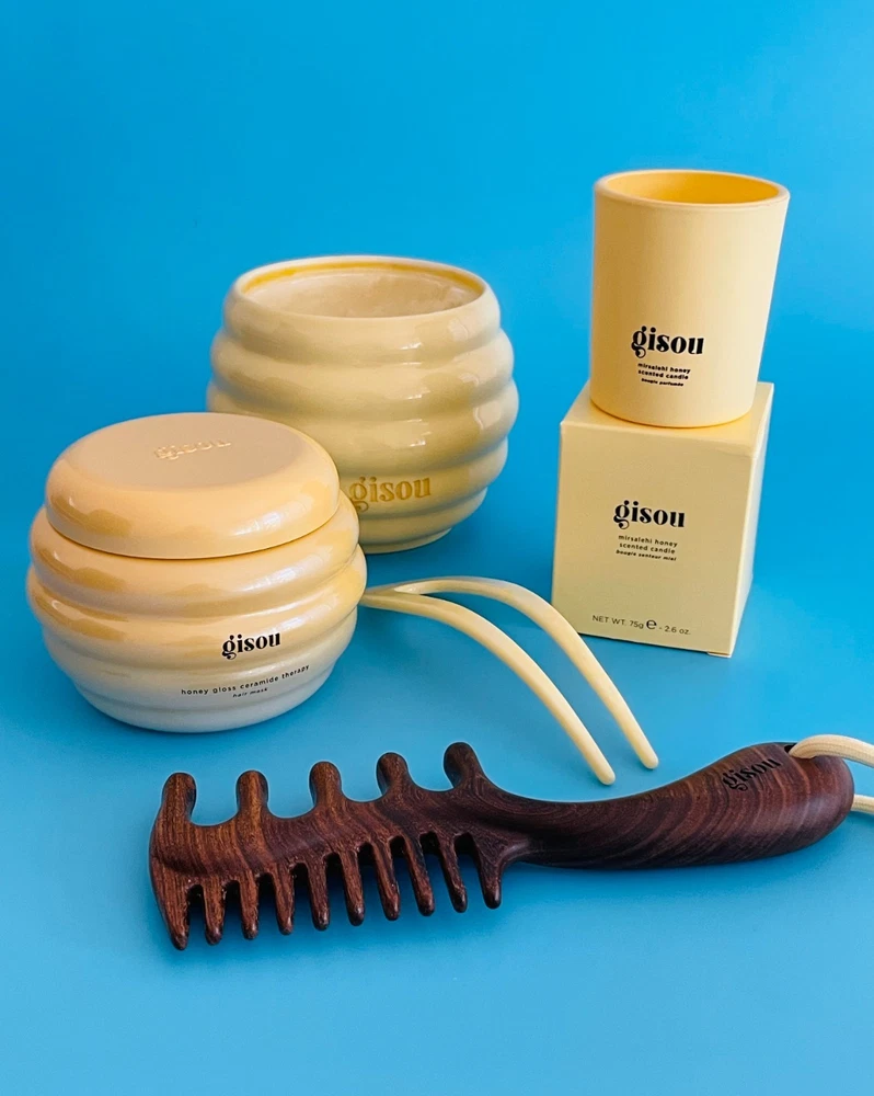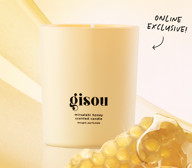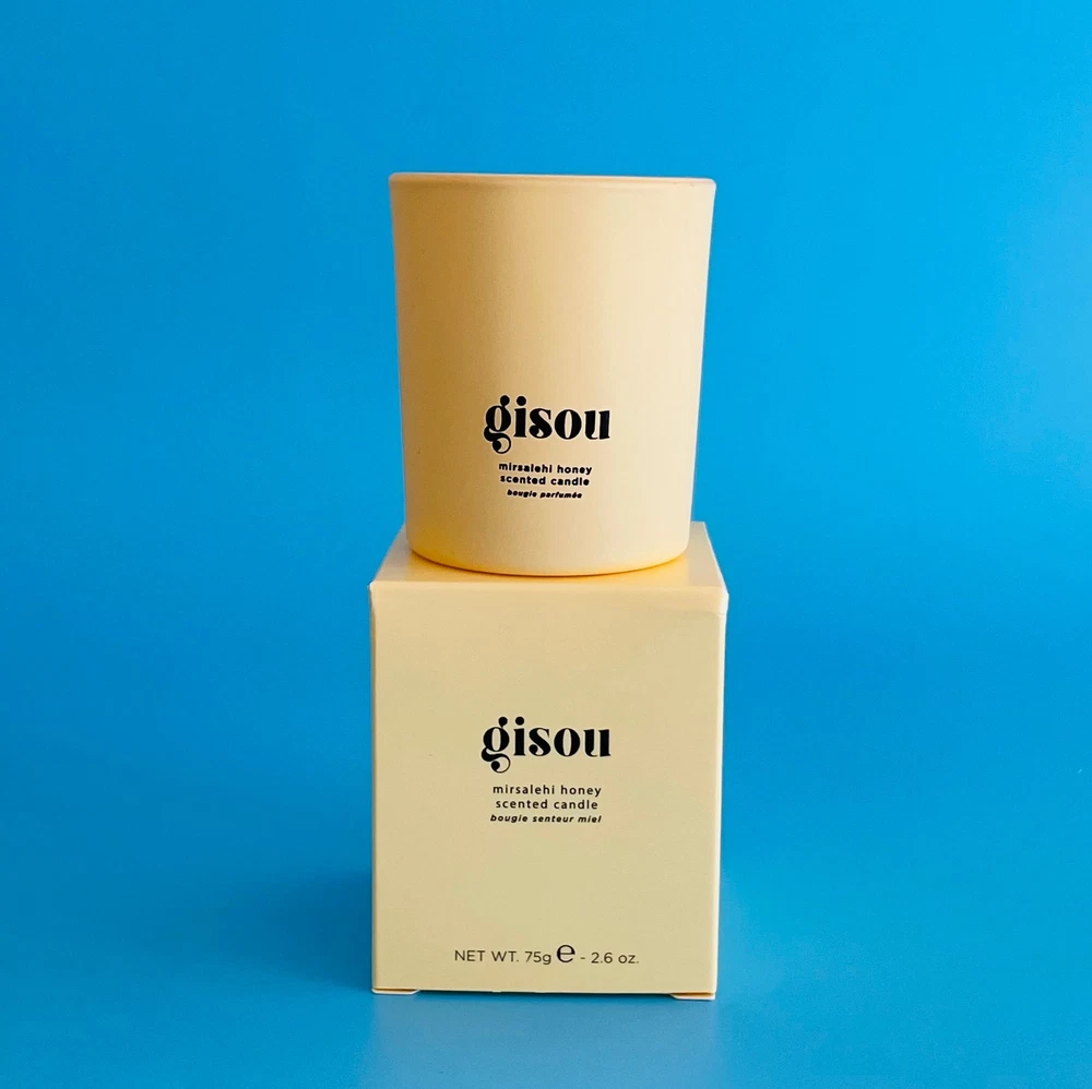 Gisou Mini Candle Honey infused with floral scent. Measures: 2.5"H x 2" radius Reusable ceramic jar great for q-tips. Listing is just for the mini candle. Brand new in box.
