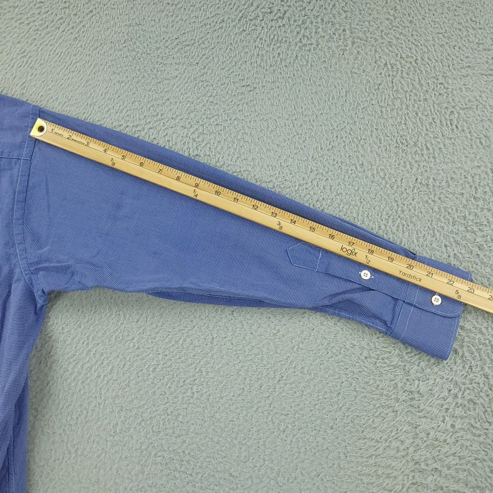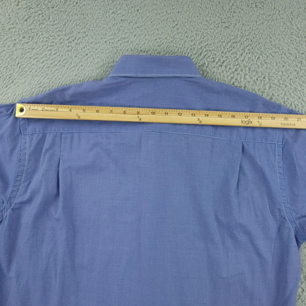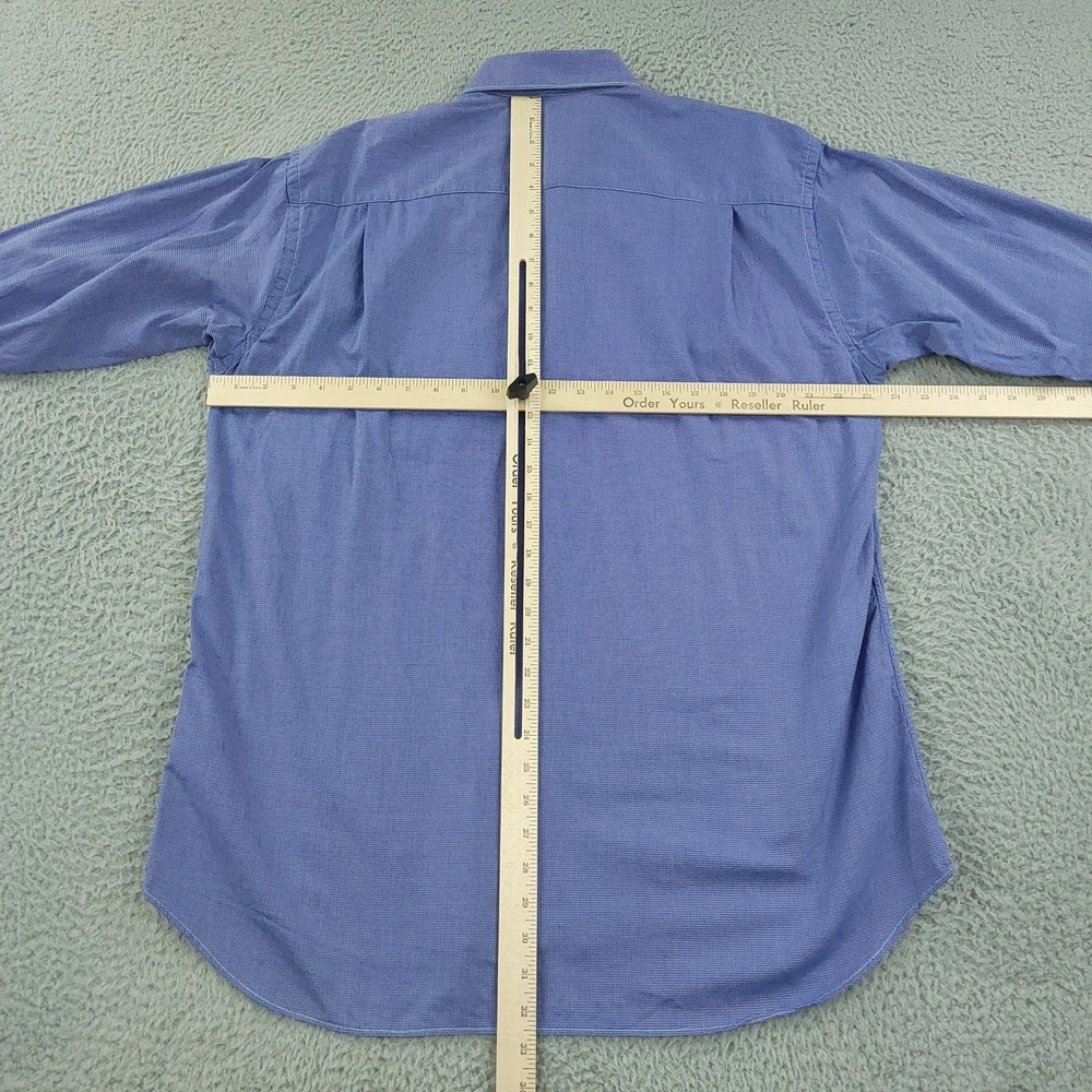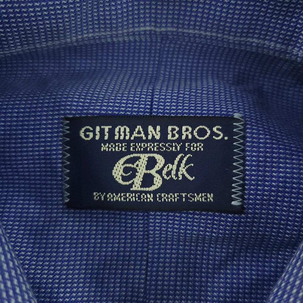 Gitman Bros Dress Shirt Mens 16.5 Blue Check Long Sleeve Cotton Made USA Brand: Gitman Bros for Belk. Style: Mens long sleeve dress shirt with a full button front, point collar, and classic fit silhouette. Color: Blue and white micro check pattern. Size on tag: Mens 16.5 Material: 100% imported cotton woven fabric. Made in USA. Features: Single chest pocket with pointed top detail, long sleeves with buttoned barrel cuffs and sleeve plackets, curved shirttail hem designed to be worn tucked or untucked, button front closure, all-seasons lightweight fabric suitable for business or office wear, crafted by American craftsmen expressly for Belk. Measurements are included in the photos, compare measurements with your item to ensure proper fit. Items are added daily click here to Visit My Store Combined shipping for US customers is 1.99 for each additional item Items are cleaned per eBay standards & policies