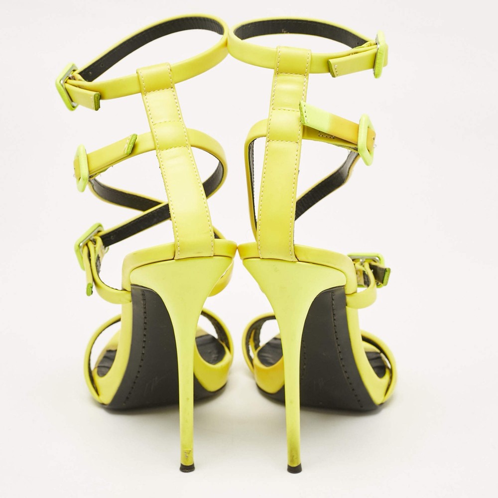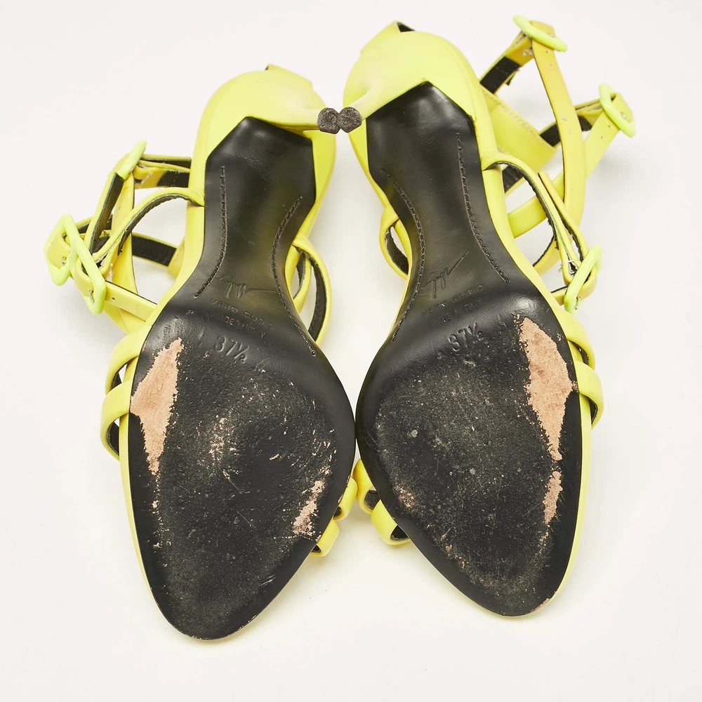 Giuseppe Zannotti Neon Green Leather Criss Cross Ankle Strap Sandals Size 375