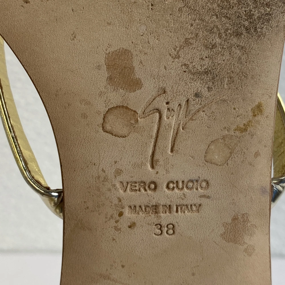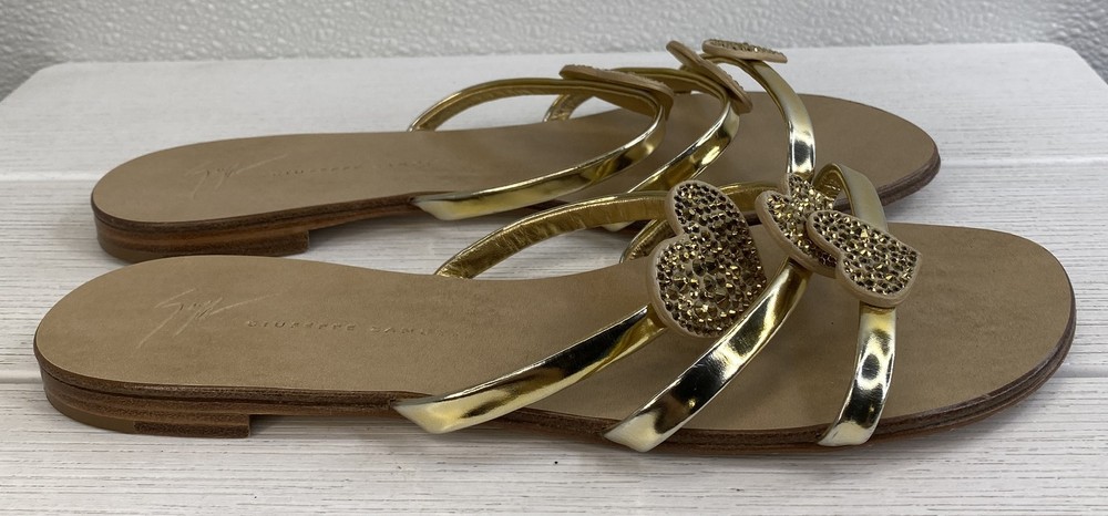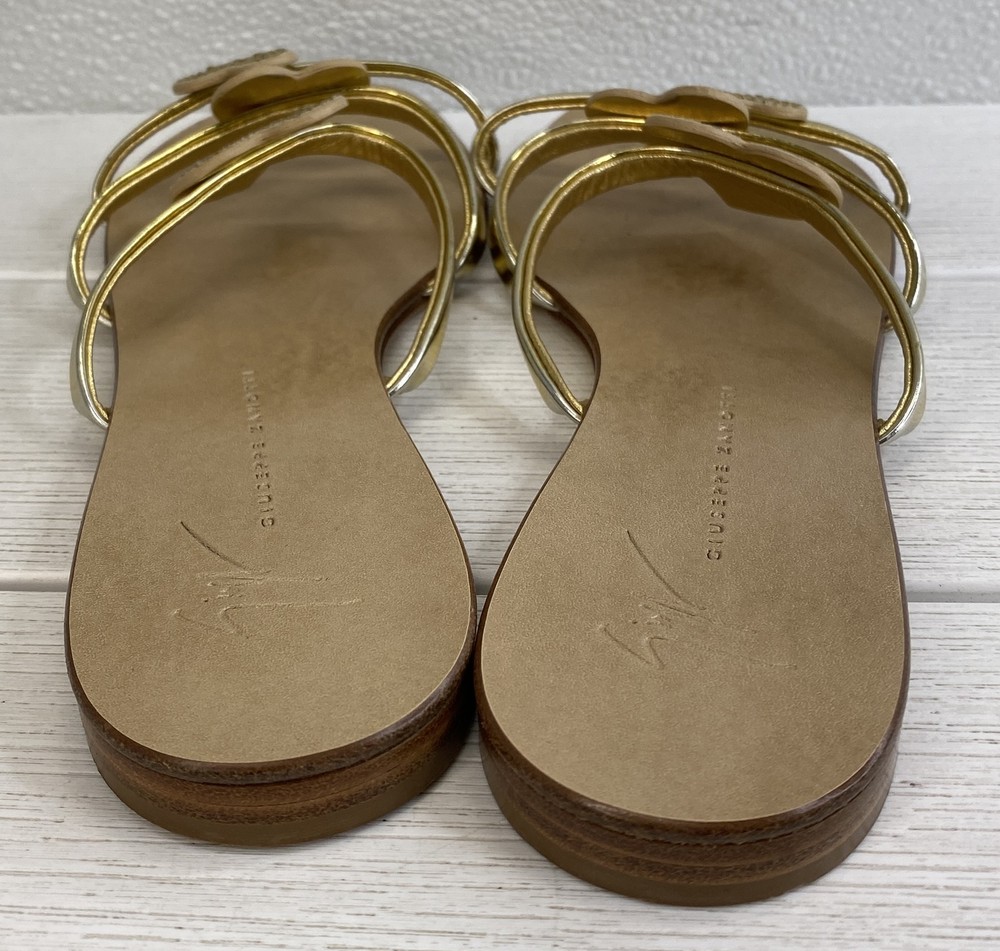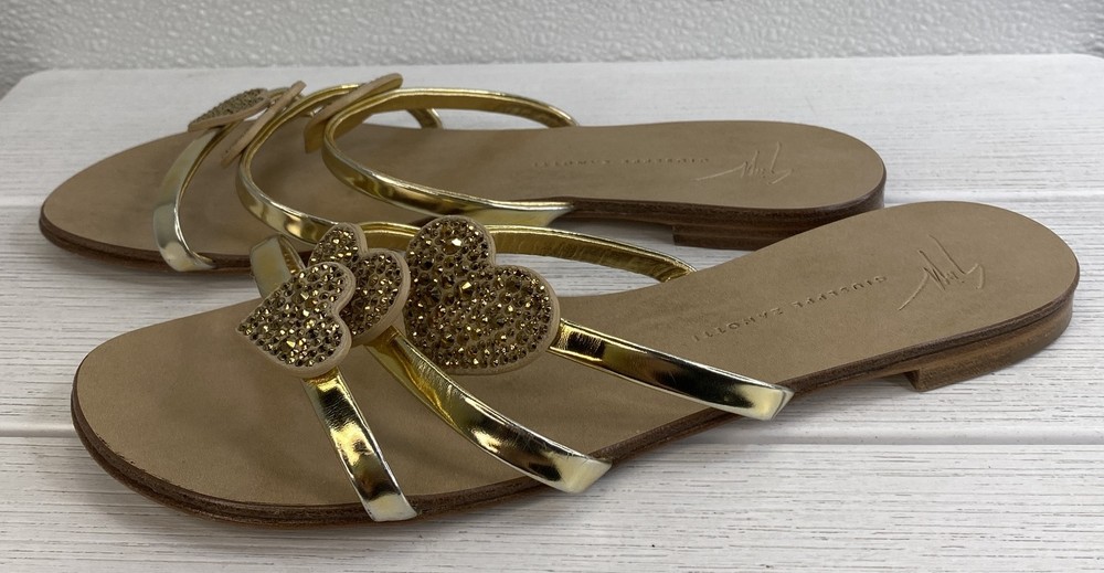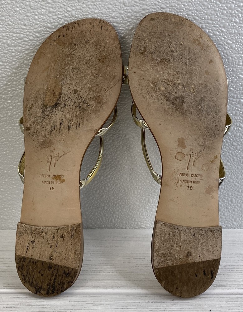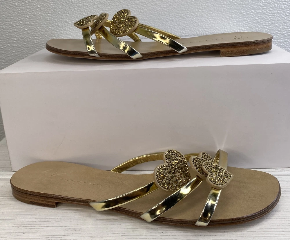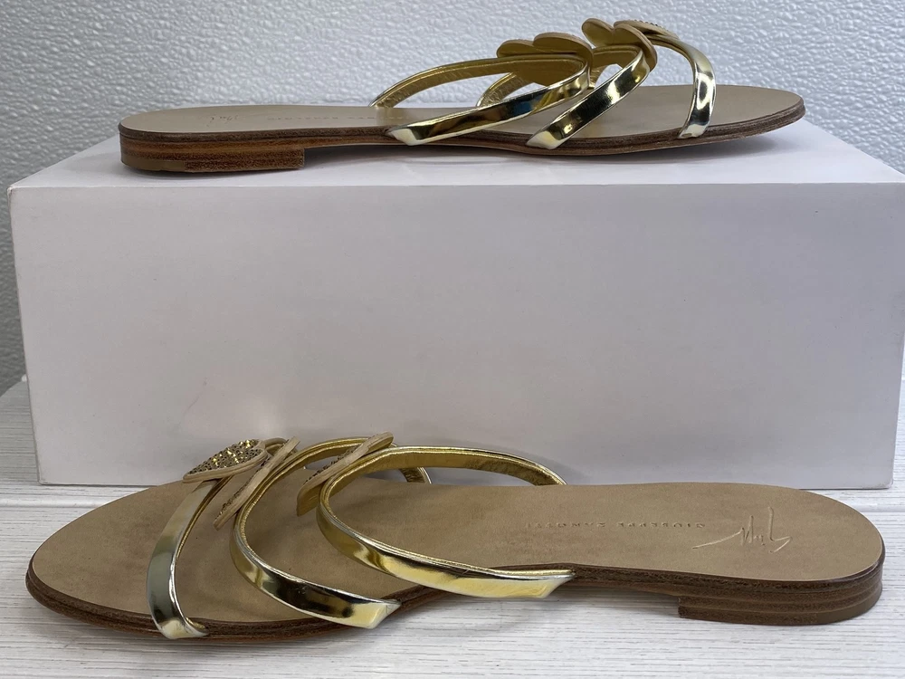 ebay template Giuseppe Zanotti Crystal Heart Sandals Women's US8 EU38 Gold Leather *PREOWNED* Condition: Pre-owned - Excellent -- Minor scuffing on inner right and left sandal. See photos. Notice: All items included are shown in photos. All dimensions are approximate. Item Specifics: BRAND Aquazurra US SHOE SIZE 7 STYLE Slide COLOR Green DEPARTMENT Women UPPER MATERIAL Suede FEATURES Comfort, Crystal Embellished, Metal accent At Heel EU SHOE SIZE 37 CLOSURE Slip On TYPE Sandal HEEL HEIGHT Flat (Under 1 in) INSOLE MATERIAL Leather OUTSOLE MATERIAL Rubber LINING MATERIAL Leather SHOE WIDTH Standard OCCASION Casual SEASON Spring, Summer COUNTRY OF ORIGIN Italy Cargo Largo is not sponsored by or affiliated with the brand associated with the product being sold. Payment Shipping Local Pickup Returns Contact Us Payment Cargo Largo requires payment within four (4) days. (Please note that this is real-time, beginning when the auction ends.) If payment has still not been received by the fourth (4th) day after the end of the auction, Cargo Largo will relist the item. Most states require the collection of SALES TAX on online sales by remote sellers. We will abide by all local, state and federal tax codes and buyer should check their state and locality for tax liability. Residents of Missouri and all buyers who pick their item(s) up locally are required to pay Missouri sales tax on all items. Shipping We ONLY ship within the lower 48 United States. We ONLY ship to the address selected by the customer at checkout. Buyers MAY NOT arrange their own shipping. ALL orders with total value of $750 or more WILL require a delivery signature. For this item, we DO NOT offer combined shipping with other listings. Local Pickup We offer local pickup for all our eBay auction items. To request local pickup for items you have won, please send us a message asking for “pick up” and we will send you an updated eBay invoice with your total. All local pickup orders MUST be paid within 4 DAYS after the listing ended per eBay policy. The payment total will include Missouri sales tax AND a $4 handling fee per item. Buy It Now items are NOT eligible for local pickup. Paid items must be picked up within 10 DAYS after the end of the listing. If not, your order will be cancelled and refunded. If someone else is picking up your order, please email us 1 day before and give us the name of the person picking the item(s) up and order#. Items will not be released without notification. Local Pickup Location 7460 Stadium Drive Kansas City, MO 64129 Pickup Hours SUNDAY MONDAY TUESDAY WEDNESDAY THURSDAY FRIDAY SATURDAY CLOSED 11am-6pm 7:30am-4pm CLOSED 7:30am-4pm 7:30am-4pm CLOSED Returns We are not an authorized dealer of this product and any warranty included with the product may not be honored by the manufacturer. If you believe that the item purchased from us does not match the item description, or if your item was damaged during transit, please contact us to discuss return and refund options. In order to initiate the refund process, buyer must contact us within 30 Days of receipt of item. All returns will require a return authorization. Please note that we will only pay return shipping if our listing does not accurately reflect the specifications or condition of the item received. If you wish to return an item for any other reason, we will accept a return on MOST items, provided that the item is returned to us in the same condition and within 30 Days. This applies to both the item and retail packaging. Buyer will be responsible for both original and return shipping charges Seller will initiate this transaction and refund the buyer once the item has been received AND agreed to the mutual cancellation. We DO NOT accept any returns on any item marked AS IS for any reason other than a grievous error in the listing. Please bid accordingly on all items listed AS IS. Additionally - to protect product hygiene and freshness for our customers, undergarments and swimwear are not returnable. Sizes vary from brand to brand; please be familiar with the brand you are bidding on. If you need more information, contact us directly. Contact Us If you have any questions, please use the “Contact Seller” link in the upper right section of the listing. Our business hours are 8:00 AM - 3:30 PM Monday-Friday (Central Time). Sales completed and emails received after normal business hours may be handled the next business day. Sell Smarter with Kyozou. Inventory and Ecommerce Management