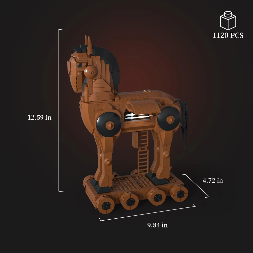 The Trojan Horse building ses consists of 1120 pieces easy-installation parts. We provide a detailed instructions that the children or adult can follow step by step to assemble it. This The Trojan Horse building kit provides an immersive and rewarding building experience. With realistic features, help adults and kids to develop their creativity, bravery and resilience through hours of immersive building and play. These Trojan Horse toys great for kids birthday party favors, carnival prizes, Boyfriend gift, Christmas giveaways, goodie bag fillers, miniature novelty toys, Halloween party giveaway . This Trojan Horse toys set is the perfect gift for boys, girls 8+ years age. A new adventure awaits, this famous landmark can be put on display in the home or office for lovers of ancient architecture and history to enjoy.