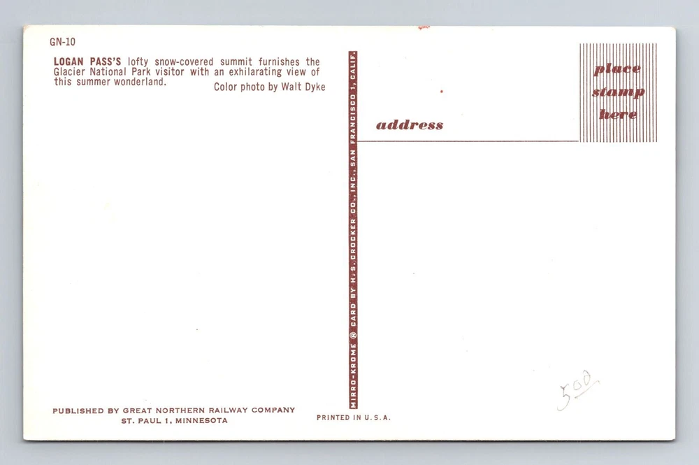 Glacier National Park, Logan Pass's Summit, Series #GN-10, Vintage Postcard