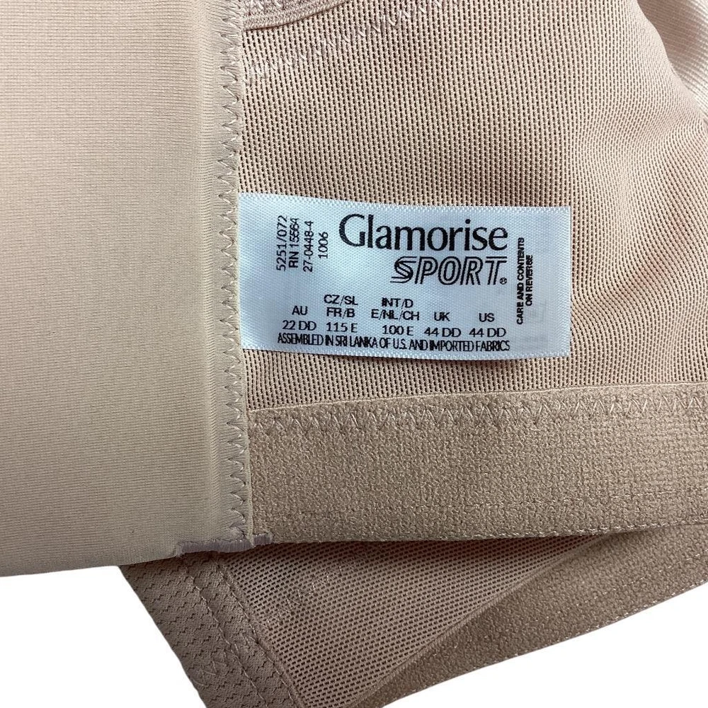 Glamorise Sports Bra Women 44DD Beige MagicLift Seamless Wireless Soft Cup Style Number: 1006 Fabric Content: Wings/Cups: 75% Polyester 20% Nylon 5% Spandex Unpadded seamless cups MagicLift cushioned band that shapes and supports with no wire Breathable moisture wicking fabrics 3 rows of 5 hooks/eyes Adjustable straps Condition: Very Gently Used Minimal wear with un-faded color and un-chipped hooks/eyes. Check out our store for other great items; and remember, we combine shipping on multiple purchases. Glamorise Sports Bra Women 44DD Beige MagicLift Seamless Wireless Soft Cup Style Number: 1006 Fabric Content: Wings/Cups: 75% Polyester 20% Nylon 5% Spandex Unpadded seamless cups MagicLift cushioned band that shapes and supports with no wire Breathable moisture wicking fabrics 3 rows of 5 hooks/eyes Adjustable straps Condition : Very Gently Used Minimal wear with un-faded color and un-chipped hooks/eyes. Check out our store for other great items; and remember, we combine shipping on multiple purchases.