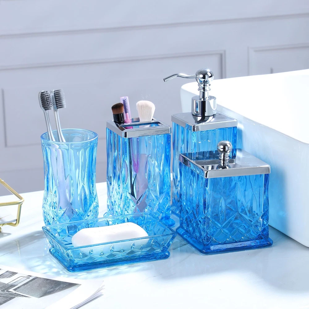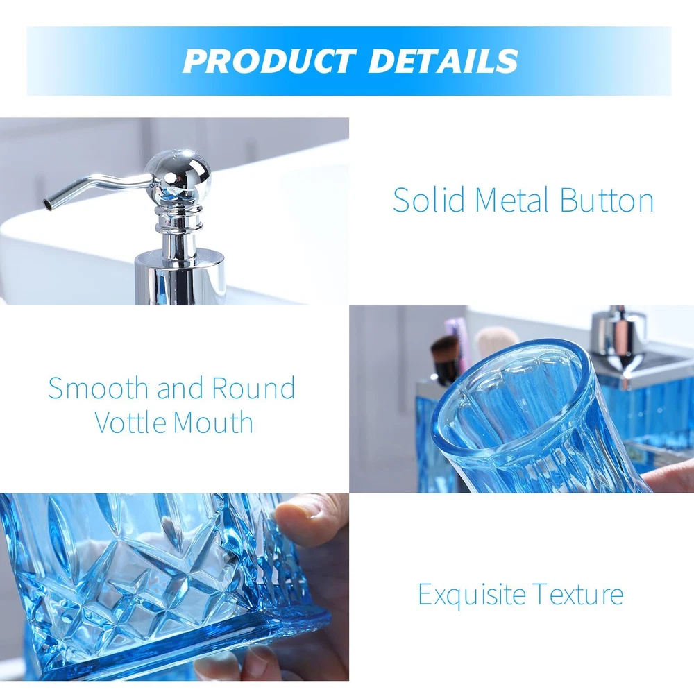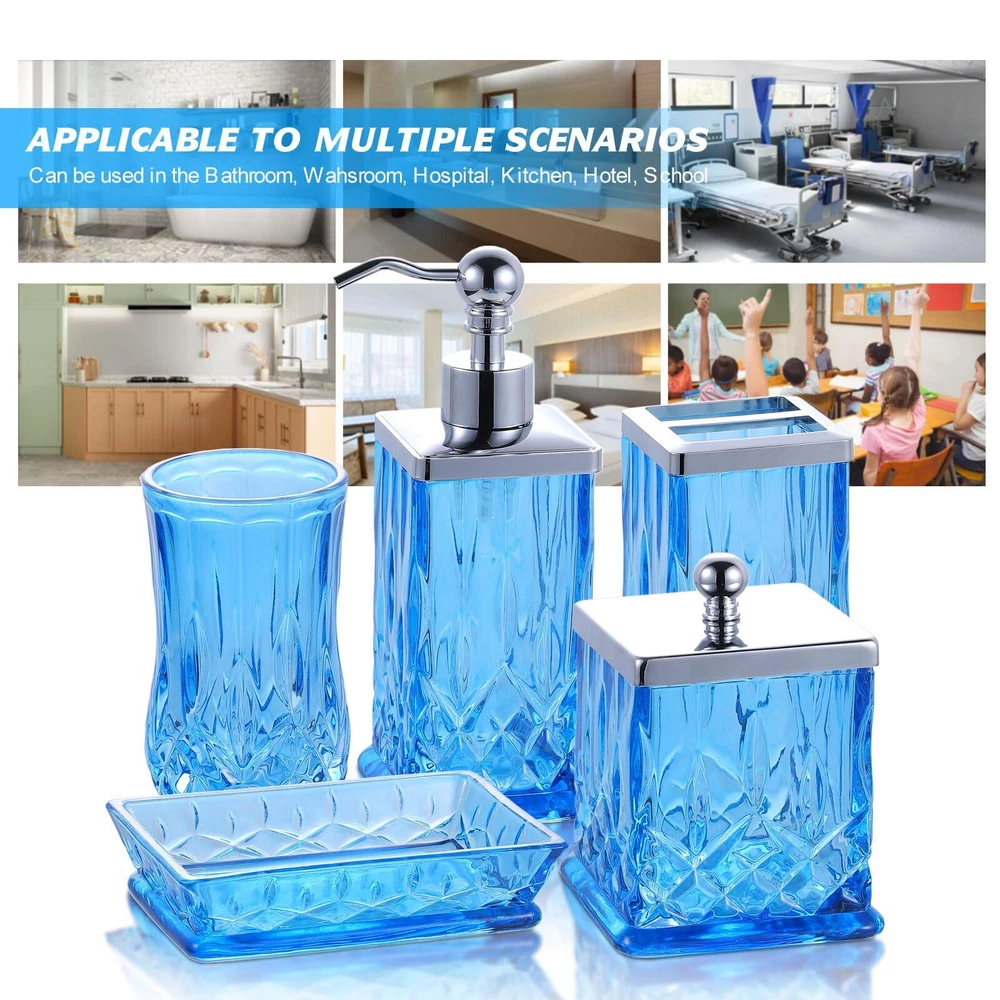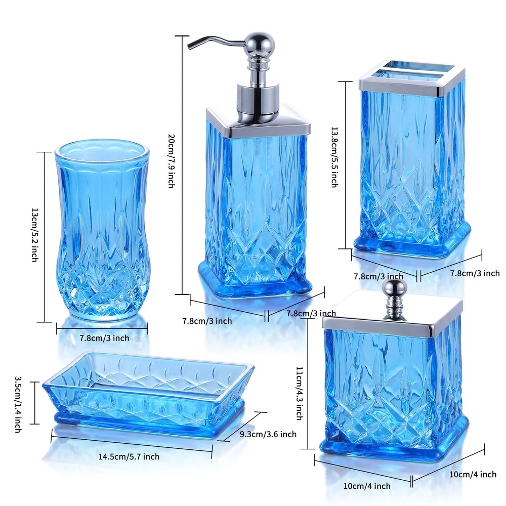 High borosilicate glass, Fivefold transparency compared to ordinary glass, resistant to pressure and stains, durable, easy to clean and maintain Luxury 5pcs Bathroom Accessories Set Includes Soap Dispenser,Tumbler, Soap Dish, Toothbrush Holder and cotton pads jar. All the accessories are using top-notch hardware not the plastic,Stuable,Pefect plating coating to avoid fading and rusting,undergo durability testing to ensure the can withstand the constant pressure and inpact of long time use GREAT GIFTS IDEA -- A perfect gift for family, friends, and coworkers; perfect as a housewarming present, wedding gift, and perfect for remodelers looking to upgrade the bathroom in their home or apartment; bathroom essentials for a new home; guest bathroom decor GREAT -- We are committed to presenting the best quality materials and satisfaction services to our customers. If you have any issue with the contemporary bathroom accessories set, us and Fully or Free replace