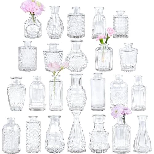Return Policy Fast Delivery Trusted seller Glass Bud Vase Set of 24, Small Clear Flower Vases for Centerpieces in Bulk, Mini Vintage Vase for Wedding Decor, Single Flowers, and Home Table Décor Product Description 【 Vintage Style 】 small flower bud vases set of 5 ,each clear glass vase is decorated with etched patterns to further enhance its attractiveness. The different desgin mini vase is pleasant to the eyes even without flowers. Whether you're aiming for a minimalist look or a more elaborate arrangement, these different desgin mini vases provide the perfect foundation for your creative ideas. 【 Decorative Centerpiece 】An clear bud Vase is a captivating and elegant decorative piece designed, the combination of classic charm and a soothing blue hue makes the vase a delightful addition to any space. These blue small vases are designed to hold a small flower buds, dried flowers, or reed diffuser sticks, making them particularly popular for various occasions such as weddings, parties, and home decor. 【Thick & Sturdy Glass】Our clear glass vases for flowers are made of thick and strong glass, which is durable and not easily broken. The textured pattern on the surface adds a unique touch, creating an interesting visual element that catches and reflects light beautifully. These vases allow you to admire the natural beauty of each flower and garden cutting, adding a touch of elegance and beauty to your home. 【 Sturdy Packaging 】Your satisfaction is our priority! To ensure these mini vases reach you in perfect condition, our packaging is specially made for these pretty mini vases, all glass vases are safely packed in specially customized Styrofoam and thick cardboard boxes to avoid breakage during shipping. In the unlikely event that you receive a broken vase, we will exchange it for a new one or refund to you. 【 Wonderful Gift 】 The clear bud vases come in a variety of shapes, sizes, and materials, allowing you to choose the perfect one to complement your personal style and interior design. Furthermore, these mini vases for your own or send it as a gift on Anniversaries, Birthdays, Weddings, Housewarmings, Thanksgiving,Christmas New Year to create beautiful memories. Shipping Returns Payment Shipping Shipping is FREE to all addresses other than APO/PO boxes in the lower 48 states. All our stock ships from US-based warehouses. Shipped via USPS or UPS (depending on location and package weight) Unless stated otherwise, all orders will ship within 24-72 hours of your payment being processed. Check our feedback to see the great reviews of FAST shipping we offer. Returns Seller does not accept returns Payment We currently accept payment via eBay managed payments only. Once payment is cleared, we will dispatch your shipment within 1-3 business days. Please refer to the "Shipping" tab for more information regarding shipping speed to your destination.