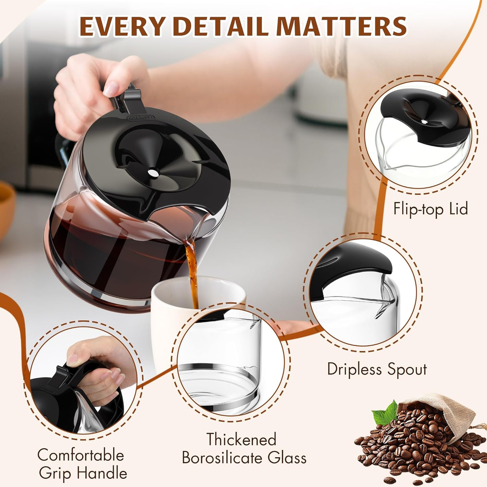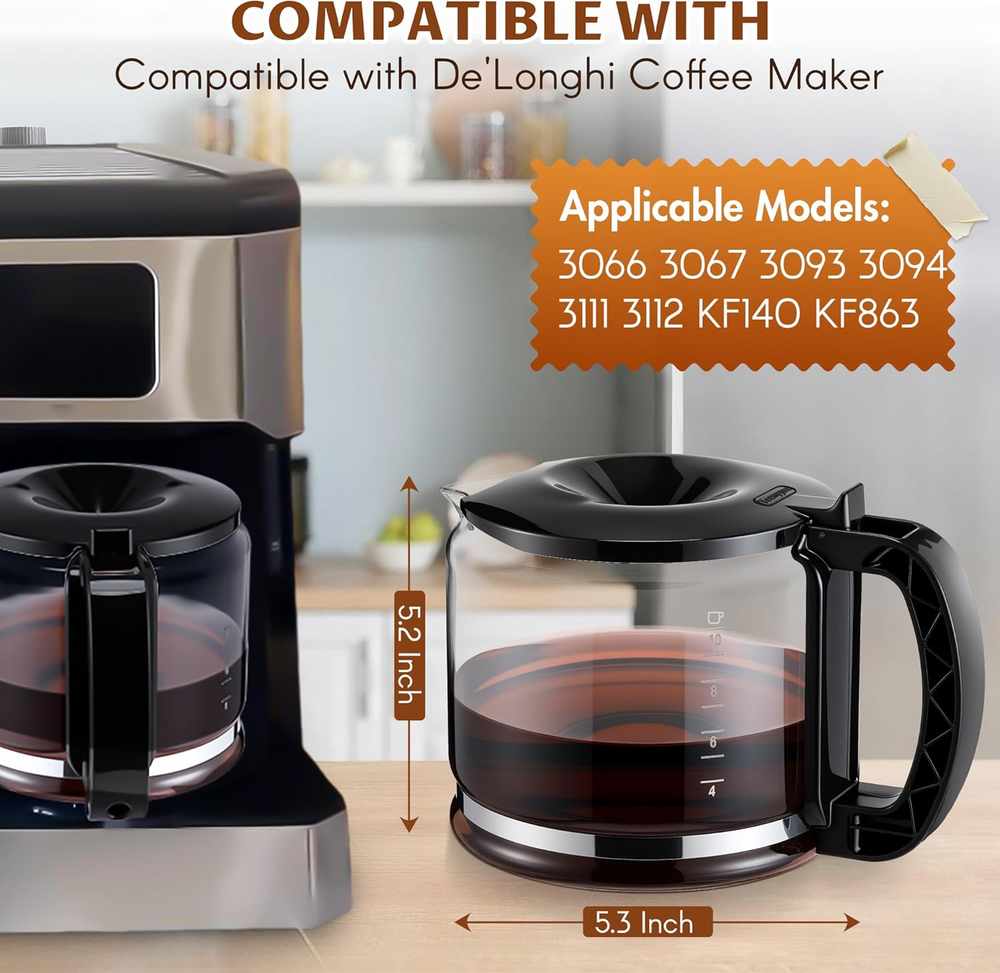 Store New Arrivals Add to Favorite View Feedback Contact Glass Coffee Carafe Compatible with Delonghi 3066 3067 3093 3094 3111 3112 Kf140 Kf863, Coffee Pot Compatible with 7313283649, Espresso Carafe Machine Parts, 10 Cup / 750Ml Description Item model number YIT--3881 Style Classic Capacity 10 Cups Color Black Material Glass, Plastic Item Weight 1.12 pounds With Lid Yes Material Feature Not-compostable Model Name YIT3881 Included Components 1 x Glass Coffee Pot Special Feature Spill Proof Design, Thermal Properties, Ergonomic Handle Product Dimensions 6.5"W x 6.3"H Ideal Compatibility: The glass coffee pot is compatible with Delonghi espresso machines (Models 3066, 3067, 3093, 3094, 3111, 3112, KF140, KF863), Part Number compatible with 7313283649, Easily and seamlessly replacing the original coffee pot. The capacity is roughly 10 Cup / 750ml, ideal for serving multiple guests or enjoying coffee throughout the day Durable & Heat Resistant Glass: Our espresso coffee carafe is crafted from high quality borosilicate glass for long lasting use, even under high temperatures. It preserves coffee flavor while resisting cracks, warping, and daily wear Spill Proof Design: This coffee pot replacement features a flapping lid and precision spout for accurate, spill free pouring, along with an ergonomic handle for a secure grip and easy carrying Easy to Clean: This glass coffee carafe compatible with DeLonghi is dishwasher safe, stain and odor resistant, hassle free maintenance, no lingering smells or residue, just fresh, smooth coffee every time Thermal Properties: With its heat preservation performance, this espresso machine replacement part can maintain the optimal temperature of coffee for a long time, ensuring that every cup of coffee remains hot and fresh, satisfying your need to enjoy delicious coffee at any time GLASS COFFEE CARAFE Enjoy your daily coffee ritual with this high quality 750ml glass coffee carafe, compatible with DeLonghi coffee makers. This carafe restores your machine's full brewing capacity and maintains the same clean, classic design as the original part. Whether you're brewing espresso based "coffee pot" recipes or your favorite morning blend, this carafe helps you pour with precision and style Why Choose This Carafe? ✔ Perfect Fit – Compatible with DeLonghi models 3066, 3067, 3093, 3094, 3111, 3112, KF140, and KF863 ✔ Flavor Preservation – Glass material ensures no residual tastes or odors ✔ Thoughtful Design – The hinged lid prevents spills, while the angled spout enables smooth pouring, ergonomic handle comfort and convenience ✔ Dishwasher Safe – Save time with effortless cleanup. ✔ Large Capacity 10 cup/750ml capacity makes it ideal for households or shared spaces ✔ Insulation Carafe maintains coffee temperature while resisting cracks, warping or wear Specifications: Compatible: compatible with DeLonghi coffee makers Applicable models: 3066, 3067, 3093, 3094, 3111, 3112, KF140, KF863 Material: Glass, Plastic Color: Black Capacity: 10 Cup / 750ml Package Included: 1 x Glass Coffee Pot Notes: Before purchasing, please check if this part is suitable for your model. Sometimes parts may appear to match, but there may be differences between different models. So why wait? Upgrade your coffee experience with Teenyyou Glass coffee jug today Ideal for brewing compatible with DeLonghi's signature "Coffee Pot" recipe, this espresso pot combines functionality with sleek aesthetics a must have for espresso lovers who enjoy sharing coffee with friends or family. ABOUT US We offer the best prices on a wide range of high-quality everyday products. Our store includes tools, home and kitchen essentials, kids’ toys, crafts and DIY supplies, party decorations, outdoor and household accessories, pet items, beauty and personal care products, and much more. SHIPPING We are always working hard to ensure your package arrives as soon as possible. Please understand that some factors like weather, high postal traffic, and the performance of shipping companies are outside of our control. We ship within 2 business days of payment, usually sooner. RETURNS We offer a 30-Day Return Policy on items which you are not completely satisfied with. You have the option for a full-refund or an exchange of the item. PAYMENT We accept PayPal. CONTACT US This page content is yet to come Please ad us to your favorite seller and visit again later Thank You CUSTOMER SATISFACTION We try our very best to make sure every customer is completely satisfied. If there's a problem, message us! We're happy to help. WE ACCEPT